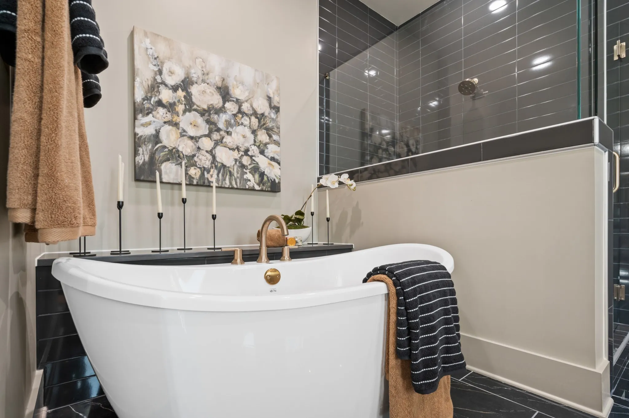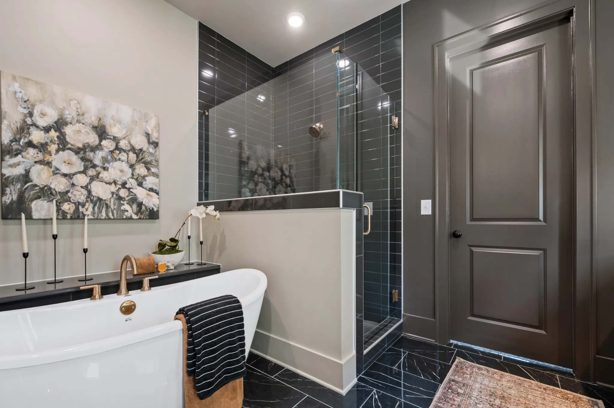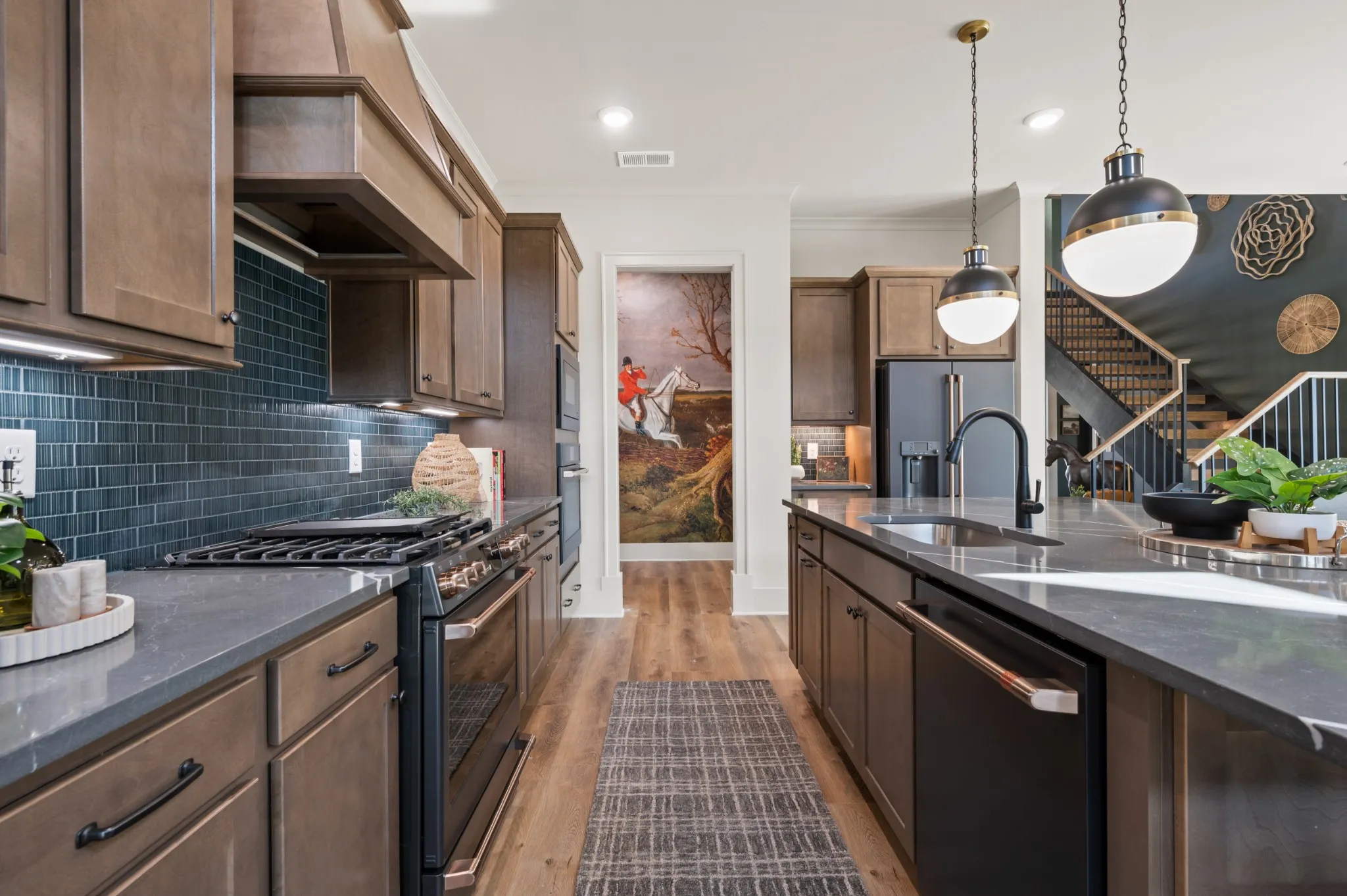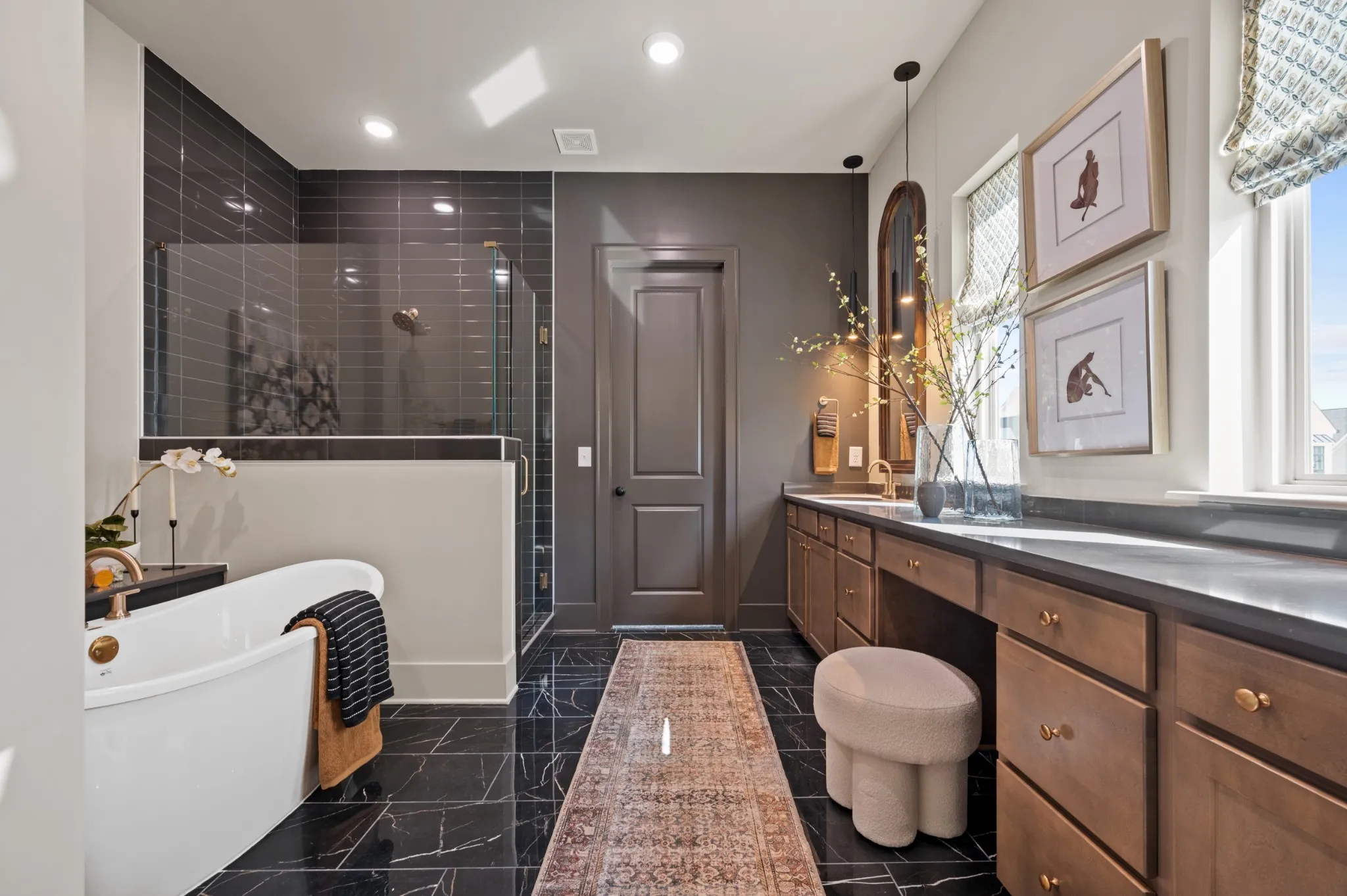 Enjoy the convenience of two bedrooms on the main level, including a spacious primary suite with a spa-style bath featuring a soaker tub, oversized walk-in shower, double vanities, and a large walk-in closet. The gourmet kitchen is built for entertaining with a large island, upgraded appliances, and a chef’s pantry for next-level storage and hosting.
