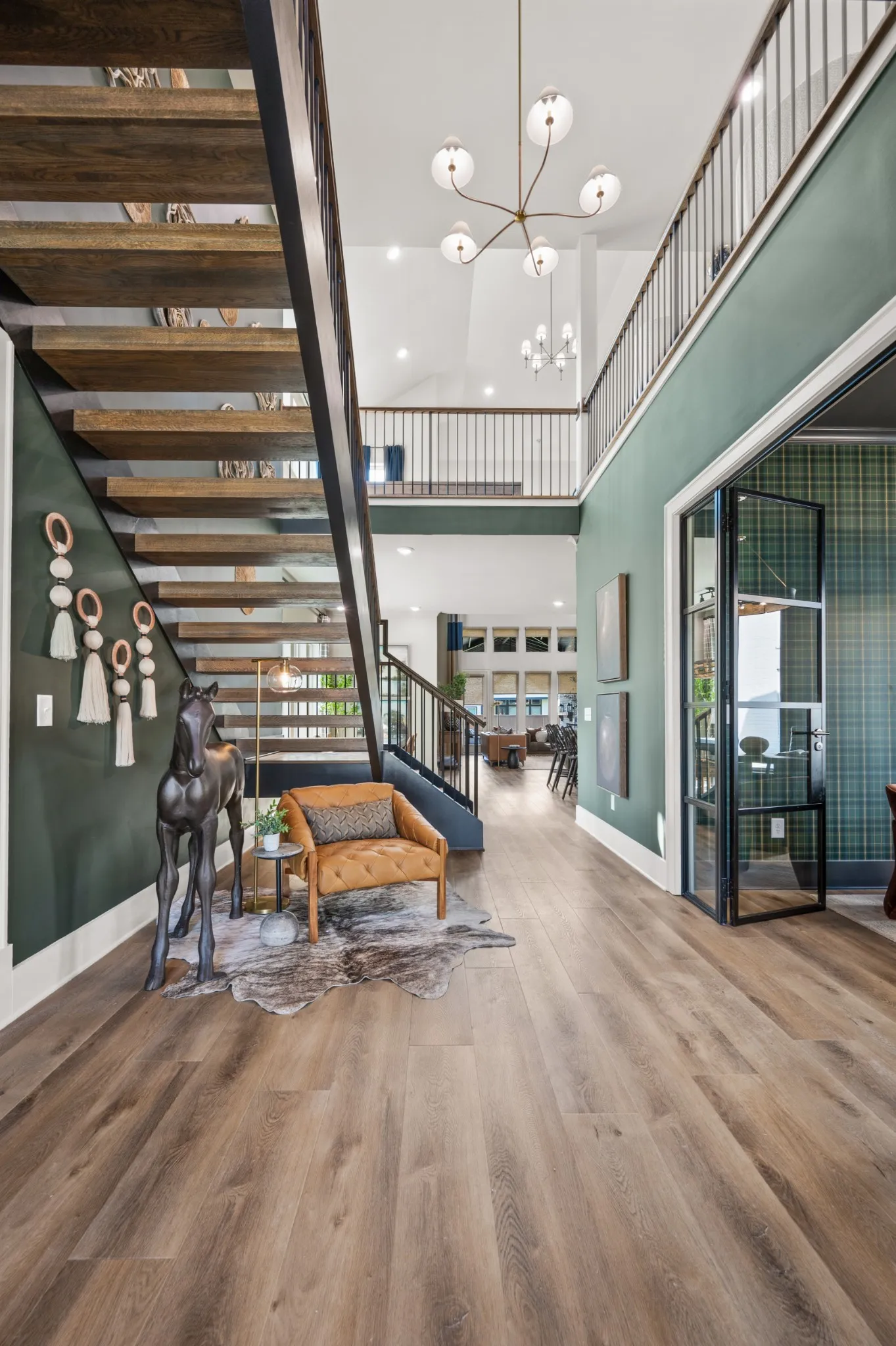 Welcome to Poplar Farms—one of Franklin’s premier communities in Williamson County. This stunning 5-bedroom, 4-bath home makes an unforgettable first impression with dramatic 20–26’ ceilings and an airy, open-to-above design that floods the main living spaces with natural light.