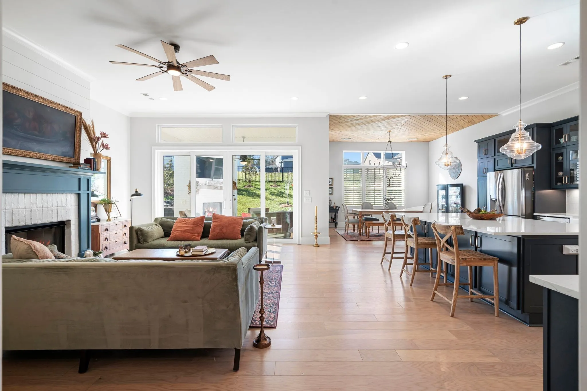Surrounded by rolling countryside in the prestigious McDaniel Estates, this thoughtfully designed home offers refined living in a peaceful setting. Primary bedroom and a guest suite on the main floor. Start each day from your front porch swing with coffee in hand as sunlight pours through expansive windows and fills the home with warmth. Inside, a generous living room flows effortlessly into the gourmet kitchen and dining area, creating a layout ideal for both everyday living and entertaining. Working from home is a breeze with a private office featuring custom built-in shelving and a quiet, functional design. Step outside to a fully fenced and beautifully landscaped backyard designed for year-round enjoyment, featuring an impressive outdoor fireplace with a floor-to-ceiling brick surround—perfect for gatherings or relaxed evenings outdoors. Mature magnolias, dogwoods, azaleas, limelight hydrangeas, and emerald green evergreens create both seasonal color and privacy, making the yard especially stunning in the spring when the property truly comes into bloom. A giant walk-in attic offers exceptional storage space, adding everyday practicality to this already well-appointed home. Residents of McDaniel Estates enjoy resort-style amenities including a state-of-the-art fitness center, beach-entry pool, resident lounge with multiple TVs, game room, and prep kitchen. Outdoor adventures await with direct access to the Harpeth River for fishing, kayaking, and peaceful waterfront moments. Over $90,000 in thoughtful upgrades enhance the home, including plantation shutters, custom kitchen cabinetry with soft-close drawers and pull-out shelving, a walk-in pantry with open shelving and a prep counter, built-in shelving in every closet, a handcrafted dining room ceiling, and designer light fixtures. Kobalt cabinets in garage to convey. This exceptional property offers elevated living in one of the area’s most sought-after communities.
