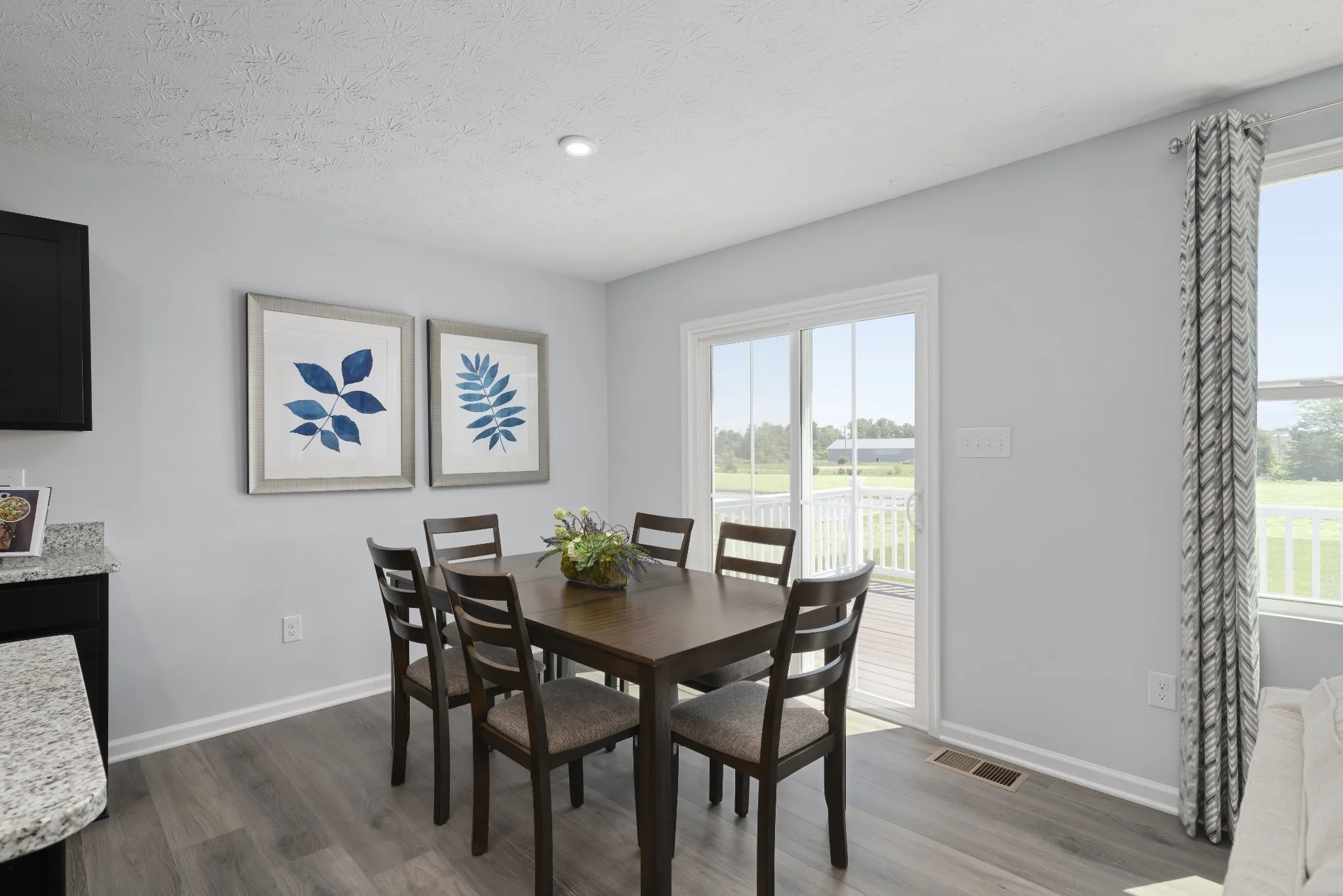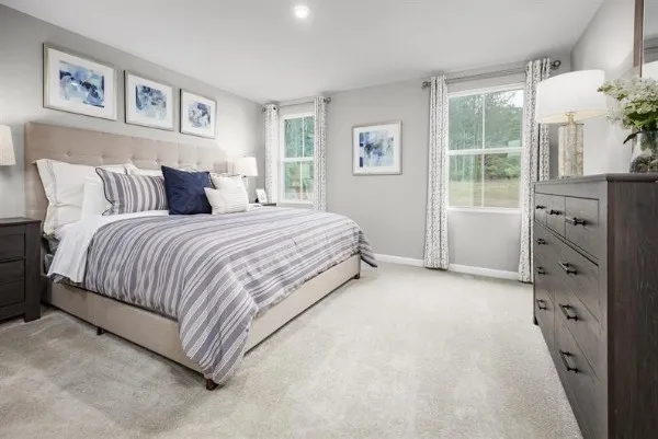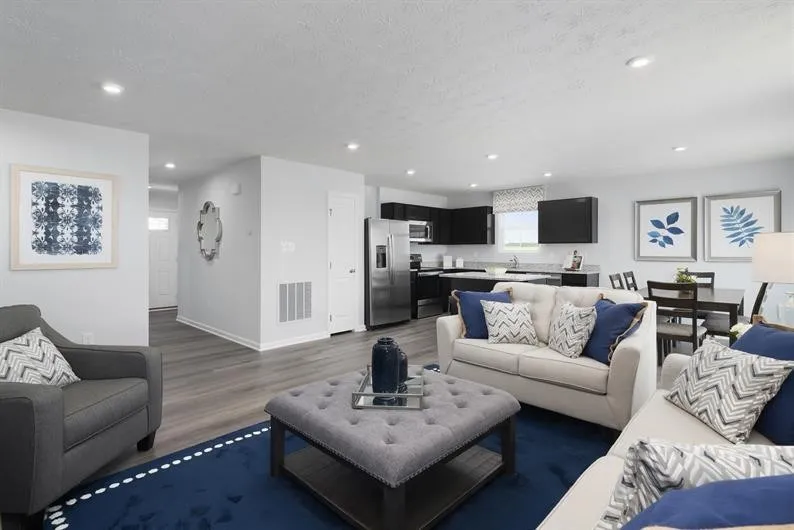 The Spruce single‑family home exemplifies the ease and comfort of main‑level living with a thoughtfully designed, open layout. From the welcoming foyer, a hallway leads to a full bath and two spacious secondary bedrooms, perfect for guests, family, or a home office.
