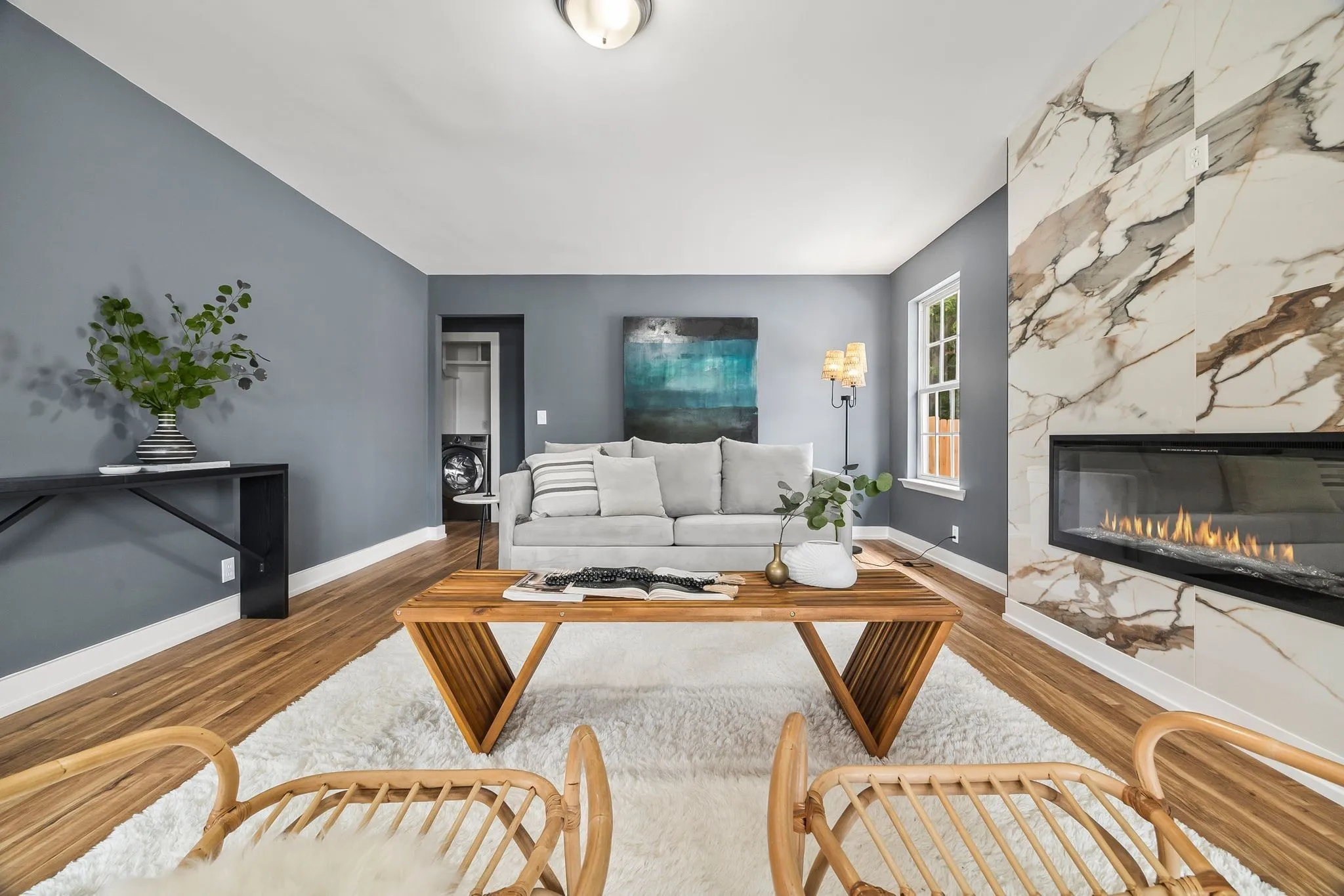 Inside, the 1,455 sqft floor plan has been completely renovated from top to bottom. A bright, open-concept living area welcomes you with new flooring and abundant natural light, seamlessly connecting to a stylish kitchen outfitted with sleek cabinetry, contemporary fixtures, and brand-new appliances. Two thoughtfully updated bathrooms feature modern tile and designer finishes, while four spacious bedrooms provide plenty of room for family, guests, or a home office.