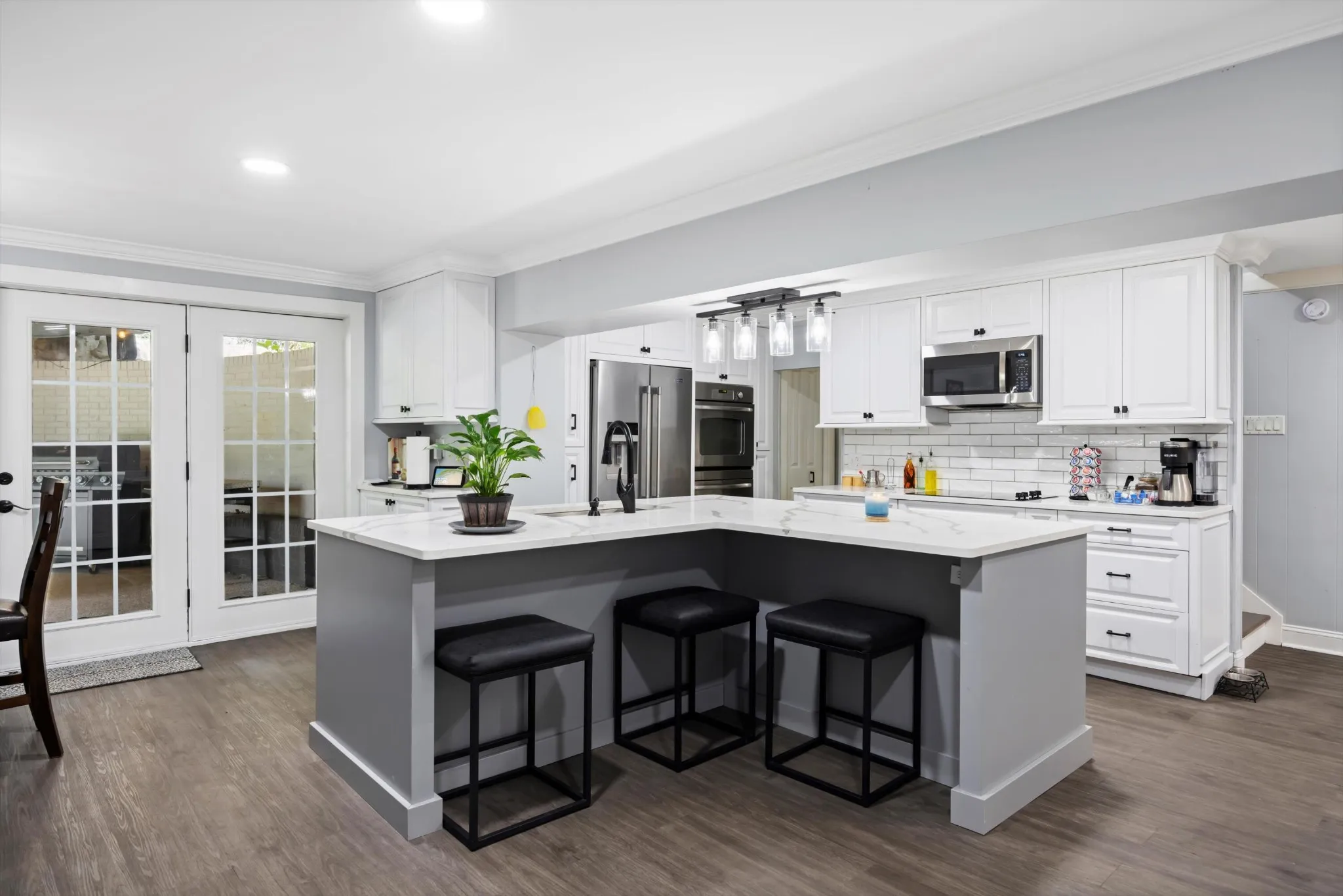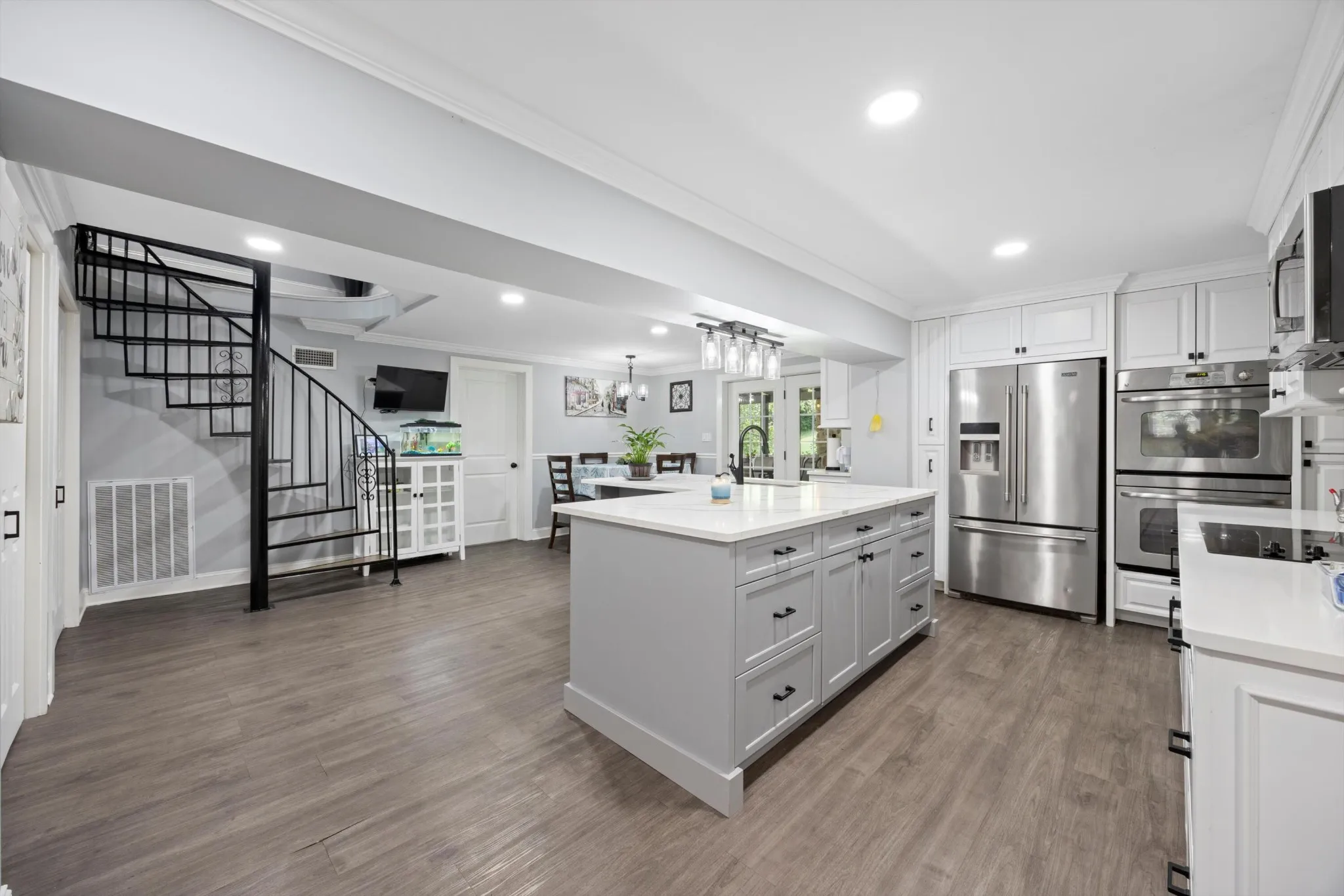 This stunning 5-bedroom, 3.5-bath home offers over-the-top functionality and comfort, perfect for families or multi-generational living. The heart of the home is a large kitchen with an eat-in area, expansive quartz countertops, two full-size pantries, and a dedicated dining area?ideal for gatherings of all sizes. The main living room features a cozy fireplace, while upstairs you’ll find a second living space and a separate office or flex room. Dual staircases provide easy access between levels, enhancing flow and convenience. The oversized laundry room, two-car garage with extra space for storage or woodworking, and thoughtfully designed layout make daily life effortless. Step outside to an open covered back porch complete with a fireplace, gas grill, and Blackstone griddle?perfect for year-round entertaining. With space, comfort, and thoughtful touches throughout, this home is truly one you need to see in person.