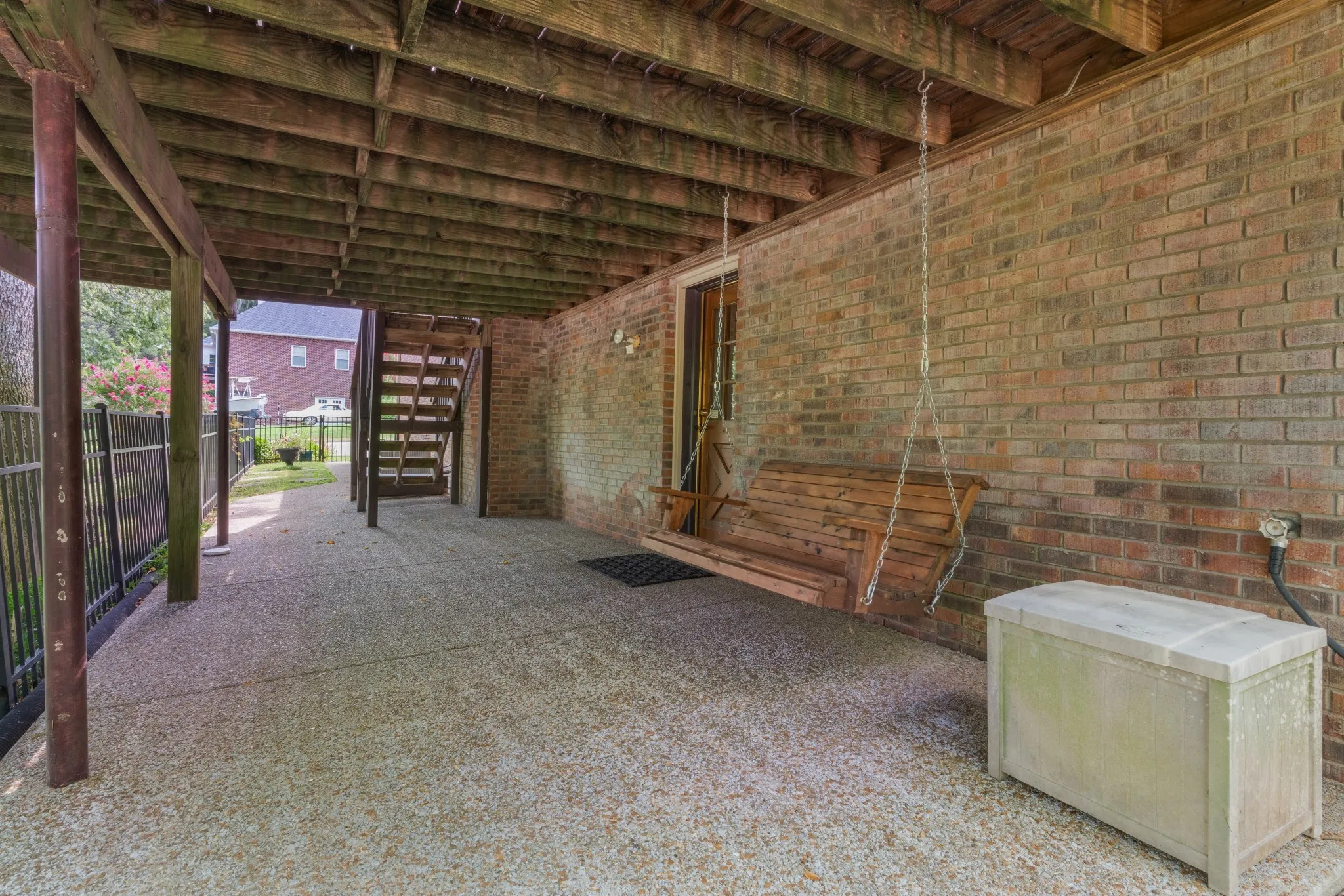 Upstairs includes 3 bedrooms and 2 full baths, including a large primary suite and a generous laundry room. Downstairs, discover serious bonus space: full bath, rec room, hobby area, and private exterior entrance—ideal for in-laws, guests, or potential Airbnb use. The garage fits up to 5 cars with extended parking pad and workbench area. Energy features include Energy Star windows, low VOC paint, and sealed ducting. Storm doors, extra storage, and a weather-safe room under the front porch complete the picture.\n
