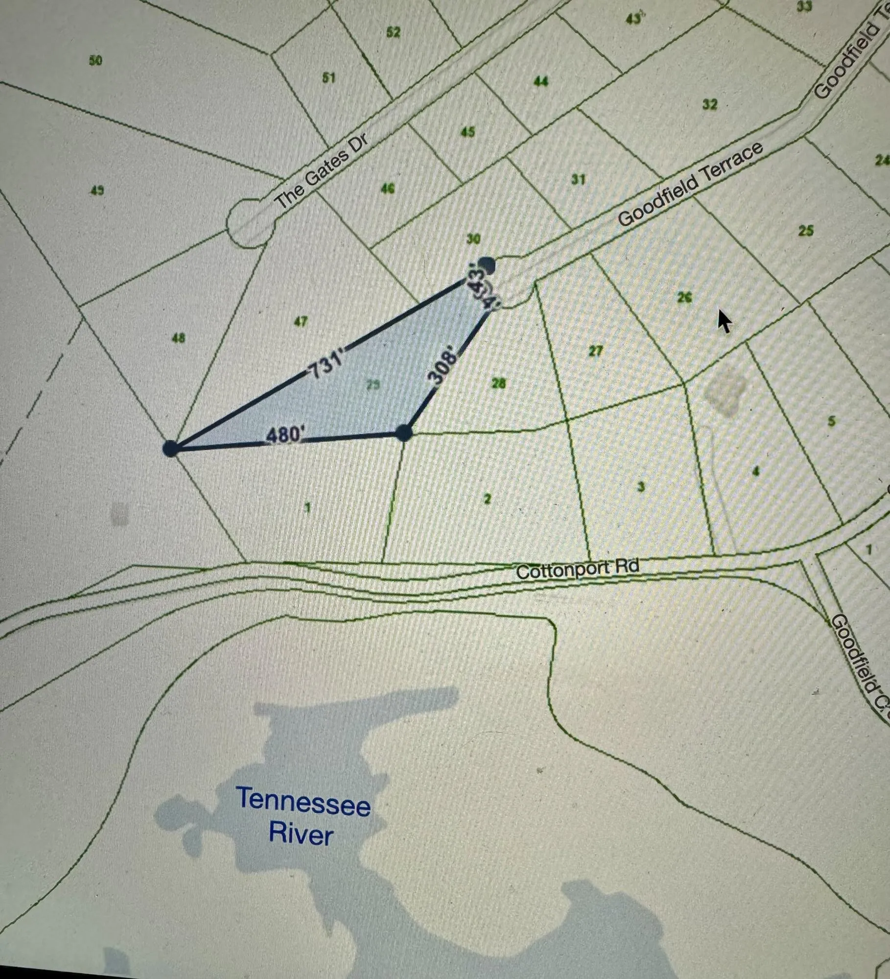 Nearly 2 acres in the beautiful Gates of the River subdivision. The view from your front porch is of rolling hills – from the back porch woods and wildlife. This is a must see if you want to build your home in a gated community full of wildlife with access to the TN River. Common area has a ramp, decking and pavilion. Fish, picnic or commune with nature. Water, Elec., H.S. internet and Gas – at the street. Sign on property.