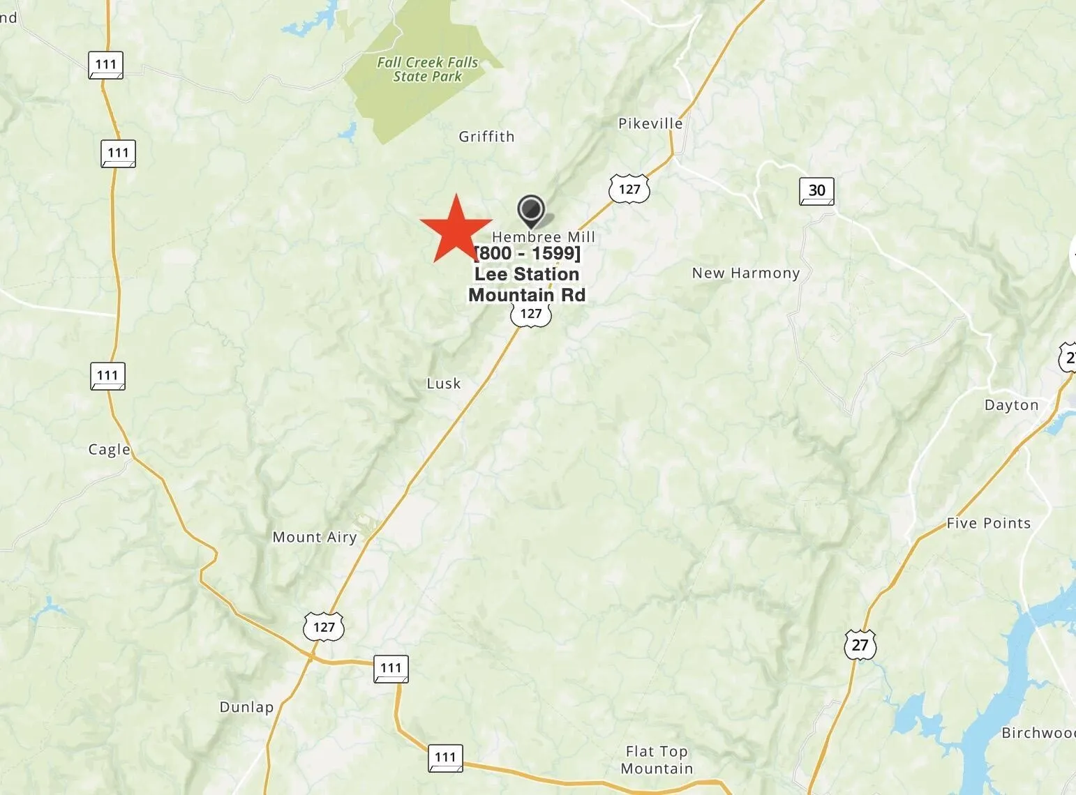 - Directions: Hwy 27 to Hwy 30 to Pikeville, left on Hwy 127 to Lee Station Mountain Road, Property on left at Sunrise Trail