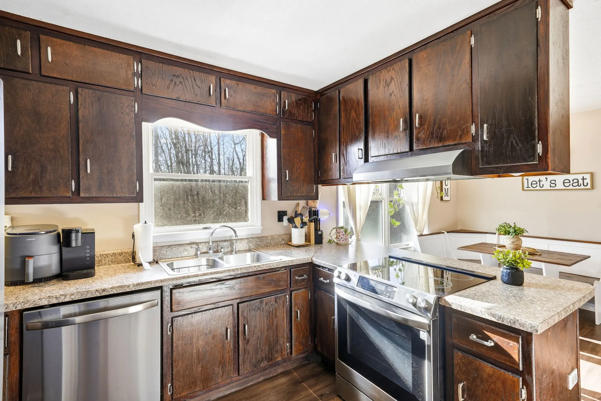 Welcome to your homestead dreams! Thoughtfully updated ranch-style home offering 5 bedrooms, 2 bathrooms, and 1,944 sq ft, situated on 5.5 +/- unrestricted acres—perfect for those seeking true country living. This home features durable LVP flooring throughout, a spacious laundry room, and a functional kitchen equipped with stainless steel appliances, a bar-top ideal for casual meals, and an adjoining eat-in dining area for gatherings.