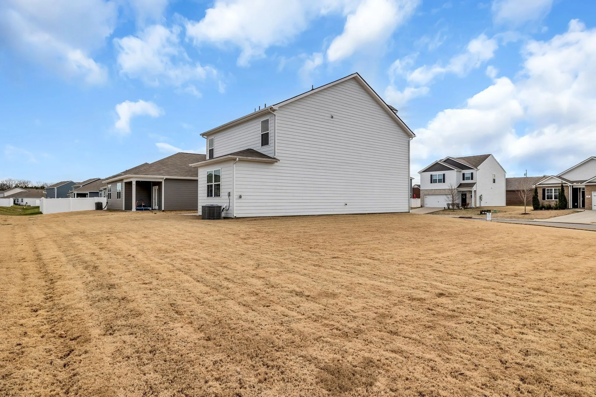 Upstairs, you will find the generous sleeping quarters, including a serene primary suite complete with a walk-in closet and a spa-like en-suite bath featuring a double vanity and walk-in shower. Three additional bedrooms provide flexibility for family, guests, or a dedicated home office. The convenience of a second-floor laundry room makes daily chores a breeze. Step outside to the rear concrete patio overlooking a large, level backyard, offering the perfect canvas for your outdoor oasis. Don’t miss the opportunity to own this beautiful home in a growing community!