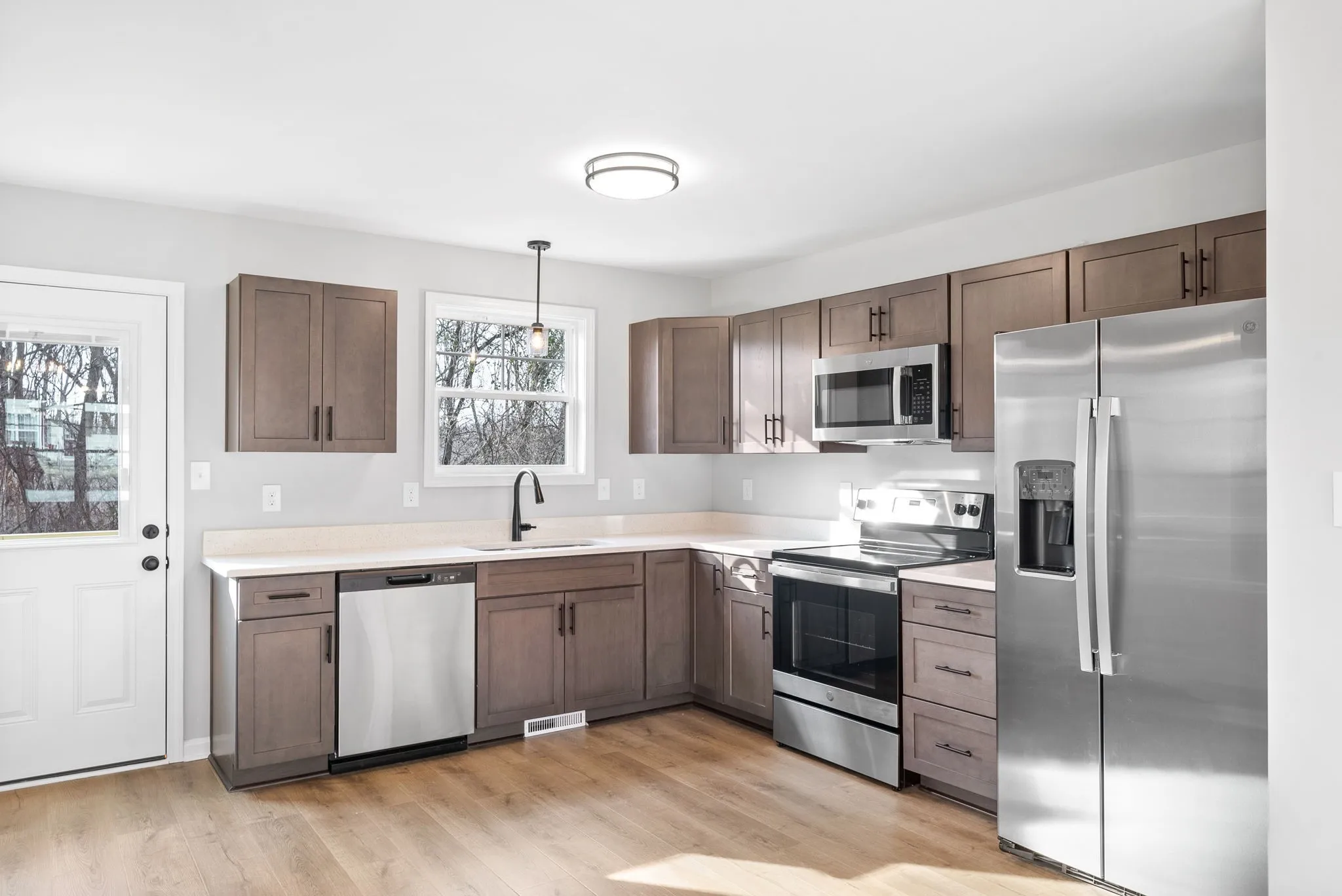 These spacious units offer a modern, stylish living experience with luxurious amenities. Inside, you’ll find elegant LVP flooring in the common areas and cozy carpeted bedrooms. A washer and dryer are included for added convenience. The kitchen features stainless-steel appliances and ample cabinet space for cooking and entertaining. The open floorplan provides plenty of room to relax. Each bedroom has its own private full bath for privacy. Step onto the deck to enjoy fresh air and a view of the large yard. We’re pet-friendly, welcoming two pets with a combined weight of 50 lbs. or less (pet fees and restrictions apply). Don’t miss the chance to make this your new home!