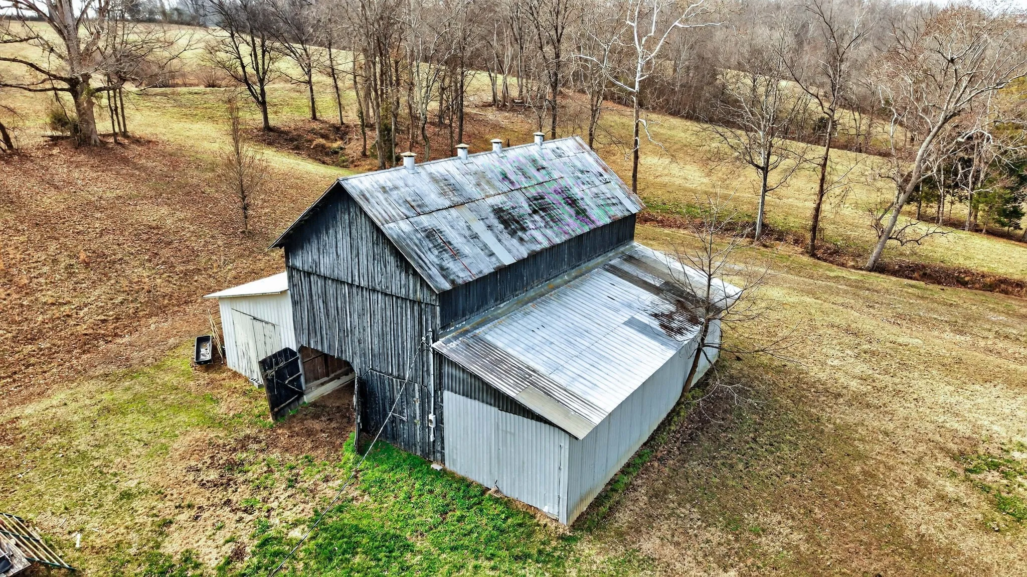 Adding character, history, and income potential, the property includes a beautifully remodeled Civil War–era cabin that is currently operating as a successful income-producing short-term rental, offering immediate revenue and flexibility for guest accommodations or personal use. A three-story tobacco barn flanked by twin sheds, all with concrete floors, provides ample storage and utility for agricultural operations, equipment, or recreational needs.