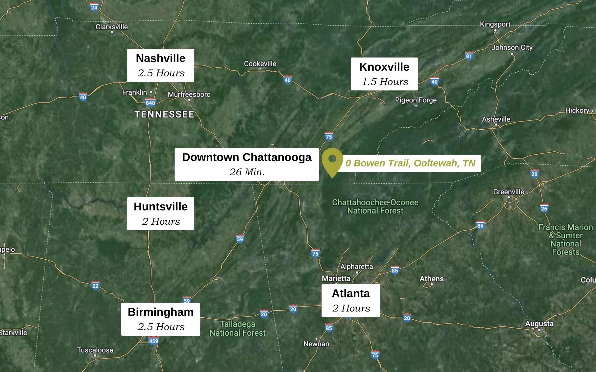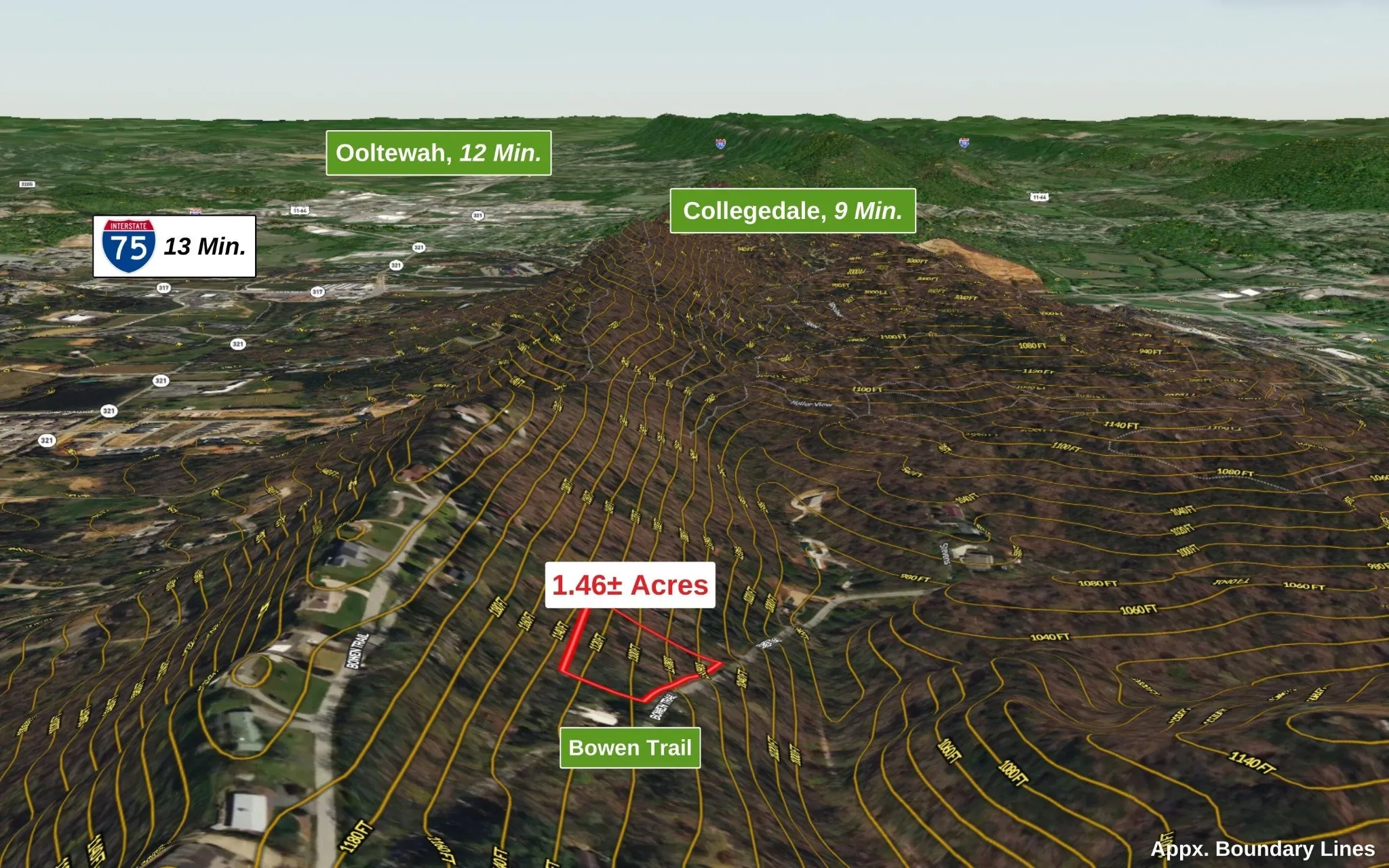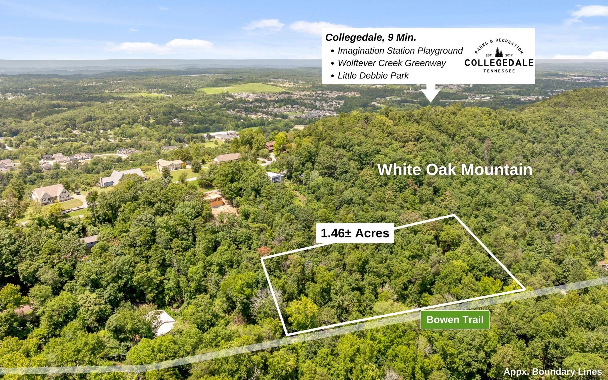 NEW PRICE, HOMESITE on White Oak Mountain! 1.46+/- ACRES in Hamilton County, less than 30 minutes to downtown Chattanooga, this property offers wooded privacy with utilities and over 300 feet of road frontage on Bowen Trail. Local OOLTEWAH shopping, dining, and entertainment can be found at CAMBRIDGE SQUARE just 12 minutes away! Collegedale is known as the home of the renowned Little Debbie headquarters and Southern Adventist University, also offering a small town experience and vast outdoor recreation. WALK along the greenway to Veterans Memorial Park, PACK an afternoon picnic at Little Debbie Park, PLAY at the Imagination Station Playground, or SHOP a weekend Farmer’s Market at The Commons in Collegedale. For the outdoor adventurer, nearby Southern Adventist Biology Trails offers mountain biking or hiking trails. Enterprise South Nature Park within 13 minutes for over 28,000 acres of biking, hiking, walking, and new horseback riding trails along historical sites. 13 minute commute to Volkswagen Chattanooga and Amazon Fulfillment Center. Hamilton Place Mall, big box stores, local businesses, restaurants, and Erlanger East Hospital are a 15 minute drive. Located 13 minutes from I-75 and 22 minutes from Chattanooga Metropolitan Airport for convenient travel. 28 minutes to Cleveland, 1.5 hours to Knoxville, and 2 hours to Atlanta. NO STATE INCOME TAX in TN! Your mountaintop homesite awaits. Schedule your private showing today!