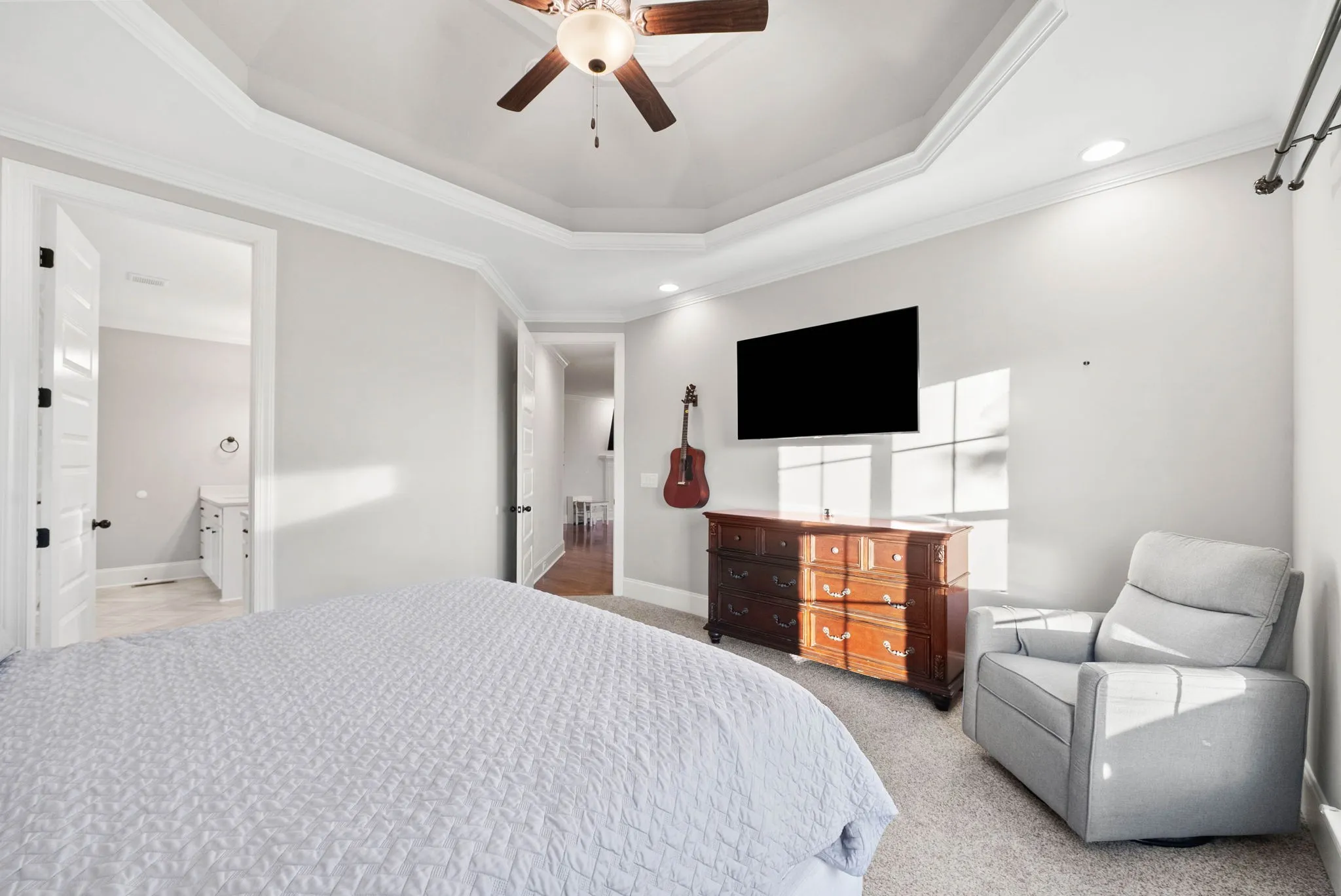 Just over 3,000 square feet, this all brick home with a fully fenced backyard is located in the highly sought after Stonehollow subdivision, tucked behind Mt. Juliet High School. Enjoy a prime location minutes to Charlie Daniels Park and nearby sports fields, with an easy commute just 25 miles to downtown Nashville. Built in 2019 by Universal Builders, this quality constructed home offers a thoughtful and spacious layout with two bedrooms on the main level and three additional bedrooms upstairs plus a large bonus room. The main living areas feature gorgeous sand and finish hardwood floors, recessed lighting, crown molding, and an open concept design ideal for everyday living and entertaining. The primary suite is located on the main floor and includes a tray ceiling and a private bath with a spacious tiled shower, separate tub, separate double vanities, and a large walk in closet. A secondary main level bedroom provides flexibility for a home office or additional living space, while the upstairs bedrooms are generously sized and offer privacy and versatility. Outdoor living is enhanced by a screened in back patio overlooking the fenced yard, perfect for relaxing or entertaining, along with a covered front porch that adds charm and curb appeal. Additional highlights include a tankless water heater, generous storage, and a floor plan designed for comfortable daily living. Sidewalks throughout the neighborhood and walking distance to the community pool and playground add to the appeal, making this home a standout opportunity in one of Mount Juliet’s most established and desirable communities.