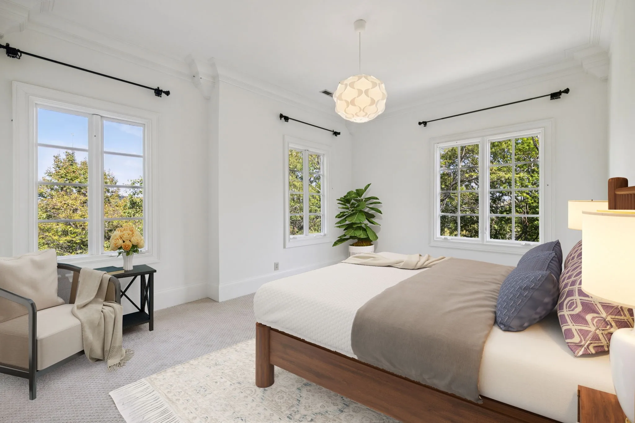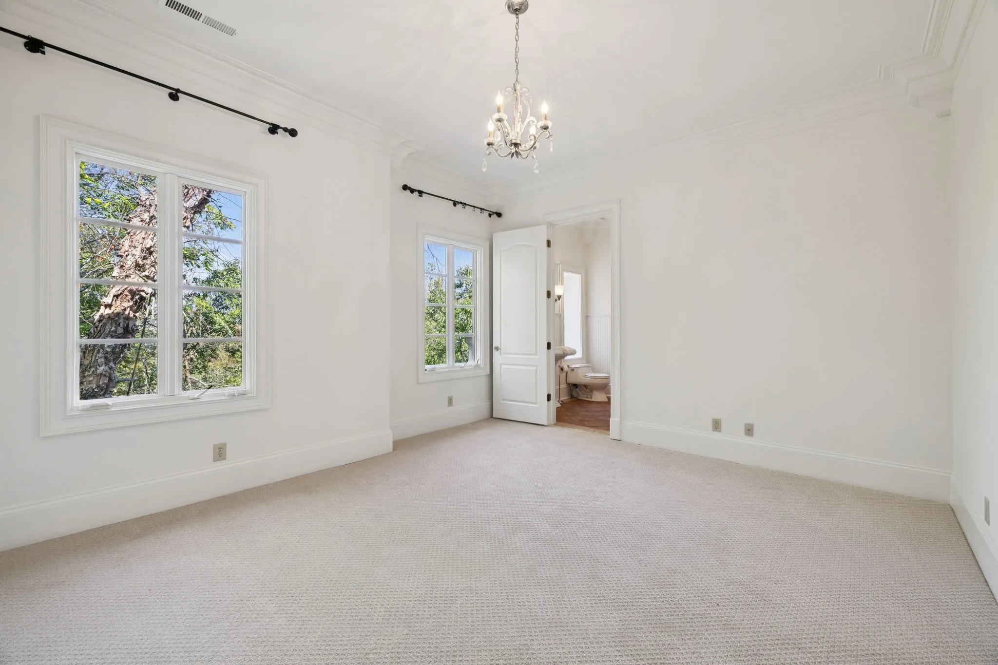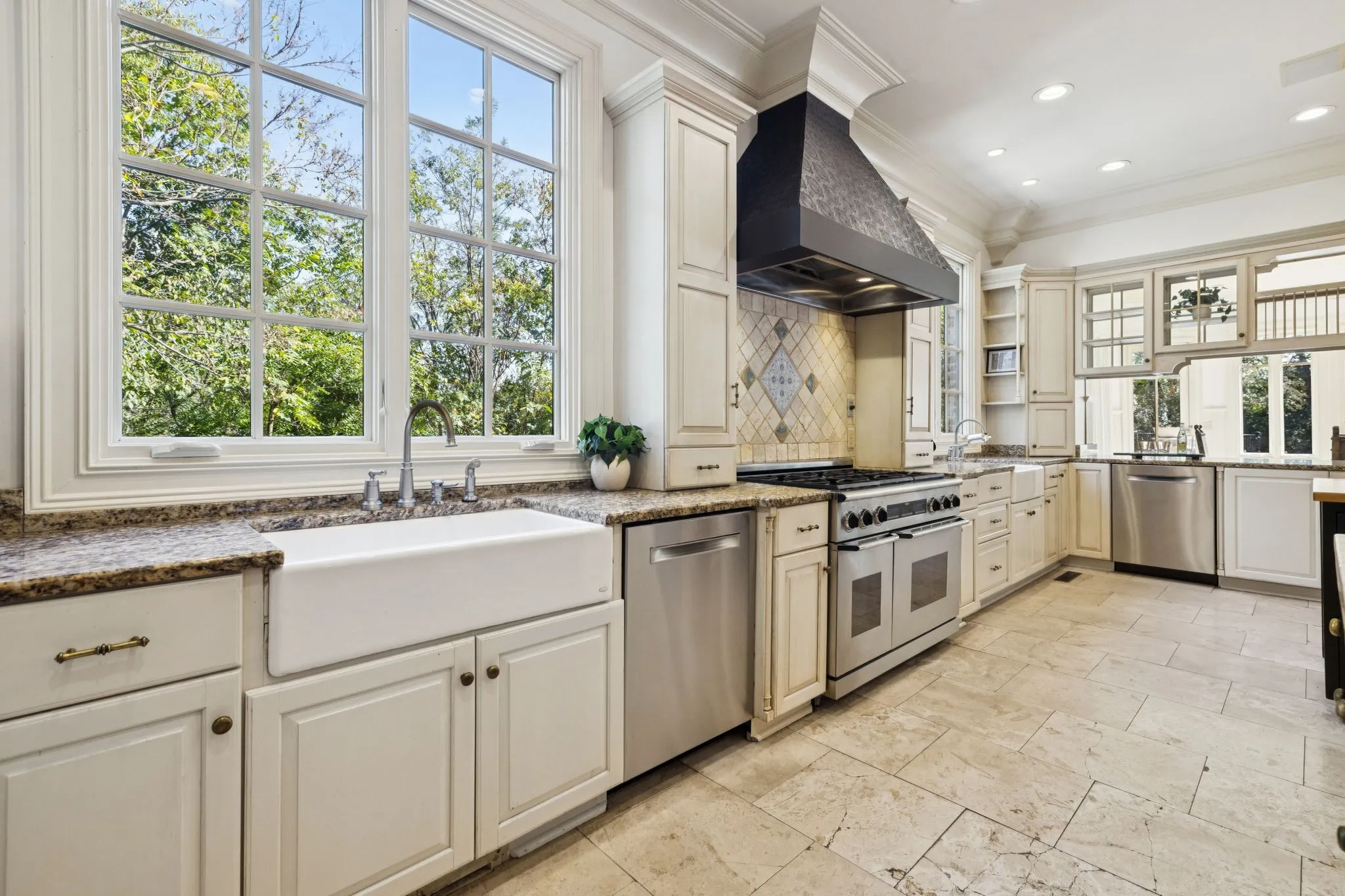 Light-filled and elegantly designed, the home features soaring ceilings, detailed crown moldings, and refined finishes throughout. A distinguished home office evokes classic Ralph Lauren style with rich wood paneling, custom built-in bookcases, and timeless architectural detail, while the formal dining room reflects the refined elegance of a Veranda magazine spread—perfect for memorable gatherings.\n