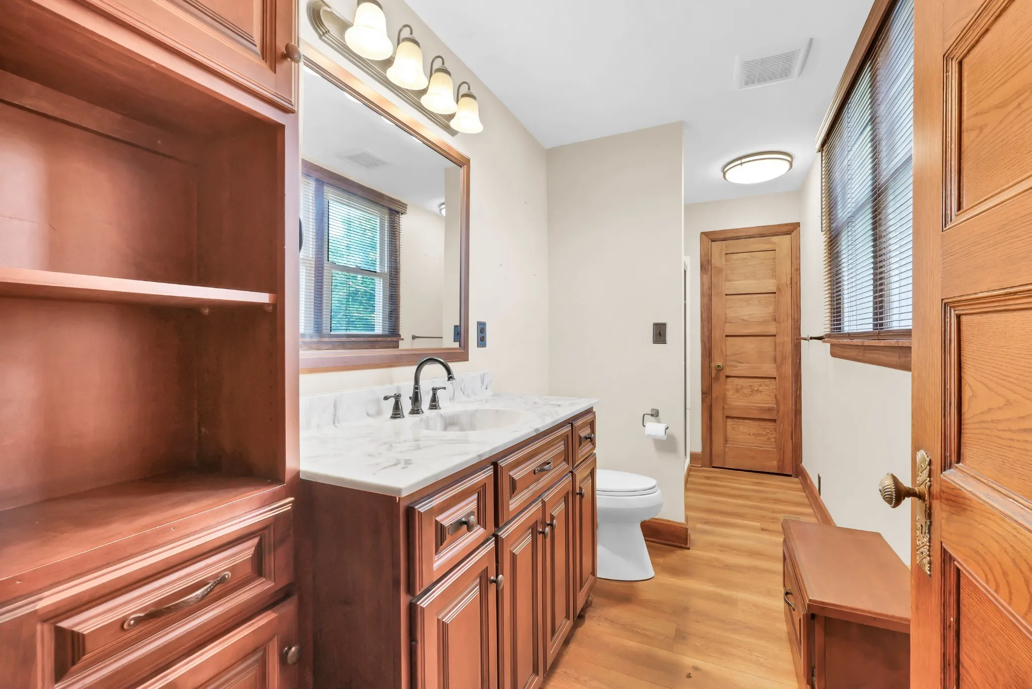 Beautifully maintained 4-bedroom, 2 full-bath home offering 3,386 sq. ft. of comfortable living space. Hardwood floors, high ceilings, and rich woodwork create timeless charm throughout, while four propane fireplaces add warmth and character. The bedrooms, bathrooms, and kitchen have been thoughtfully updated, with the kitchen featuring under-cabinet lighting for both function and ambiance. Each bedroom includes upgraded electrical outlets and convenient auto-light closets.