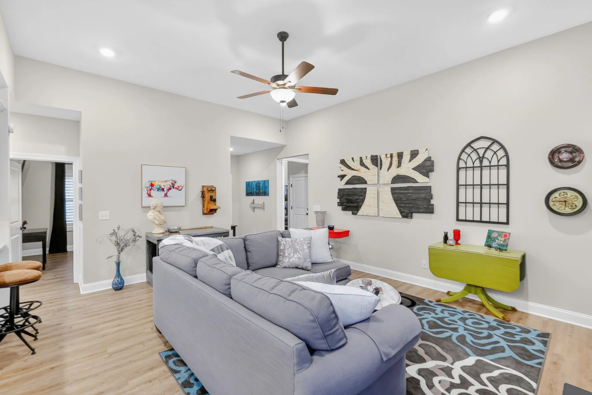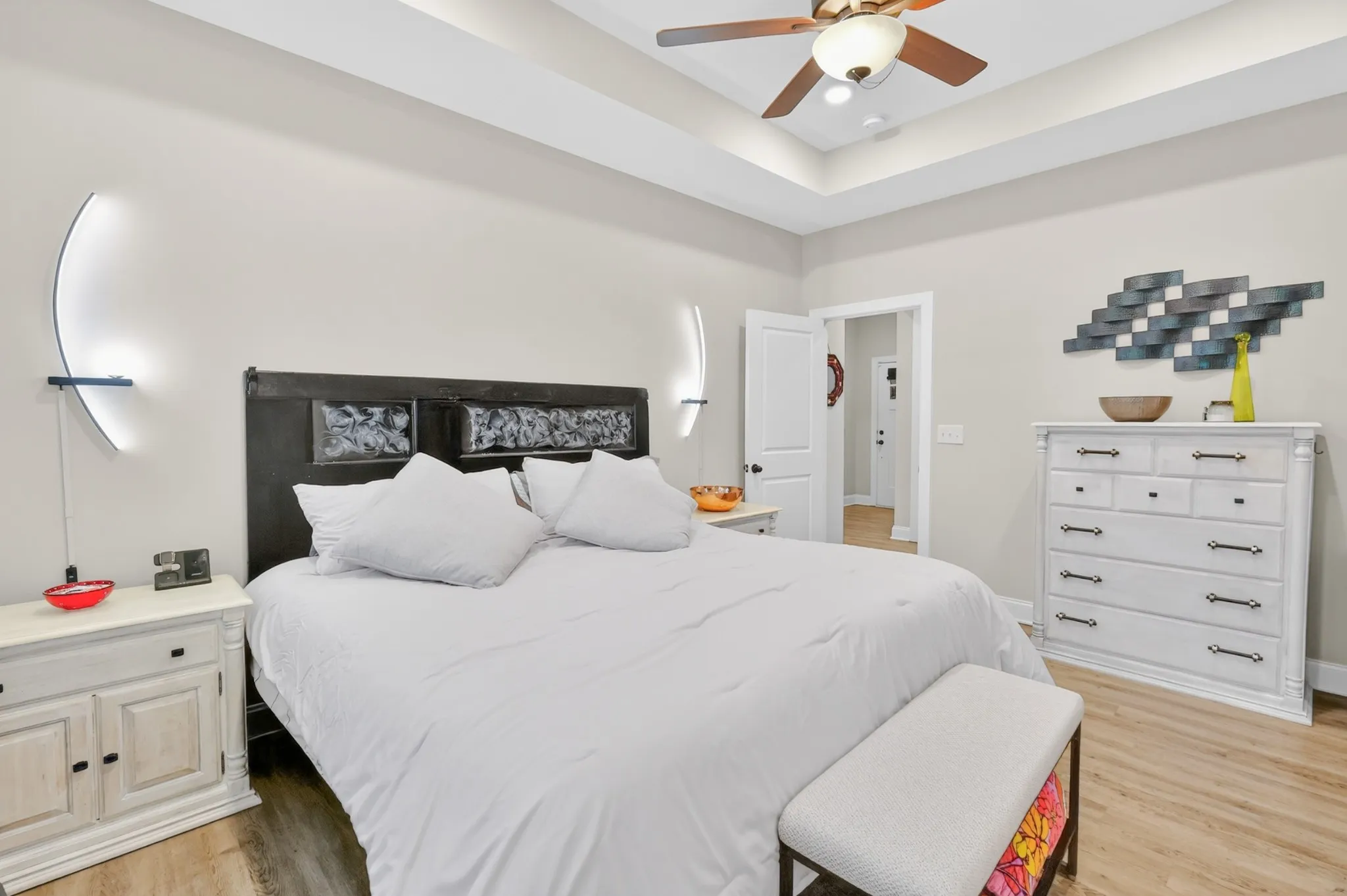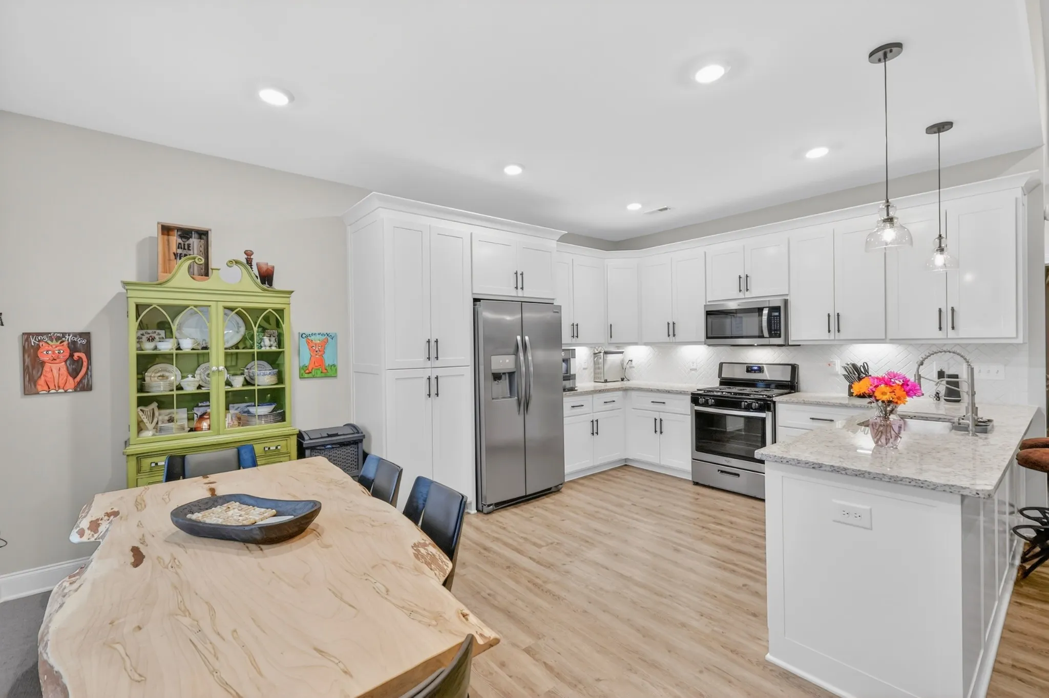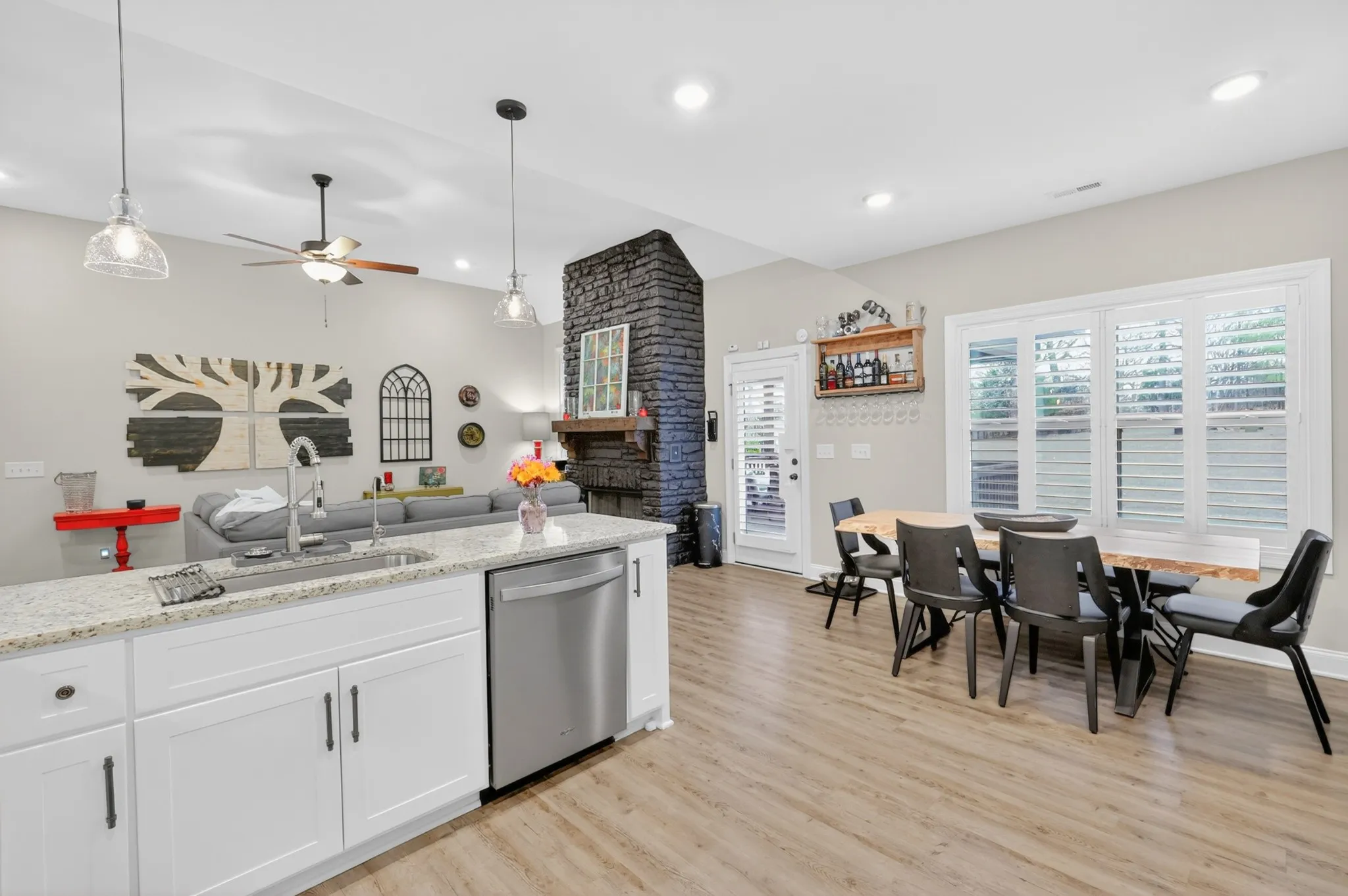 Inside, you’ll find luxury vinyl plank flooring throughout—no carpet—creating a clean, modern look that’s both stylish and low-maintenance. All living spaces and bedrooms are conveniently located on one level, making everyday living effortless. Each closet has been upgraded with custom shelving and hanging systems, maximizing storage and organization.