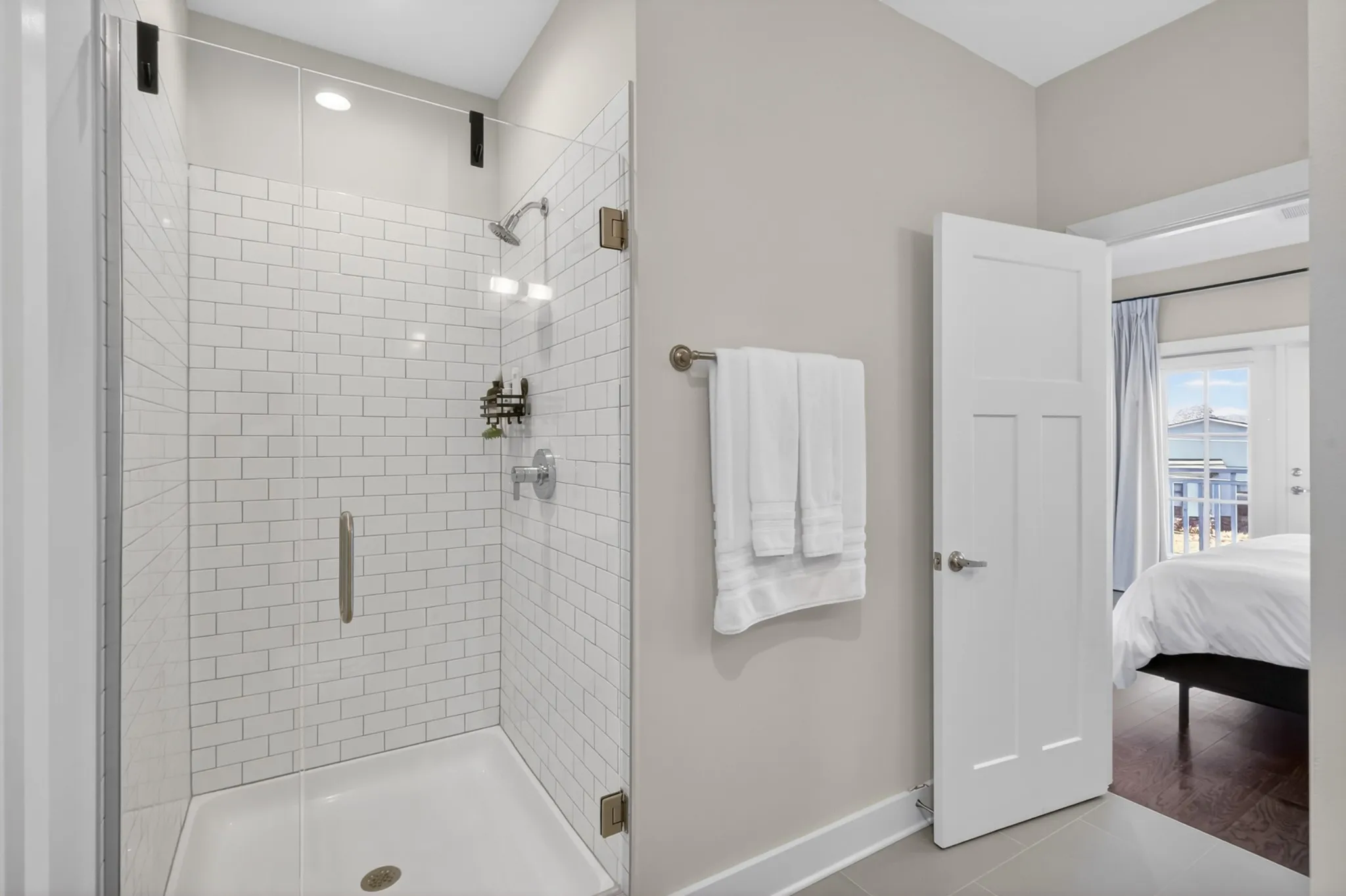 Built in 2023 and better than new, the first floor bedroom suite has its own full bath finished in modern subway tile and granite countertops. Thoughtfully positioned on its own floor, this room functions beautifully as a bedroom or flex space, and a walk in closet. The adjacent balcony creates the perfect spot for morning coffee retreats that gives this floor its own identity.