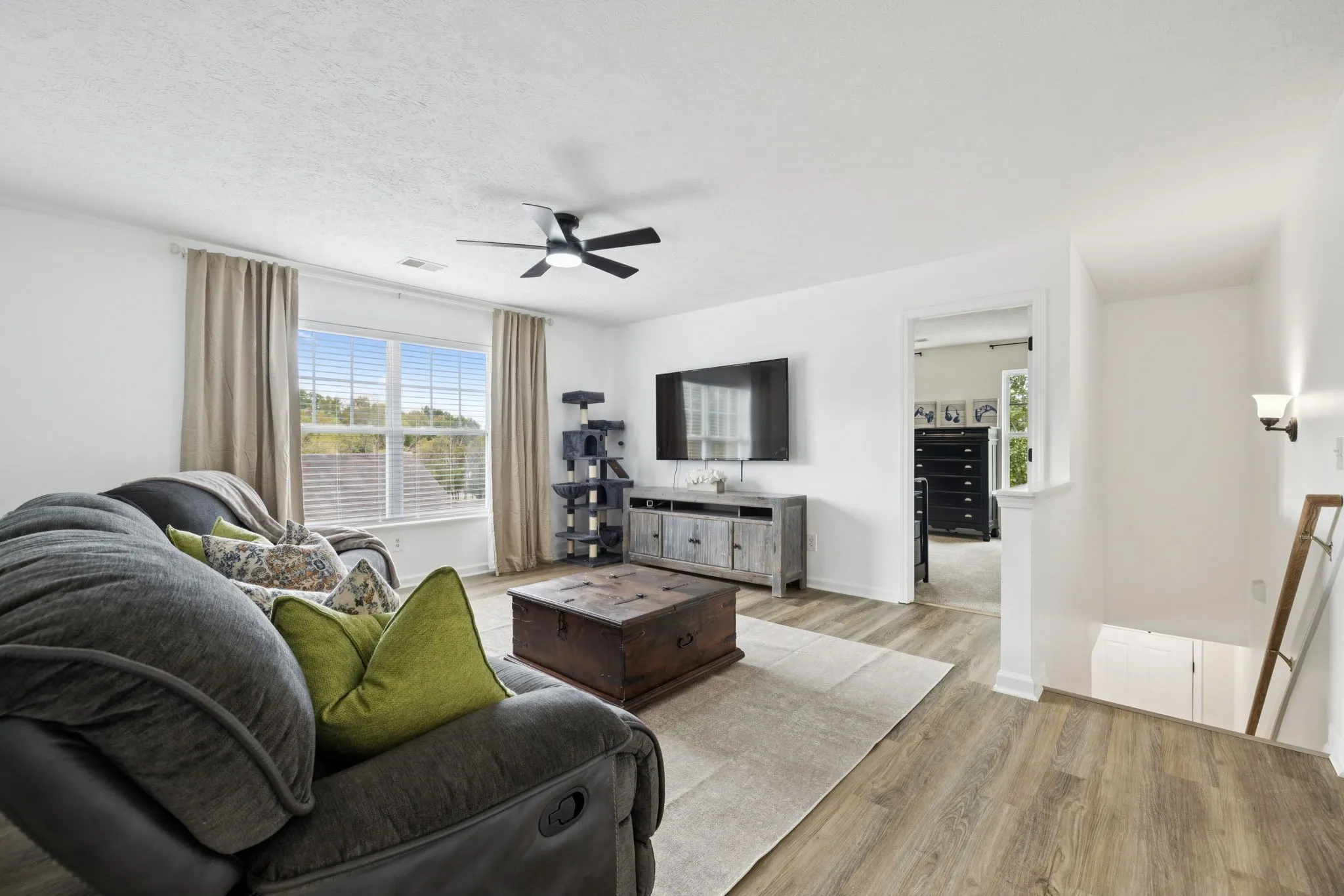 Must see this beautifully renovated 4-bedroom home in the highly sought-after Mansker Farms Subdivision! This stunning property features fresh paint throughout, creating a bright and inviting atmosphere. The kitchen is complete with brand new quartz countertops, a custom backsplash, and stylish brushed gold fixtures, complemented by sleek stainless appliances. Step inside and discover all new flooring upstairs. The spacious primary bedroom features an updated primary bath with a new vanity and separate tub and shower. The home boasts a brand new water heater, newer HVAC and roof for comfortable living year-round. Enjoy your mornings on the wrap around covered front porch or the private backyard with serene views of the green space, surrounded by a brand new wood privacy fence. This prime location puts you just steps away from the community pool, clubhouse, playground, and tennis court—perfect for active lifestyles and family fun. Zoned for the desirable Madison Creek Elementary, minutes to Vietnam Veterans Parkway, Moss Wright Park, Publix, etc. Don’t miss the chance to make this exquisite home yours!