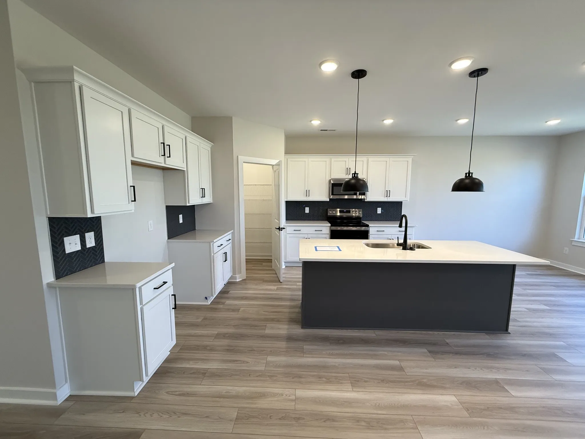 Upon entering the main level, you are welcomed by a private study with elegant French doors, making it the perfect space for a home office, library, or quiet retreat. The heart of the home is the stunning L-shaped kitchen, designed for both beauty and efficiency. It features sleek quartz countertops, abundant cabinetry, and ample prep space, all while maintaining a seamless connection to the main living and dining areas—ideal for entertaining guests or enjoying everyday moments at home.