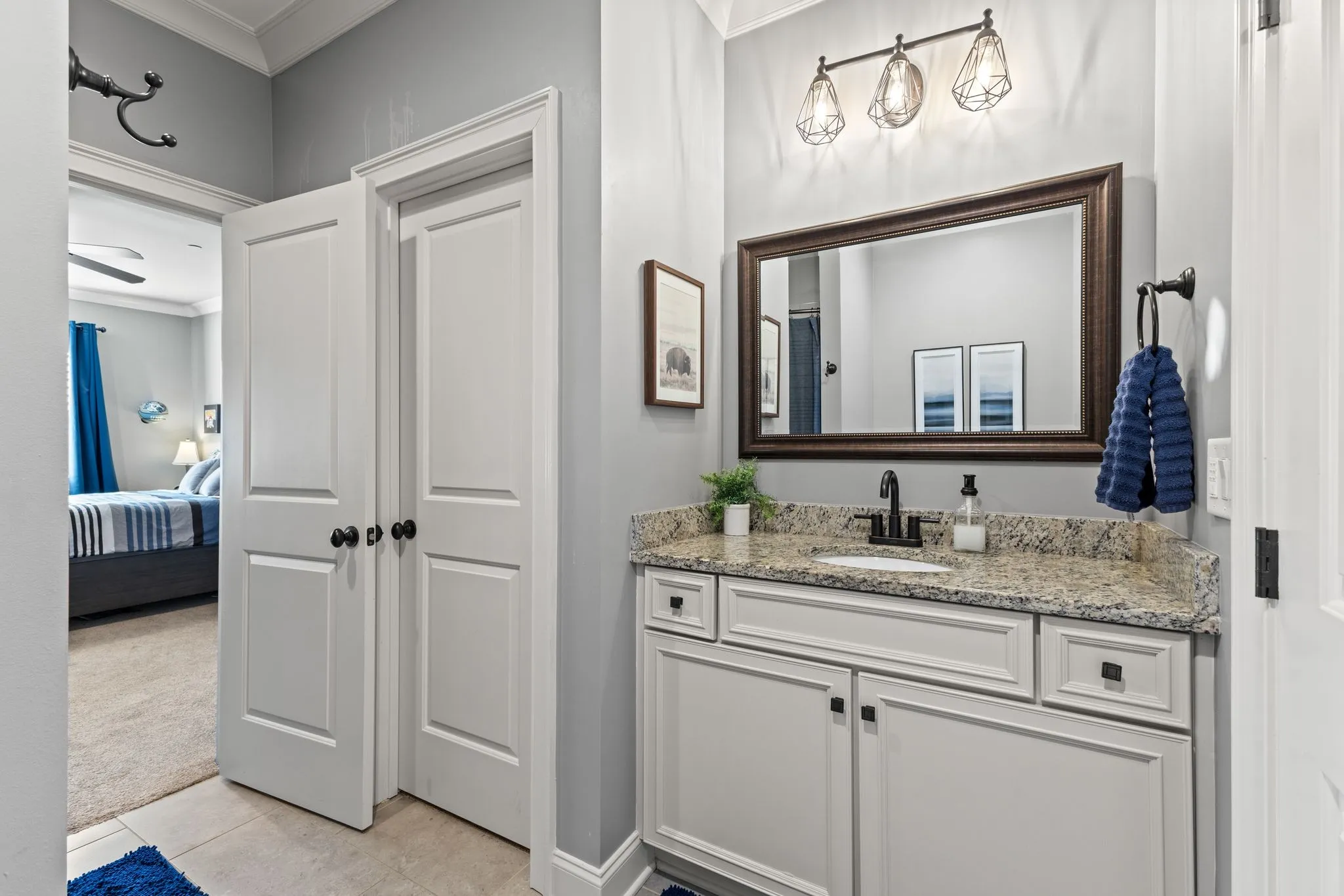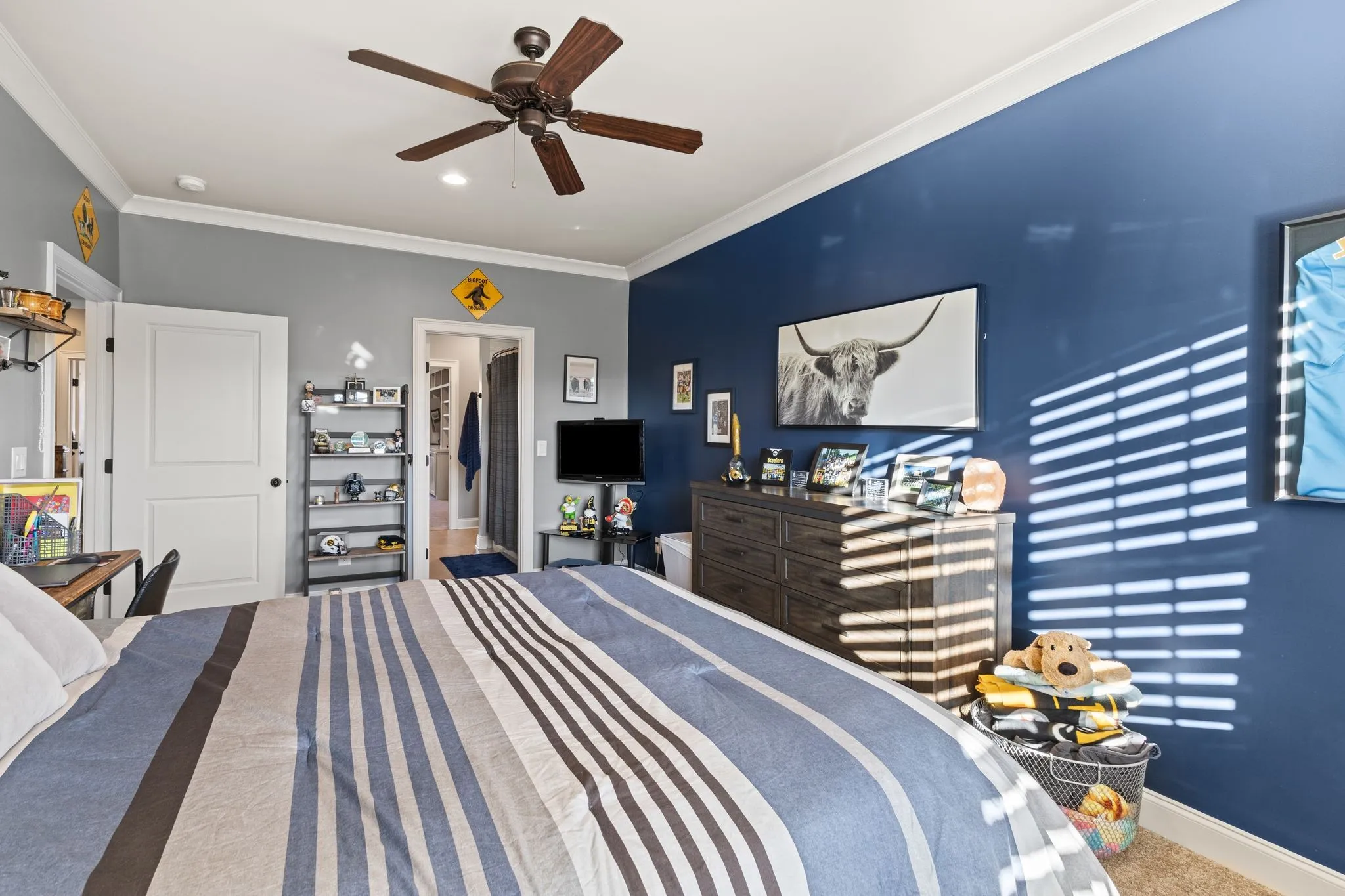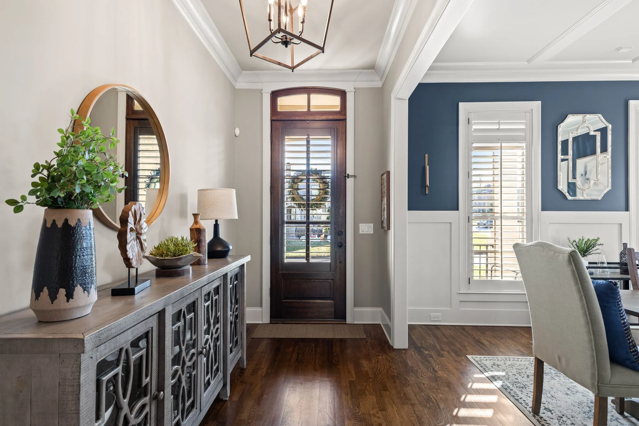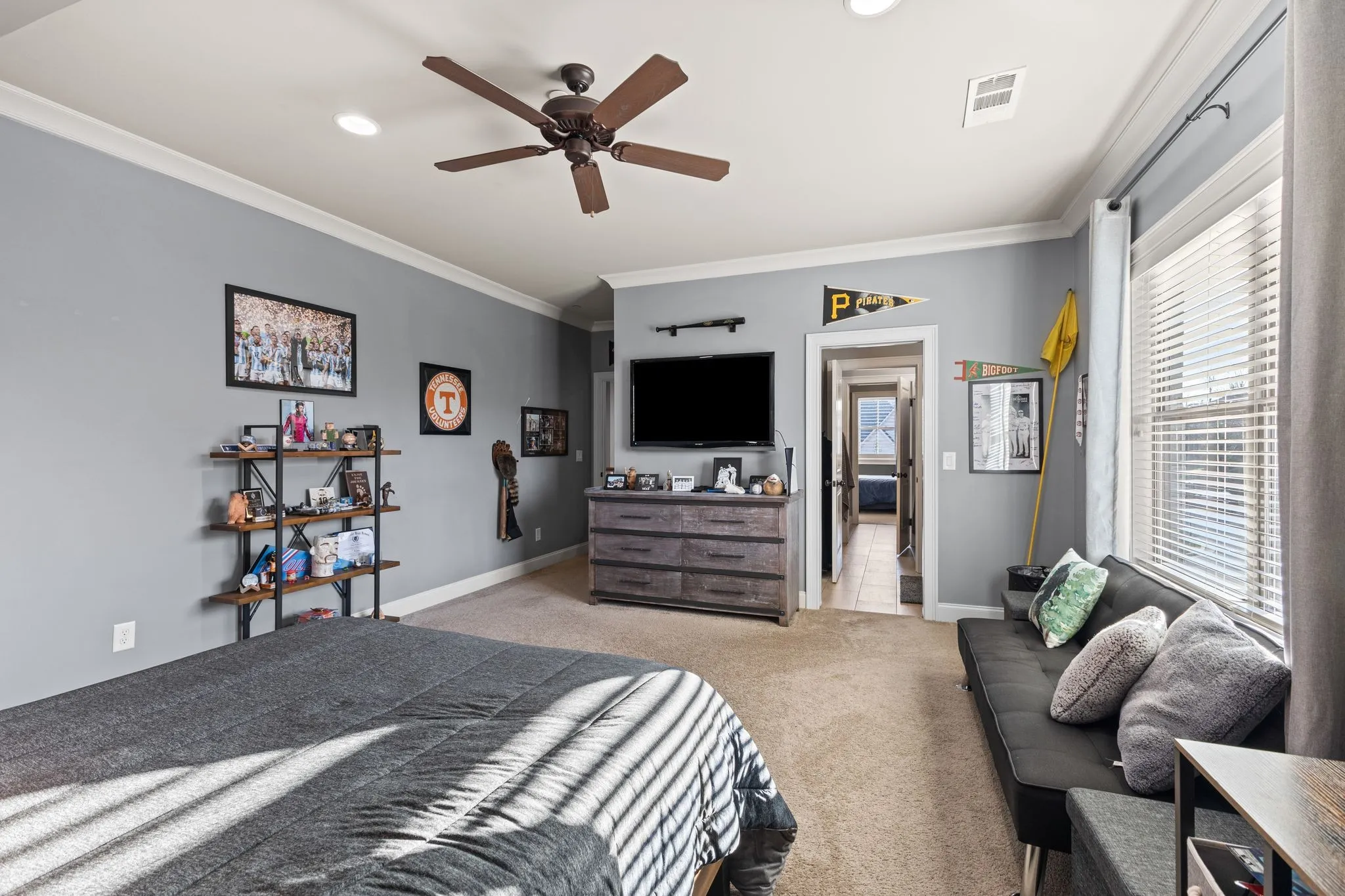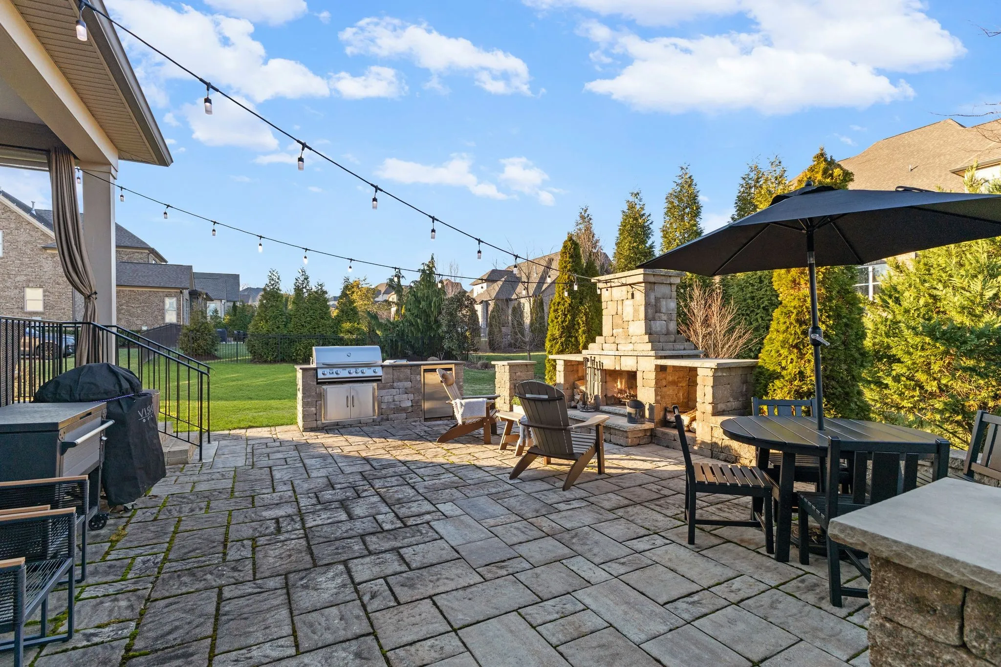 2625 Benington Place is a stunning luxury home, built by Grove Park construction, located in the beautiful and highly sought-after Benington subdivision.This home is thoughtfully designed for comfortable living and effortless entertaining. The open floor plan is filled with natural light from an abundance of windows, including a charming window over the kitchen sink. The gourmet kitchen features a large island that is perfect for gatherings and a convenient butler’s pantry for added storage and prep space. Move-in ready with upscale finishes throughout. The home also offers a tankless water heater and walk-in attic storage. Dedicated flex space off the rec room is ideal for creating an extra hangout space. Whether you are looking to use that space for a dedicated home gym, movie room, playroom, or other, the possibilities are endless. In this flex space, the seller is using it as a home gym and is leaving the projector TV screen on wall & projector. Enjoy outdoor living with a covered back porch overlooking a flat backyard, complete with a paver patio, outdoor fireplace, grill, and beverage cooler—ideal for making memories with family and friends. The secondary bedroom downstairs offers a built in Murphy bed that will stay with the home. Seller doubles use of this room for a home office.