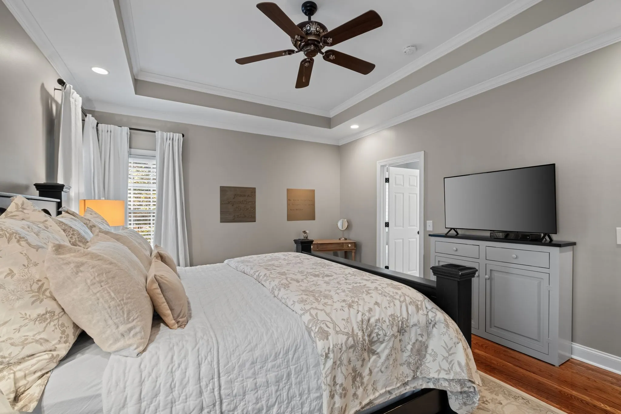 Inside, the meticuously maintained home balances traditional elegance with modern versatility. The heart of the home features a renovated kitchen that opens to a light-filled breakfast area. The main-level Primary Suite serves as a true retreat, featuring a remodeled bath and a dedicated flex space ideal for a quiet reading nook, nursery or office.