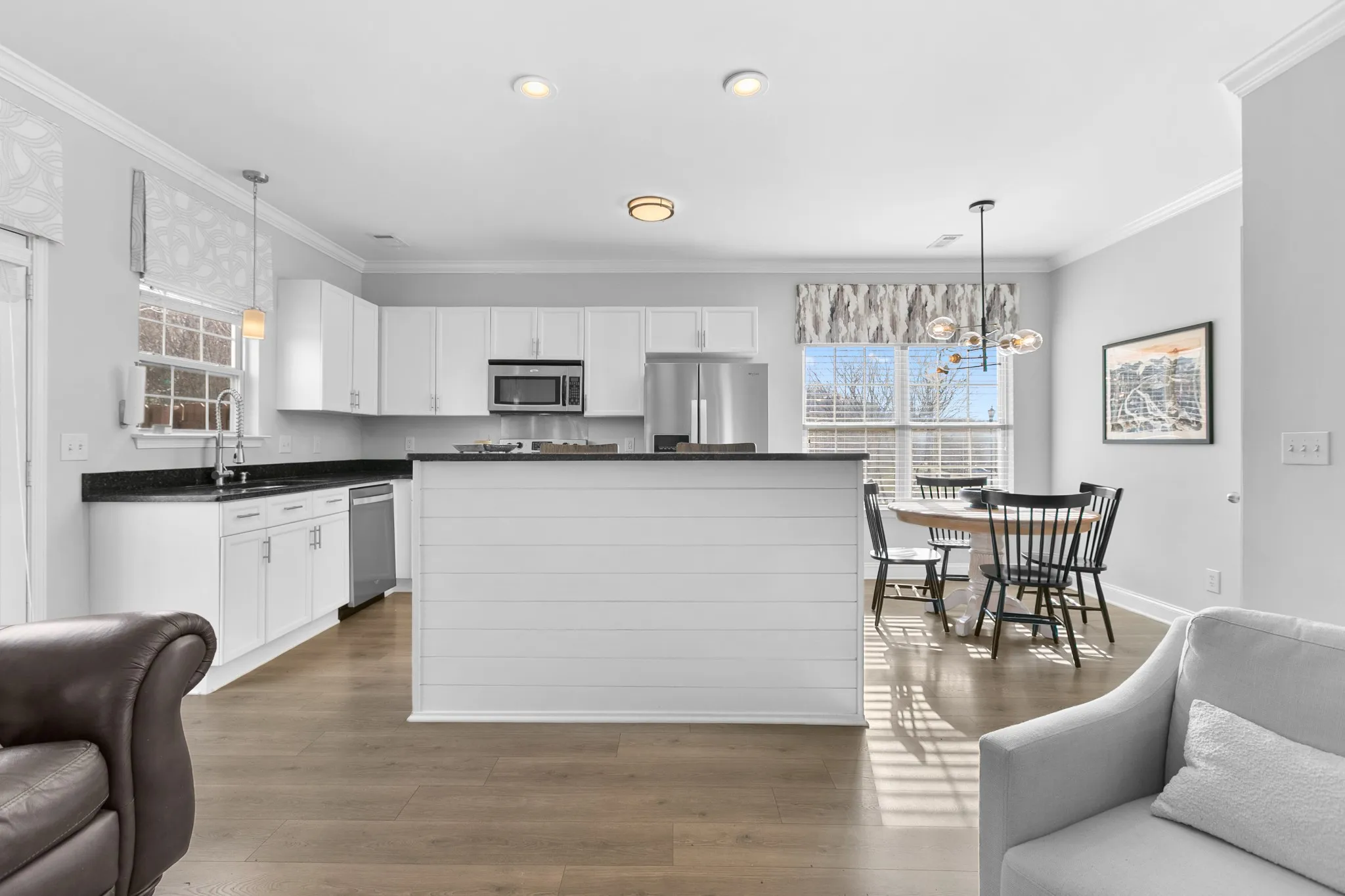 Prime Location & Easy Living! Townhouse end unit backing to neighborhood pond, just minutes to I-40 and quick access to the best of Nashville! Living room, kitchen and breakfast area are all open & flooded with natural light. Kitchen has dark granite and stainless appliances. Upstairs- two bedrooms, laundry and oversized closets. Each bedroom has a private bathroom. Double closet in Primary Suite. Enjoy the private patio and the sounds of the fountain! Make sure to click the 3D Tour and walk through now! Attached is also a full floorplan!