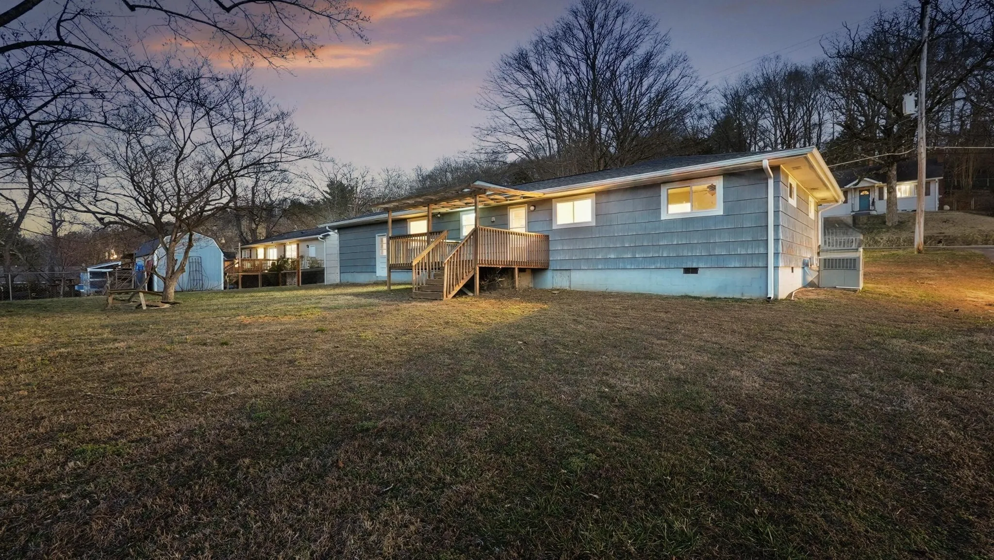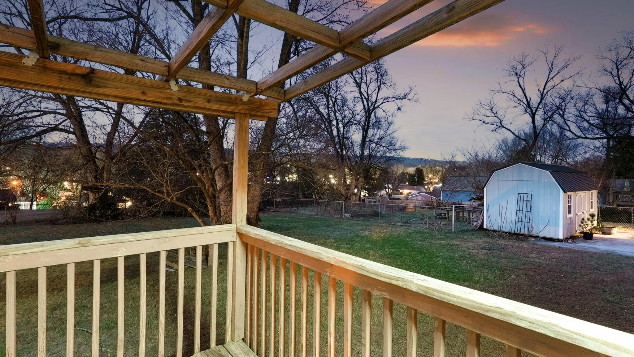 Step outside and enjoy evenings on the back porch watching the sun set with Signal Mountain in the background — a simple, everyday view that makes this location special.