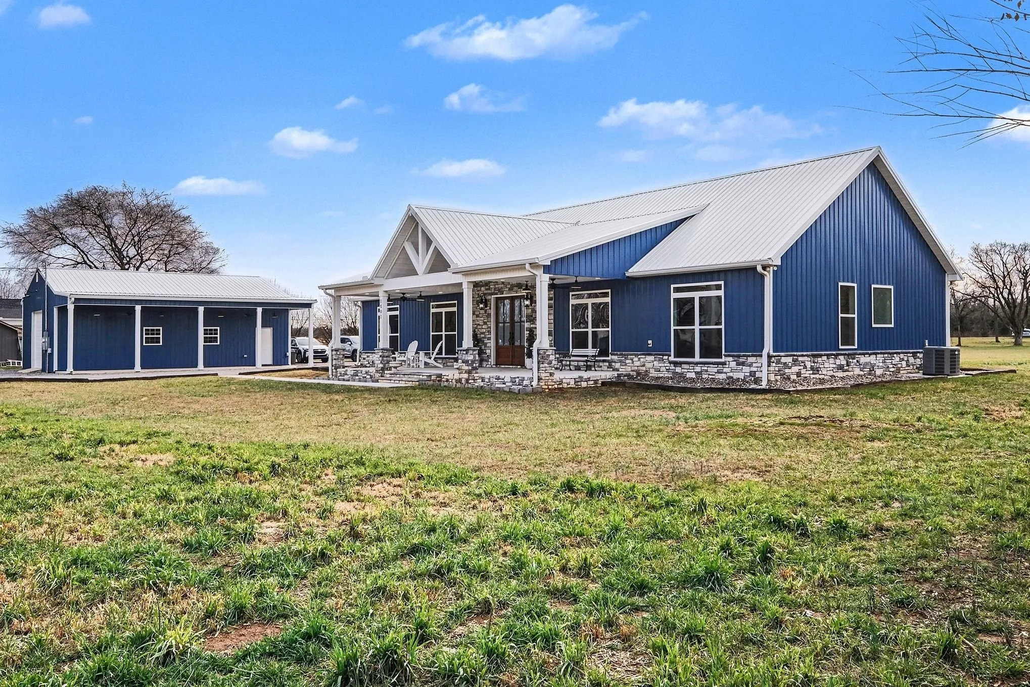 Prepare to be captivated by this stunning, custom-built 3-bedroom, 2.5-bathroom home in the charming city of Lewisburg, TN just completed in January of 2023. This unique property offers a "Barndominium Style" aesthetic with the superior construction of a conventional custom build, designed for quality, efficiency, and comfort. Every detail of this home has been thoughtfully engineered for long-term enjoyment and low utility bills. Superior Construction: Built with 2" x 6" walls and R-19 insulation, featuring R-38 ceiling insulation and 9-foot ceilings throughout. All exterior walls, stone wainscoting, and the roof, steel, are sheathed in 3/4" Plywood, not OSB, providing unmatched durability. Dual Master Suites: Enjoy the privacy and luxury of two full master suites.\n