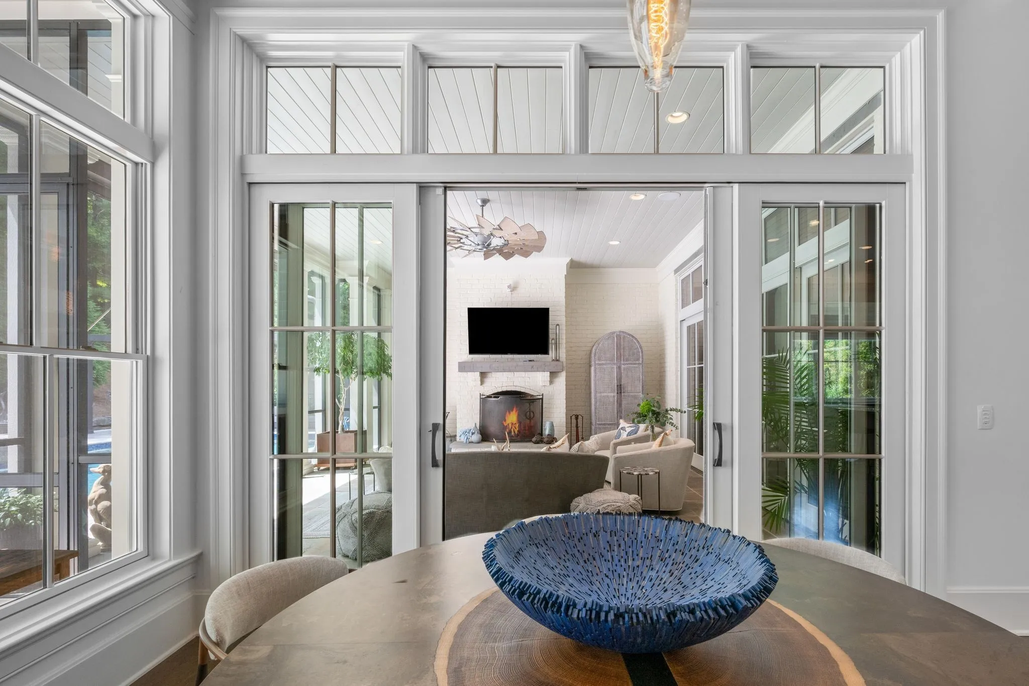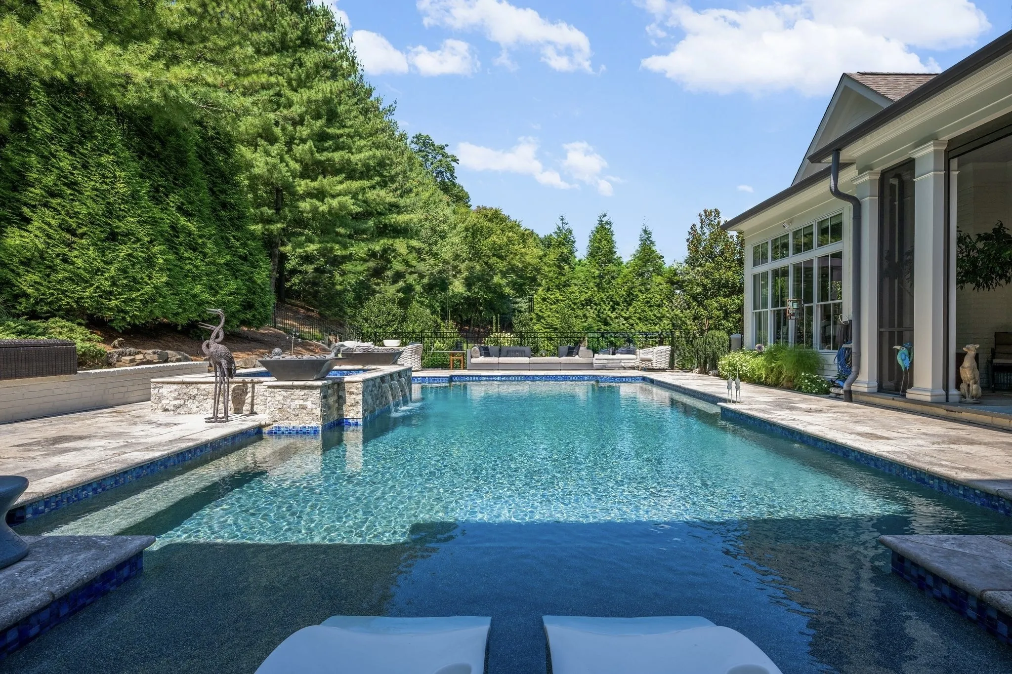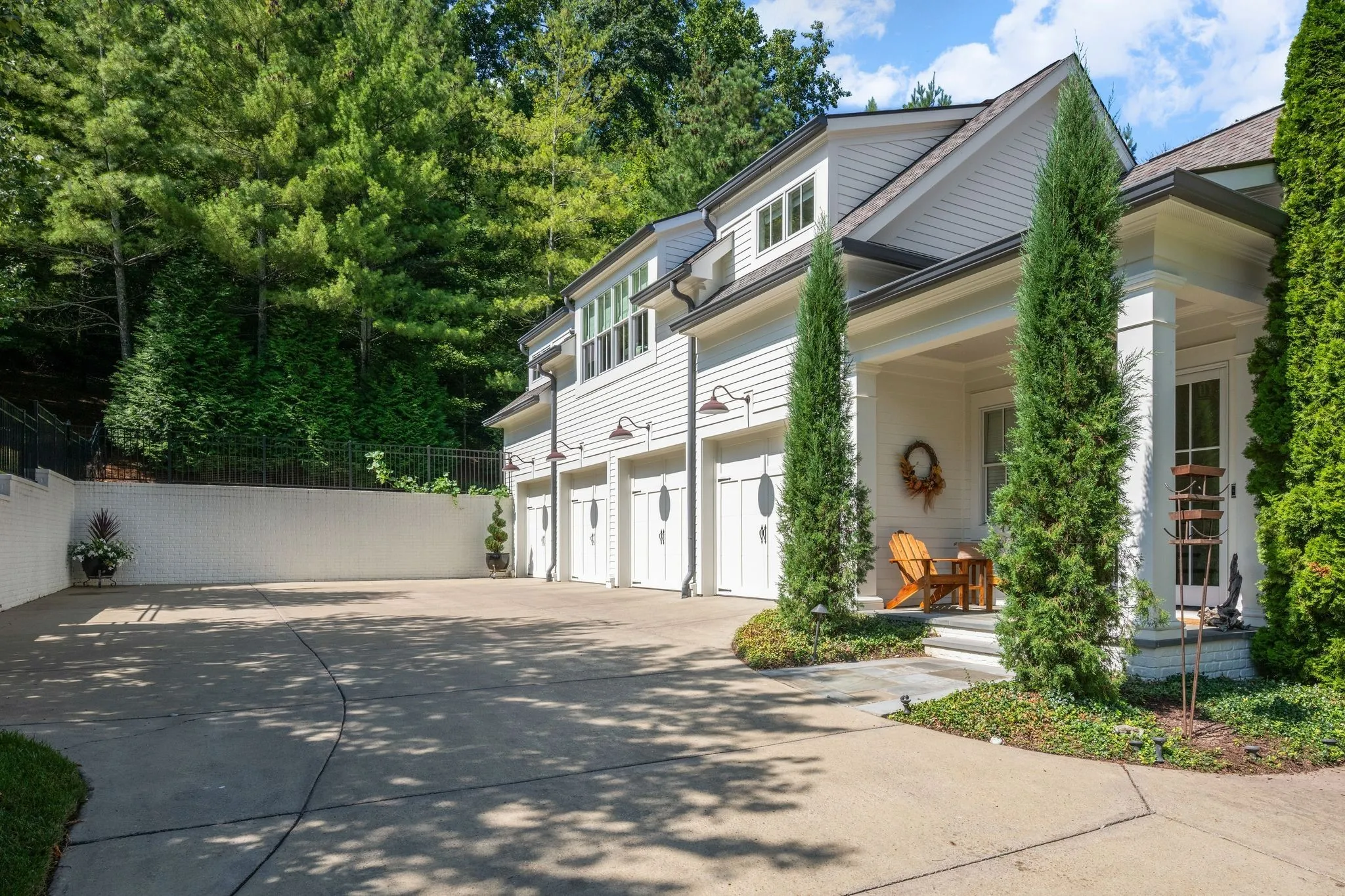 Modern luxury meets exceptional privacy in this stunning estate, located in Windstone—one of Brentwood’s most sought-after gated communities. Tucked into a peaceful hidden valley yet convenient to Franklin, Cool Springs, Brentwood, and all of Williamson County. Built in 2016 and ideally situated near the rear of the community, the home offers six bedrooms, all with en suite baths, plus private guest quarters with a separate entrance. The main-level primary suite features vaulted ceilings with exposed beams and a spa-like bath with dual-entry shower and dual walk-in closets. The gourmet kitchen boasts Wolf gas range, abundant cabinetry and expansive counter space, perfect for entertaining. A finished walk-out basement includes a family room, wet bar, fitness room, full bath, ample storage, and a concrete storm shelter/safe room. Additional highlights include dual laundry rooms, a full-room cedar closet, and a four-car garage with individual stalls. Enjoy outdoor living on the covered patio with fireplace and remote screens overlooking a custom pool and spa, surrounded by mature trees and lush landscaping. Equipped with Control4 smart home features and a 50kW whole-home generator. Windstone amenities include a community pool, clubhouse, and gym. Zoned for Scales Elementary, Brentwood Middle, and Brentwood High.