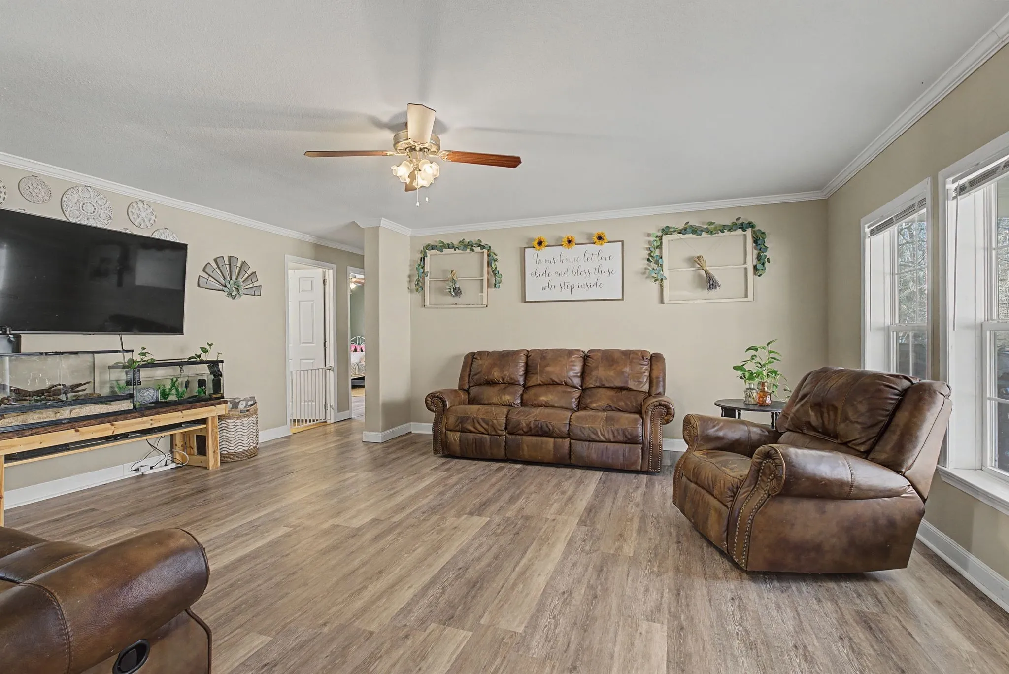 Enjoy the peace and tranquility of country living in this spectacular 1 owner home sitting on beautiful cleared 2.25 acres backing up to the creek located just a few miles to the lake and 10 minutes to town. Bring all you animals since there are no restrictions on this property. This home offers great outdoor living space on a covered deck and huge concrete patio. The spacious great room has plenty of room for family entertainment with beautiful wood floors. The huge country kitchen has an abundance of cabinets and counter space to include a huge center island plus a spacious eating area. All bedrooms are oversized with walk-in closets. The primary suite has a spa like bath with a huge soaking tub, separate shower and double vanities. Hurry this gem won’t ast long. Additional land available. Professional pictures coming soon!!