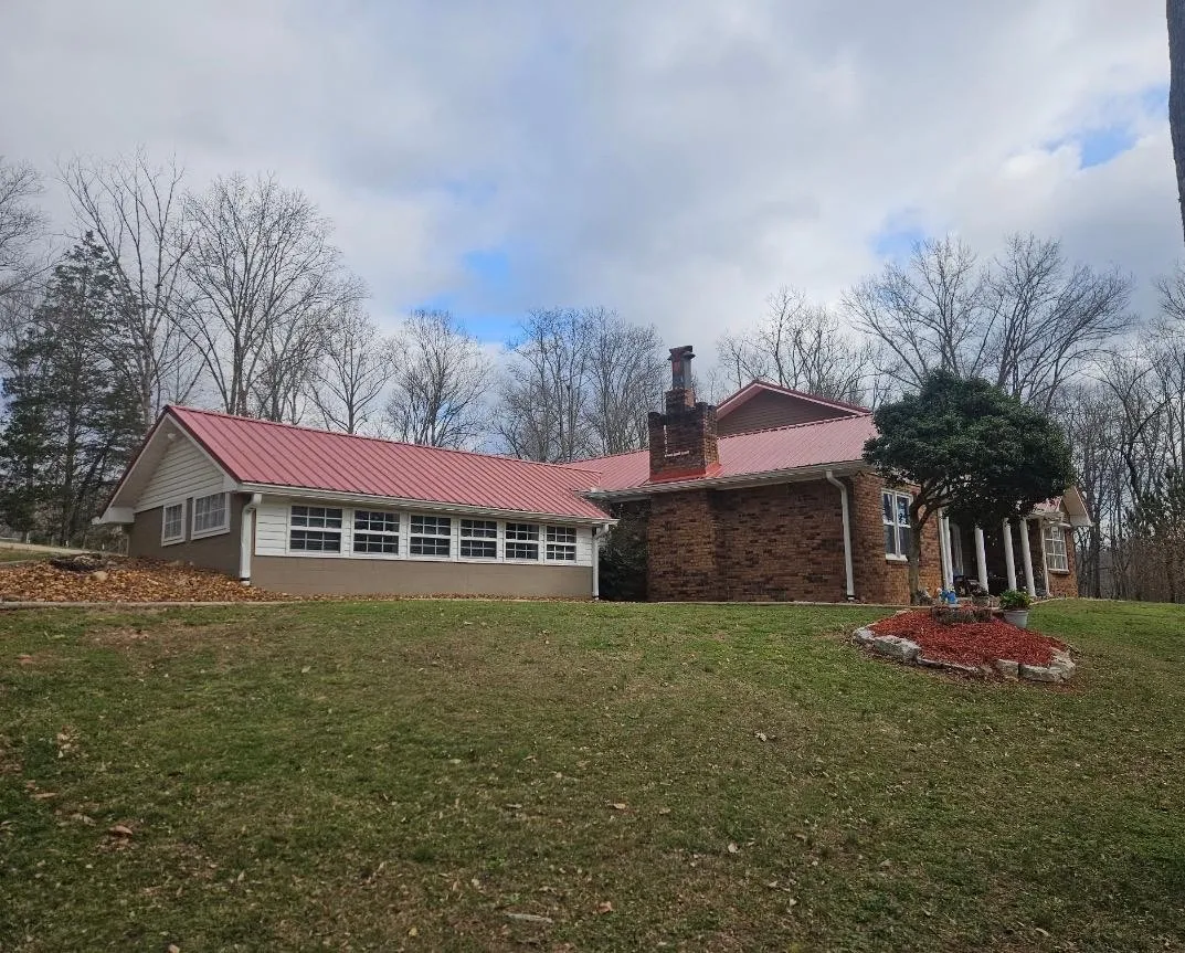 Brick exterior with a tin roof installed approximately seven years ago