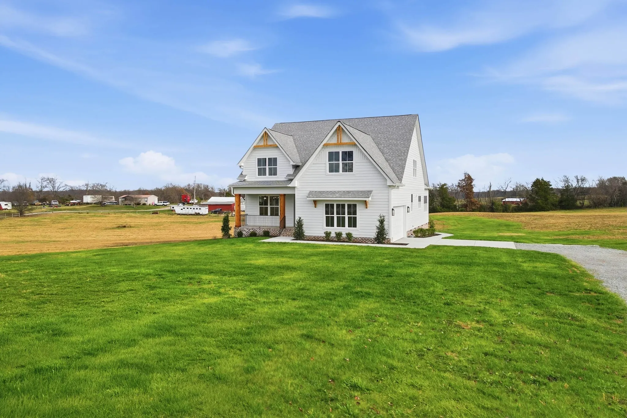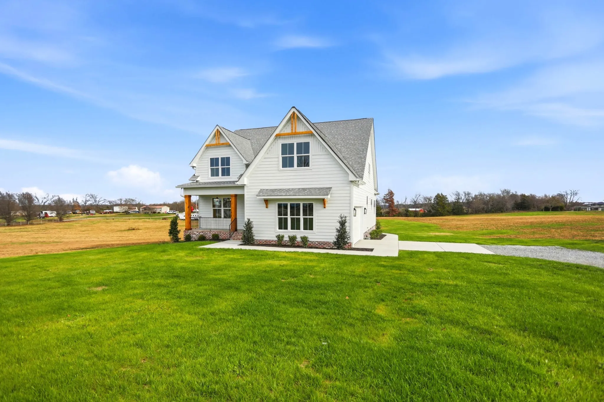 New Improved Price! Welcome home! This stunning three-bedroom, 3 full bathroom modern farmhouse is nestled on two serene acres of land. This custom-built home seamlessly blends rustic charm with high-end finishes, offering a perfect balance of comfort & style. The heart of the home features quartz countertops, stainless steel appliances, a very spacious island, a well-equipped butler’s pantry & custom designed cabinetry for an abundance of storage. This kitchen makes hosting & organization a breeze. Every detail of this home has been thoughtfully curated, from the custom light fixtures that illuminate each room, to the built-in beverage center, and the expertly chosen custom paint colors that create a welcoming atmosphere throughout. Enjoy the ultimate practicality with two separate laundry rooms, providing unmatched convenience for a busy household. (Undercounter LG Smart Washer & Dryer Set is included on main level). The three generously sized bedrooms offer a private retreat, while the three beautifully appointed bathrooms feature modern fixtures and finishes. The two-acre lot provides ample space for outdoor living, whether you envision a lush garden, a pool, outbuilding, or play area for family and friends. The electrical service is upgraded to 400 amp to accommodate a future pool, pool house, and/or outbuilding. This home is the perfect blend of charm and functionality. From the moment you step onto the extended front porch and walk inside, you will feel at home. This property offers endless possibilities for creating your dream lifestyle, all while enjoying the peace and tranquility of a spacious modern farmhouse. Don’t miss this opportunity to make this exquisite property your own. This home is listed at $65,000 under the recent appraisal.