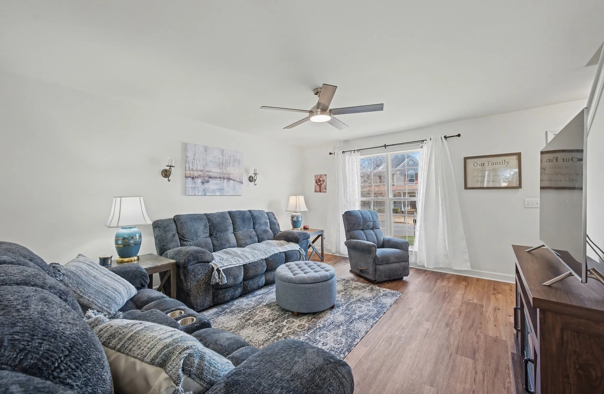 The kitchen features stainless steel appliances (approx. 5 years old) and flows into the dining area overlooking a big, level, fenced backyard with patio—perfect for outdoor relaxing or entertaining. Major updates include roof (2019), HVAC (approx. 5 years), and water heater (approx. 3 years). Refrigerator, washer, and dryer can remain. Seller is offering a 1-year Choice Home Warranty for added peace of mind. Conveniently located near restaurants, shopping, and top-rated Williamson County Schools.