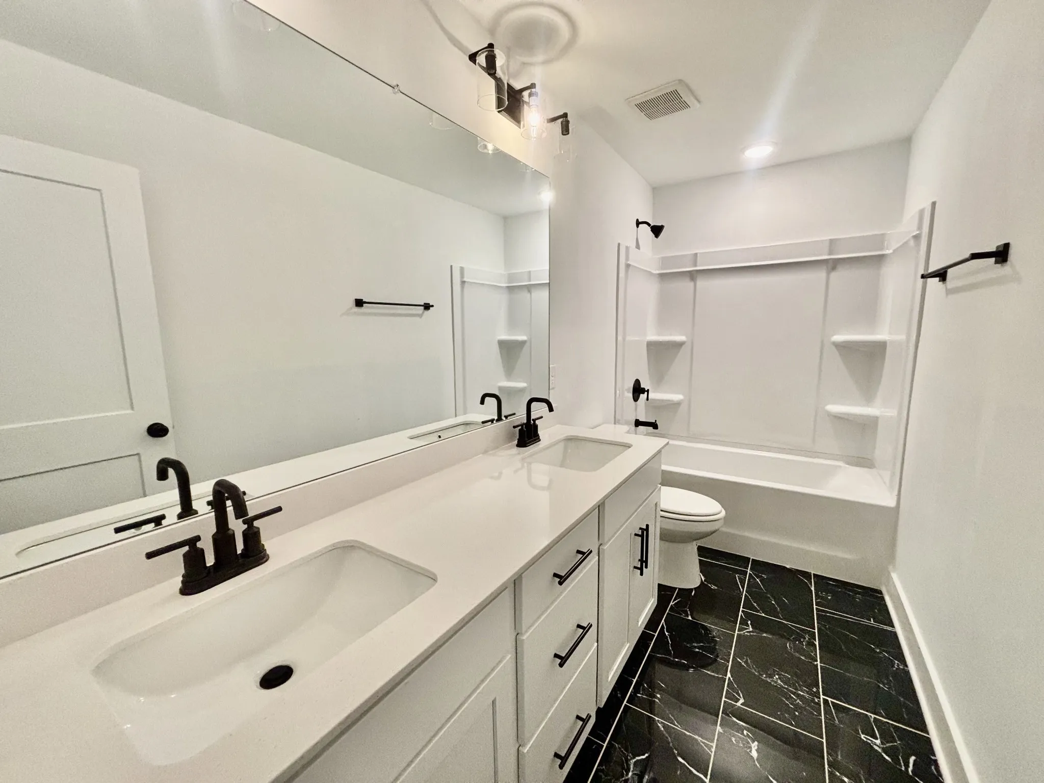 This spacious home features the Columbus floorplan that begins with a grand 8′ front door and a welcoming open foyer. Just off the entry, you’re greeted with a private study, perfect for remote work or a quiet retreat, along with a convenient half bath. The main living area is designed for family gatherings, celebrations, and entertaining, with a luxury kitchen boasting quartz countertops, upgraded cabinetry, under-cabinet lighting, and stainless steel appliances. The kitchen flows seamlessly into the open living and dining spaces, creating a warm and inviting atmosphere. The first-floor primary suite is a true showstopper, featuring designer black tiled floors, a deluxe tiled shower, a spa-like soaking tub, double vanities, and a large walk-in closet. Upstairs, a massive loft provides flexible space for movie nights, game days, or a second living area. You’ll also find three oversized secondary bedrooms, each with its own walk-in closet, and a beautifully appointed bathroom with double vanities, and plenty of storage.