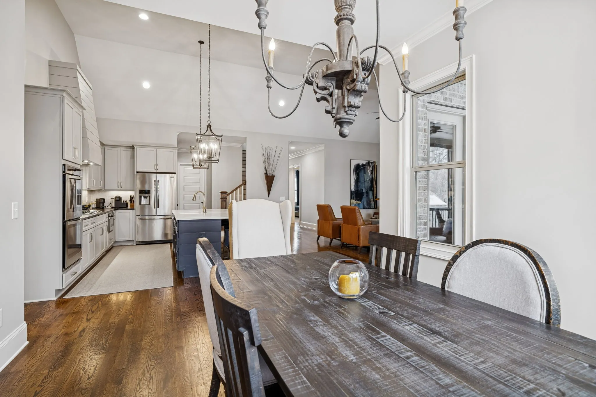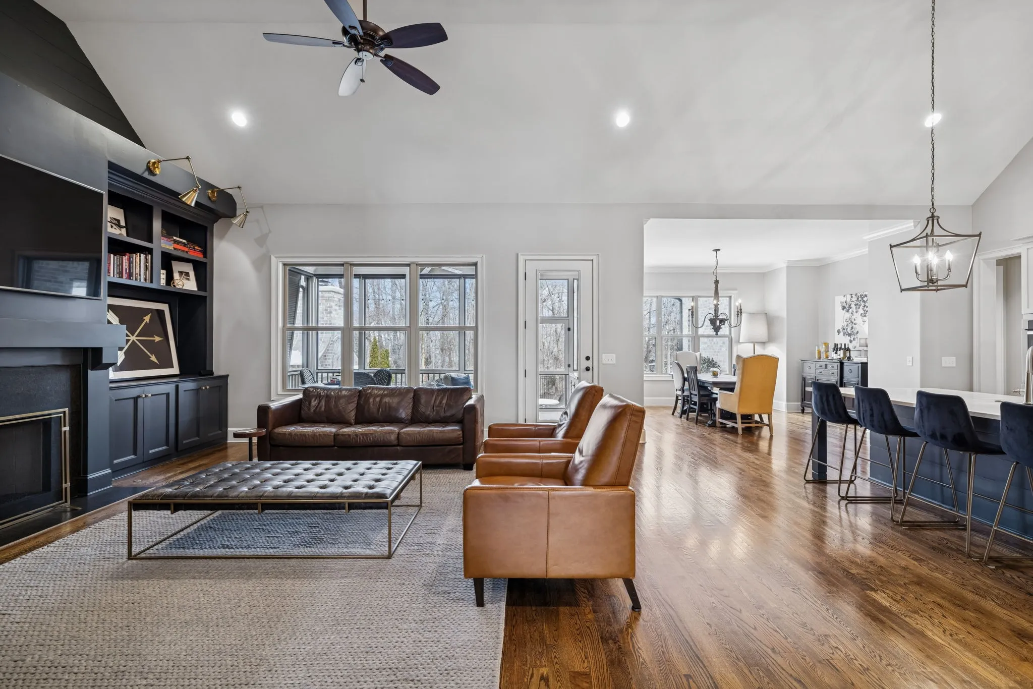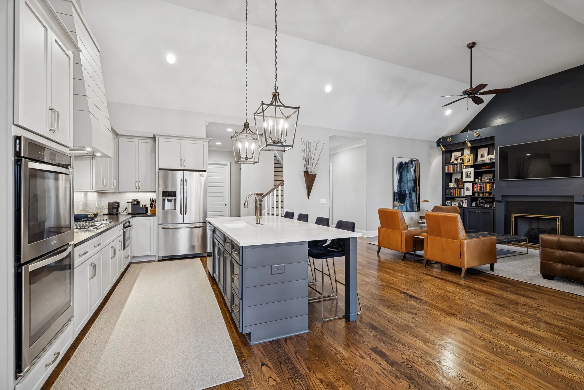 As you enter, you’ll be greeted by a spacious open floor plan featuring abundant natural light, vaulted ceilings, and high-end finishes throughout. The heart of the home showcases an inviting great room with a cozy fireplace and seamless flow into the gourmet kitchen — ideal for everyday living and entertaining.