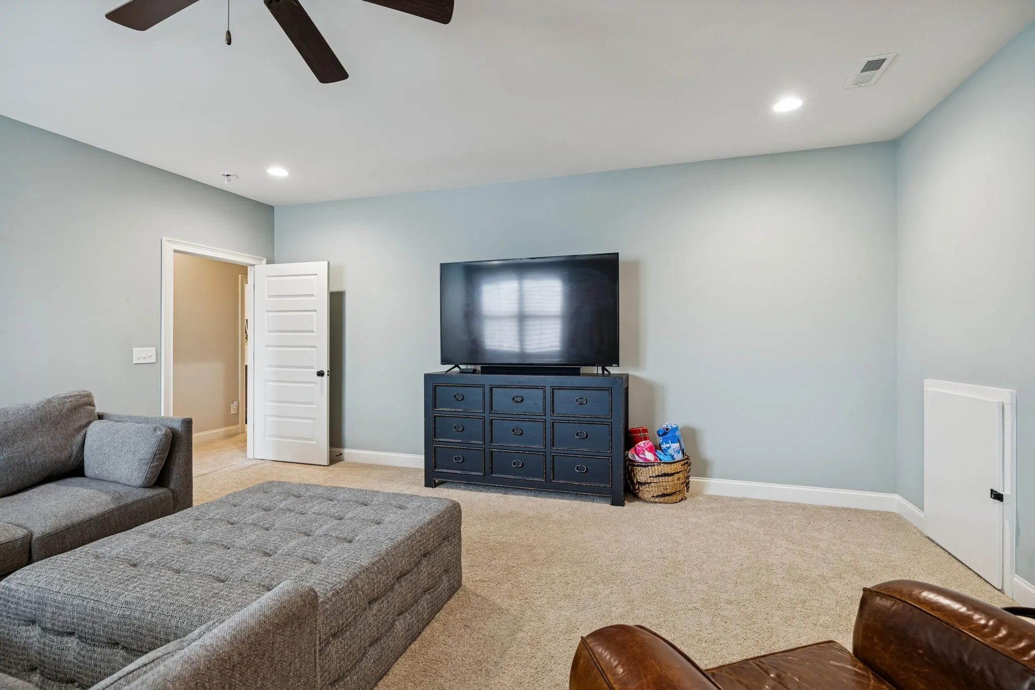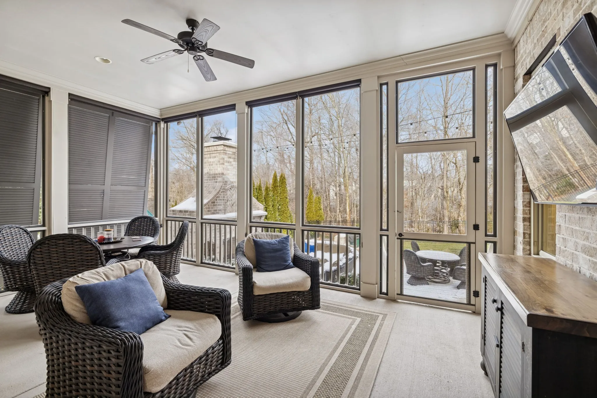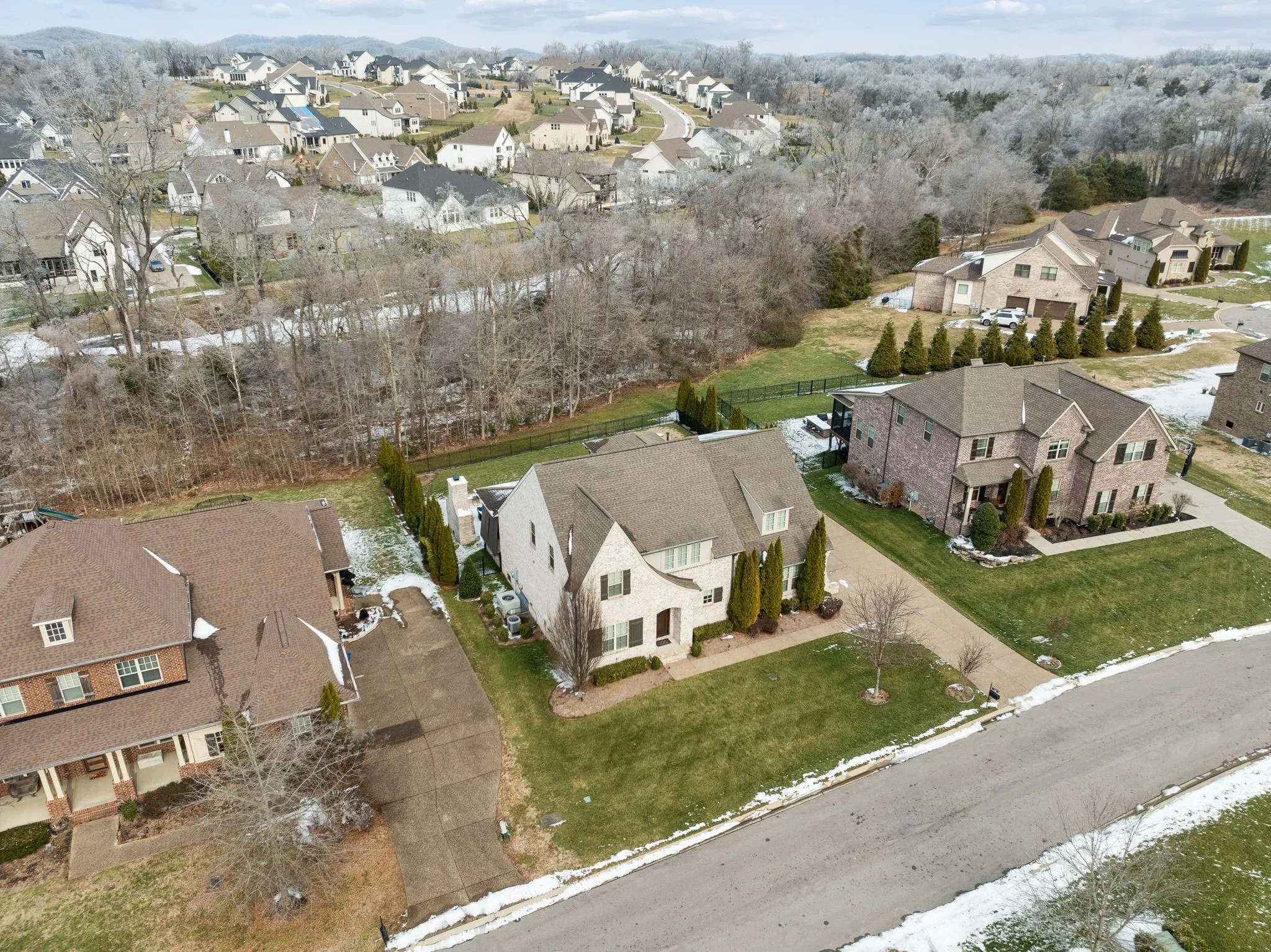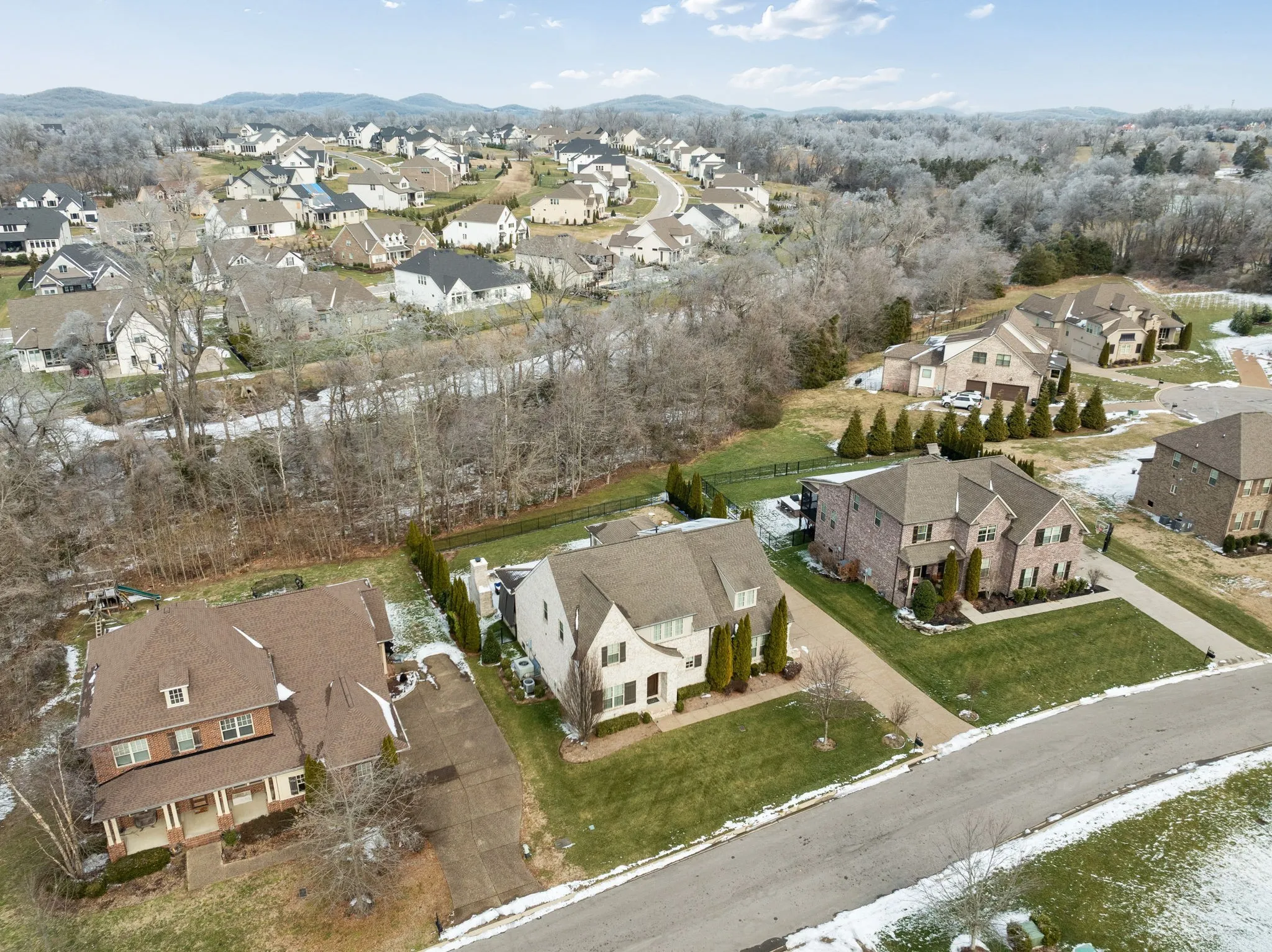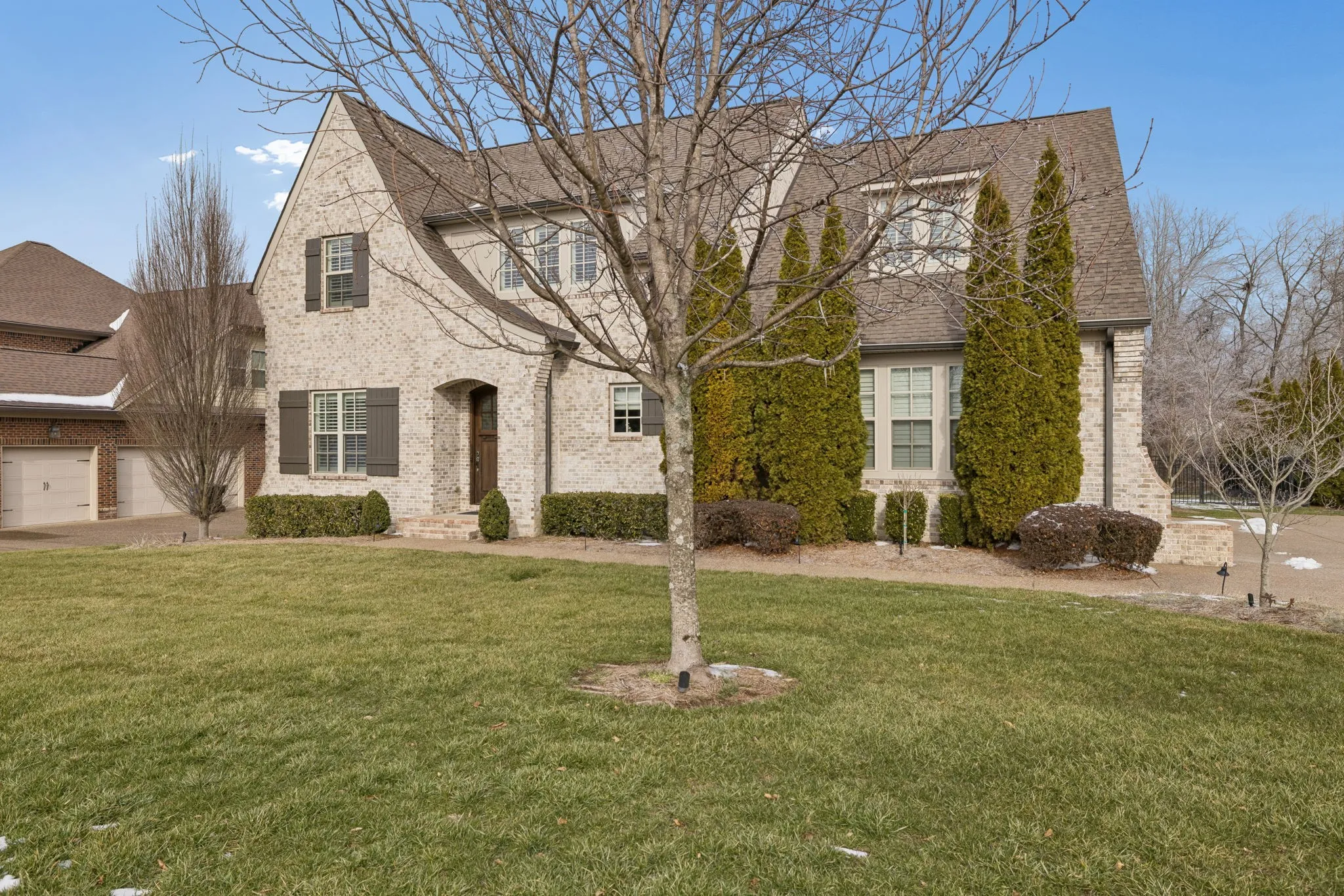 The luxurious primary suite is thoughtfully positioned for privacy and comfort, complemented by three additional bedrooms and well-appointed baths. Additional highlights include a three-car garage, expansive outdoor living areas, and lush surroundings that offer a peaceful Tennessee setting.