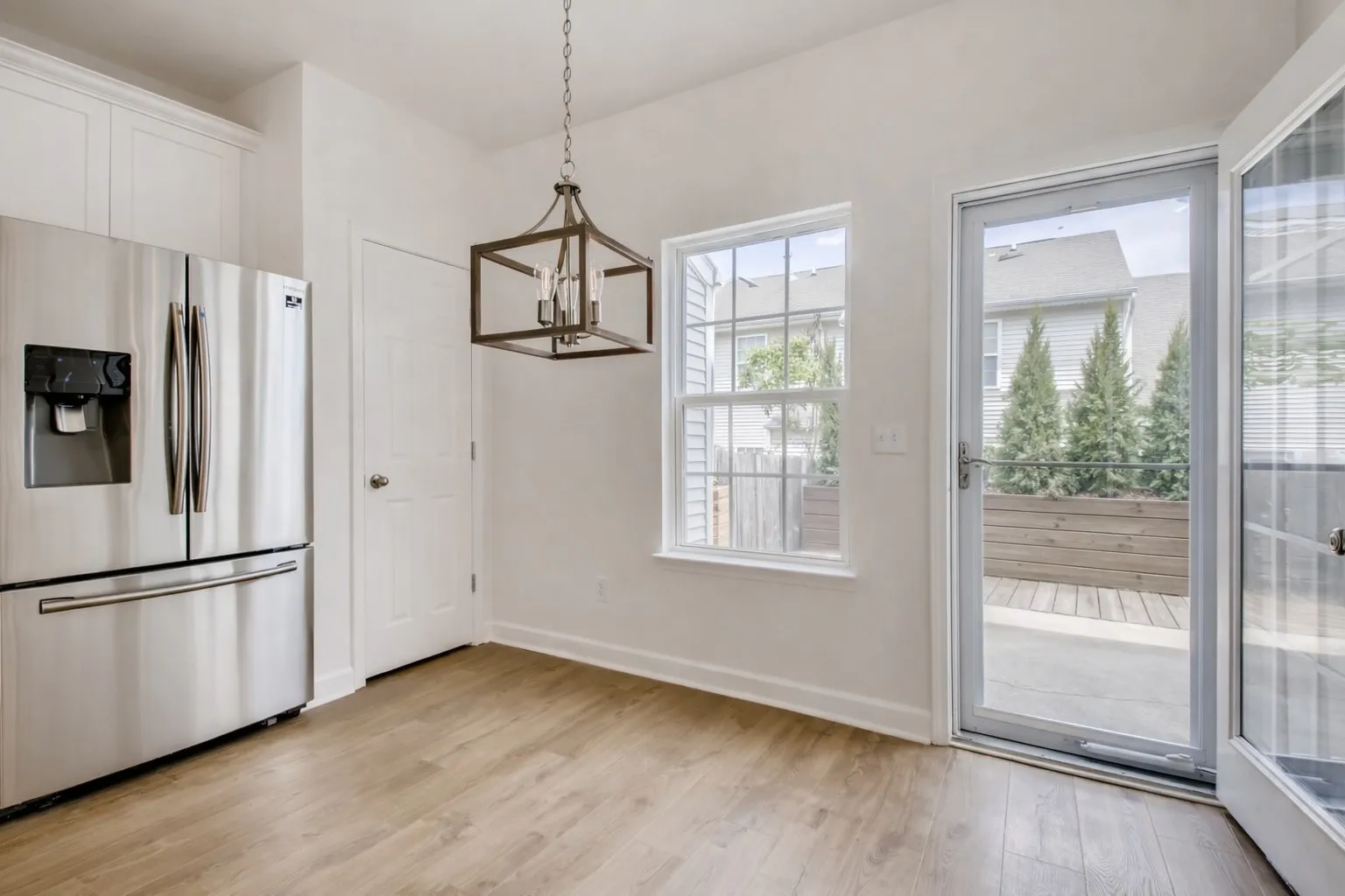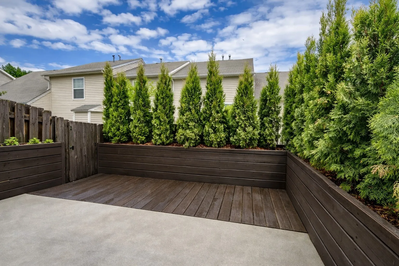Step outside to your private, fenced patio a true extension of your living space with built-in planters, an herb garden, a fully enclosed storage closet, and plenty of room to relax, entertain, or replant the tall privacy trees shown in the virtual vision.\n