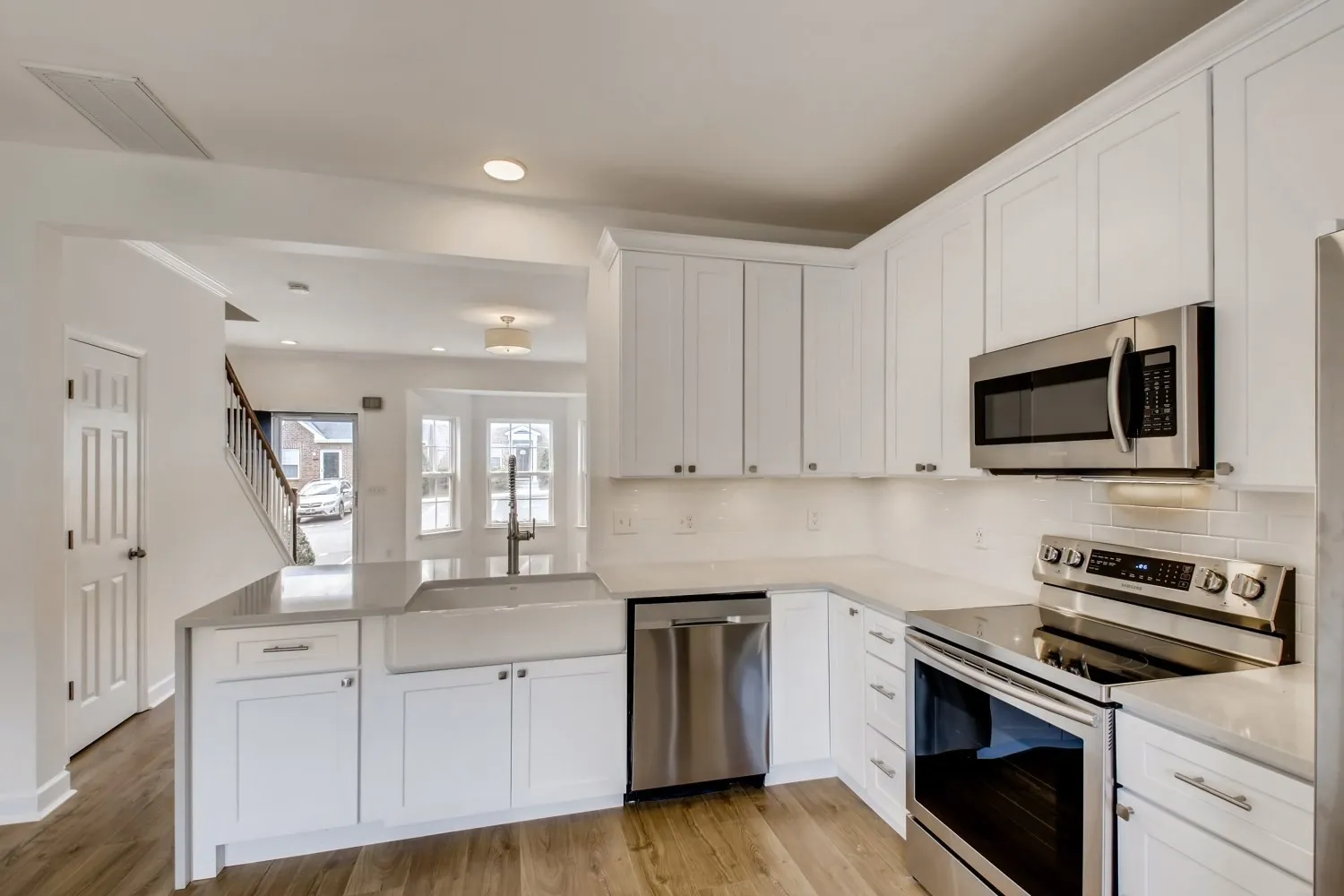 Quartz countertops continue throughout the bathrooms, bringing a cohesive and upscale touch. The home also includes front and back storm doors for added natural light, comfort, and energy efficiency.\n