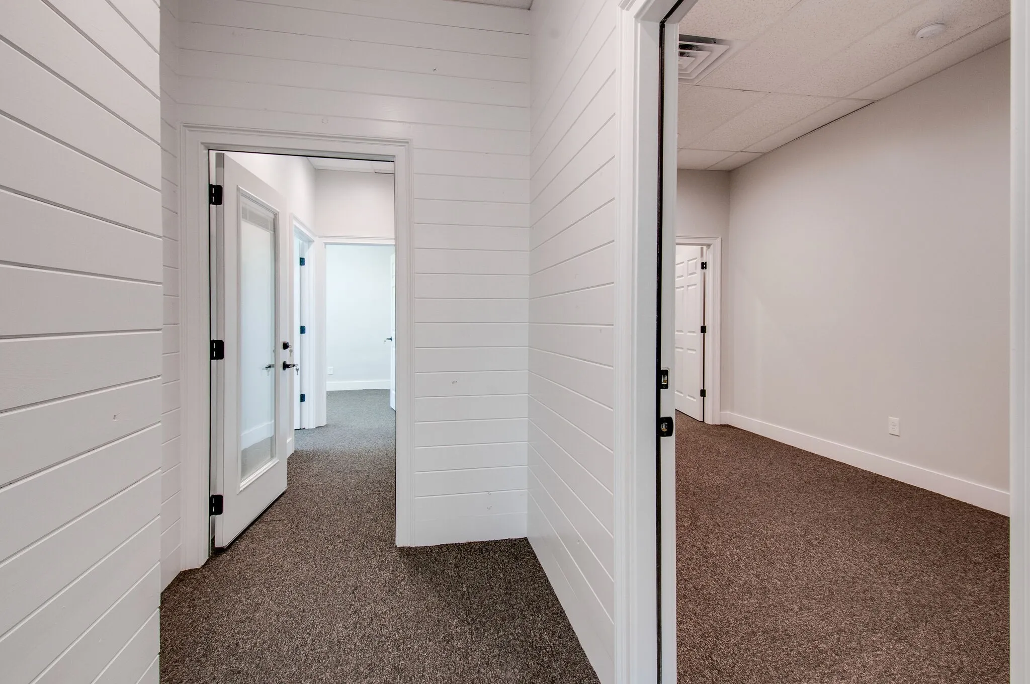 This suite can be broken down to 2 offices for $1000/mo. The common area has a kitchenette and two restrooms. An abundance of windows allow light to pour in. Offices are freshly painted. Common areas have dark stained hardwood floors. Rent includes water & electricity.