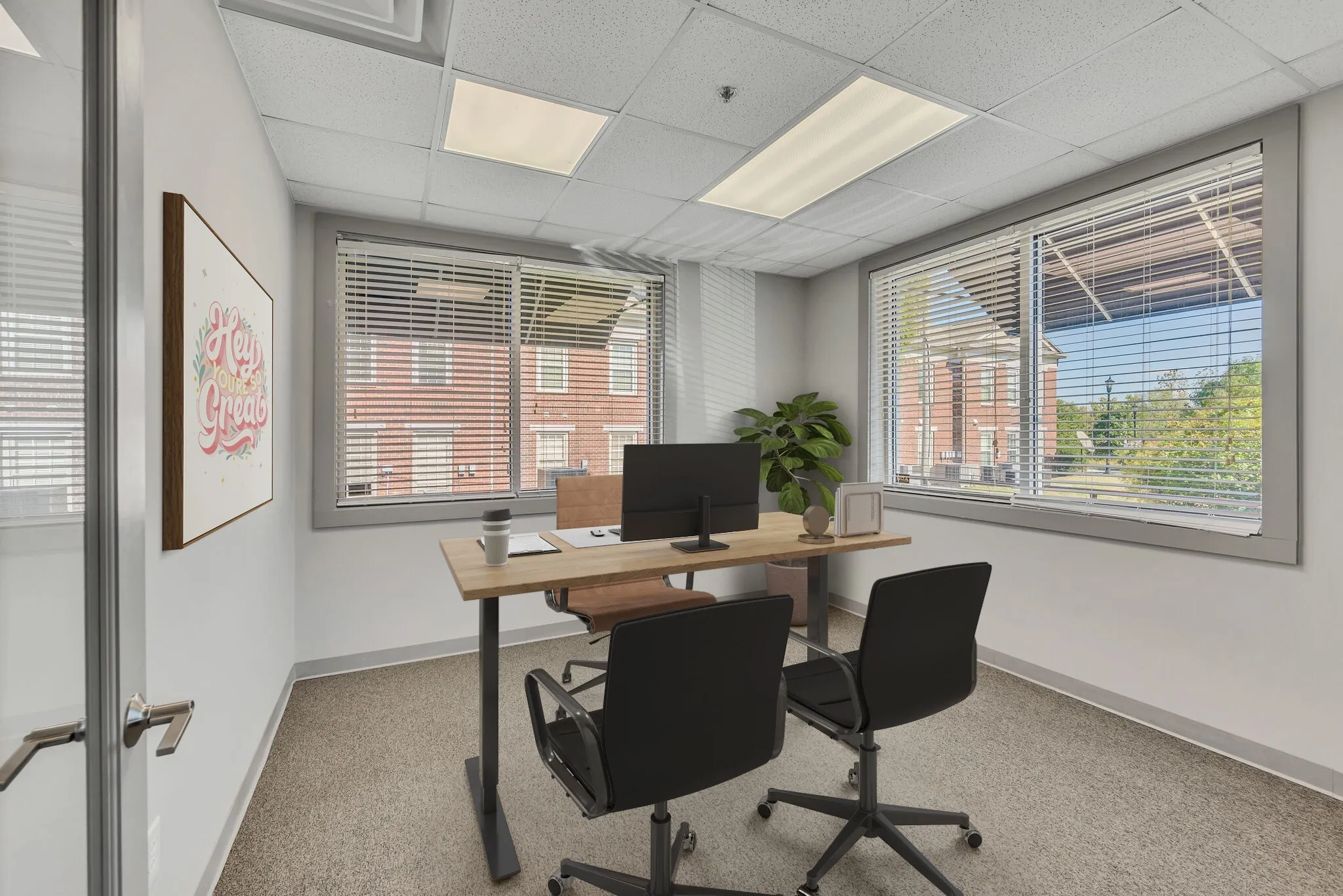 This open concept office has much to offer with a large open work space, 5 private offices, conference room, and a large storage closet. Freshly painted, like new carpet and LVP flooring. Need a smaller space? There is the potential to subdivide. Designated interior and exterior entrances. Monthly rent includes water & electricity.