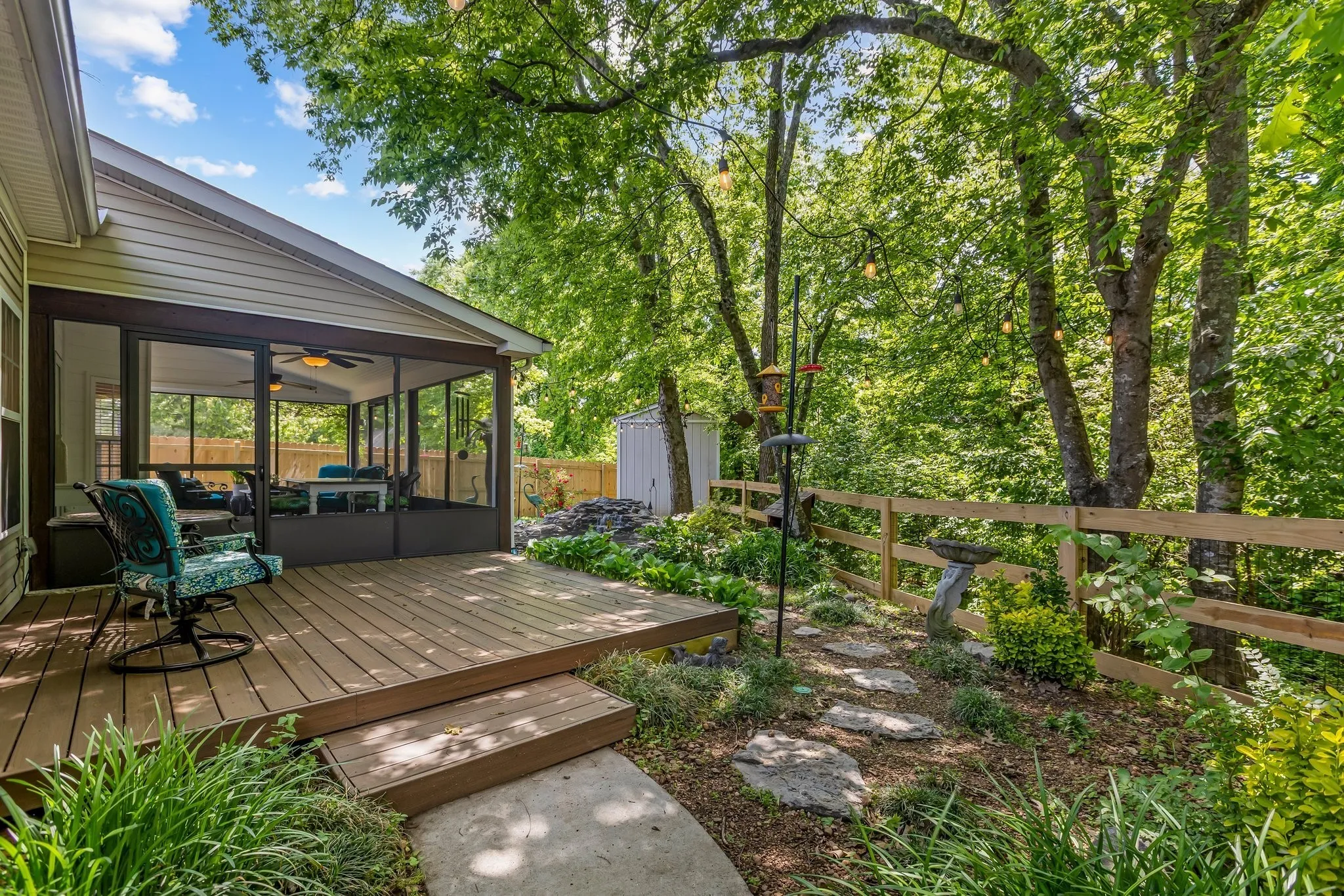The main level offers exceptional convenience with a private primary suite and two additional bedrooms. The primary retreat impresses with soaring cathedral ceilings, an inviting ensuite, and a walk-in closet. Upstairs, a generous fourth bedroom offers incredible flexibility as a bonus room, in-law suite, or home office, complete with a full bath and two large closets. *Step outside to your own backyard oasis featuring a deck, screened-in covered patio, and tranquil koi pond with waterfall — all enclosed within a fully fenced yard. Enjoy peaceful mornings with coffee, relaxing evenings under the stars, and year-round outdoor entertaining. *Location truly sets this home apart. Just steps from your front door is 30-acre Fischer Park, offering a splash pad, playground, tennis and basketball courts, walking track, bike trails, sports fields, and a scenic creek for fishing and exploring. *With major upgrades already completed — including a new roof, fully renovated kitchen, and dual-zone HVAC system and much more — this home offers peace of mind and modern comfort. Don’t miss this rare opportunity to own a beautifully updated home in an exceptional setting. Longtime homeowners are relocating. Schedule your private showing today!