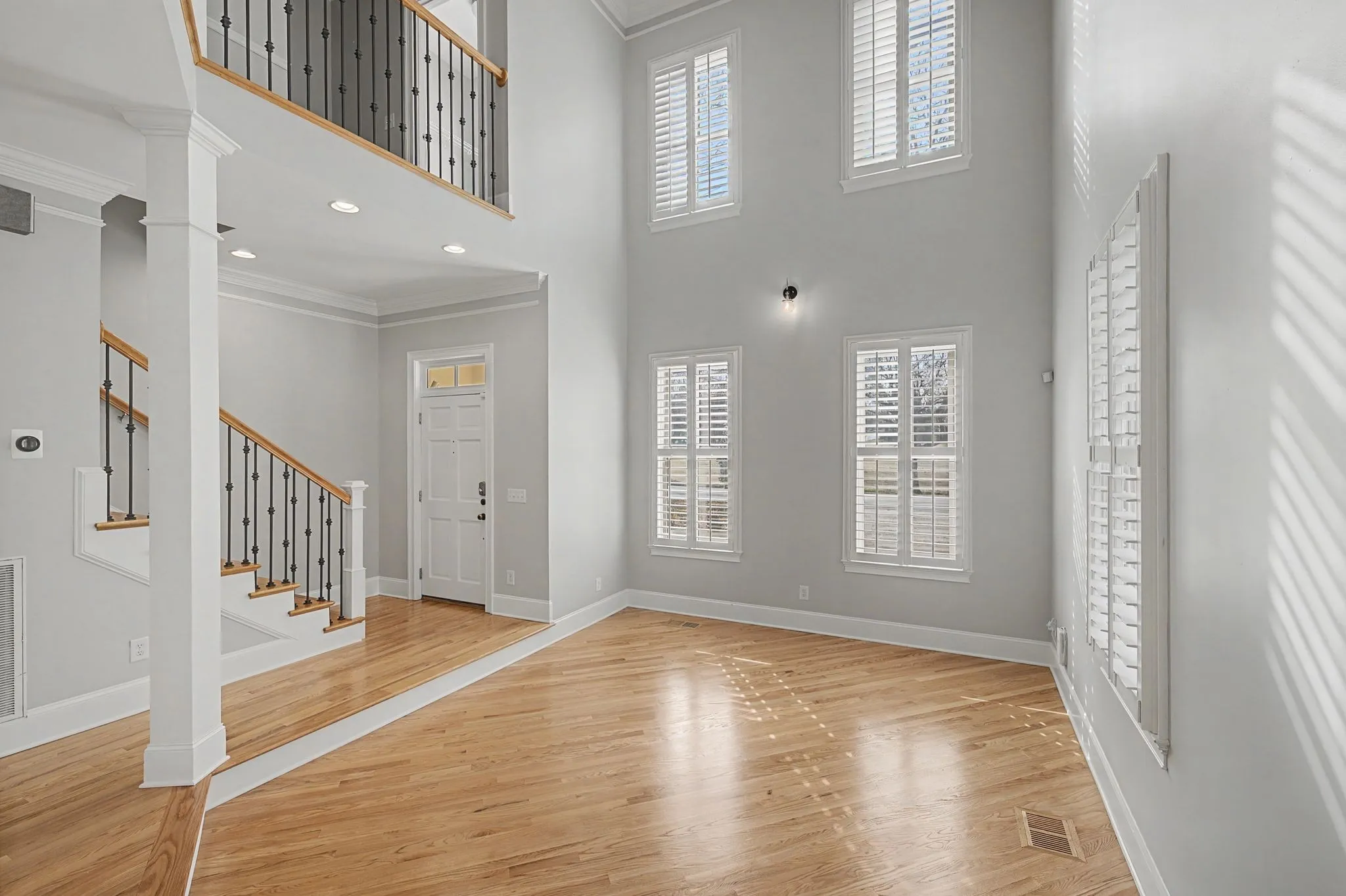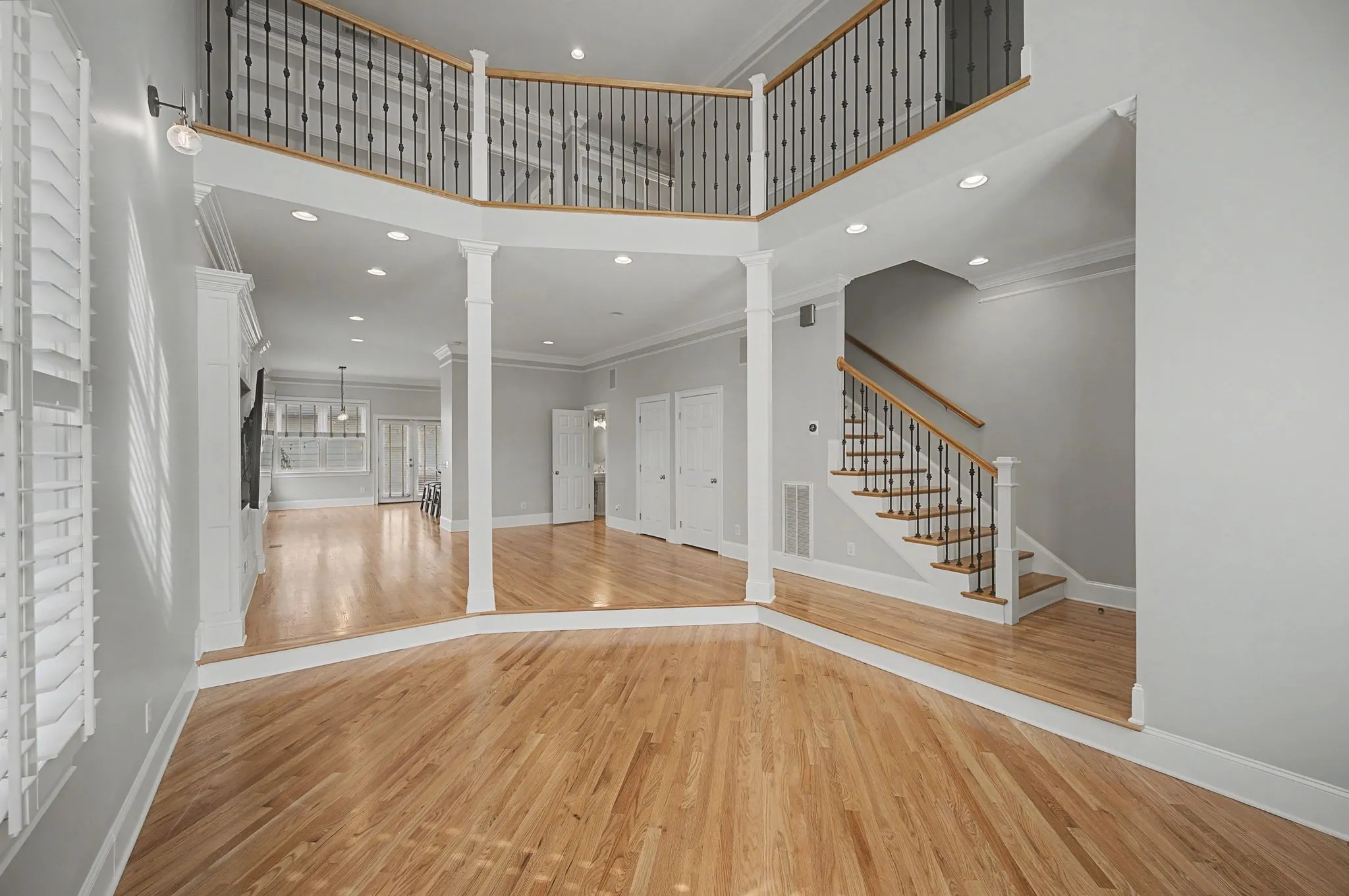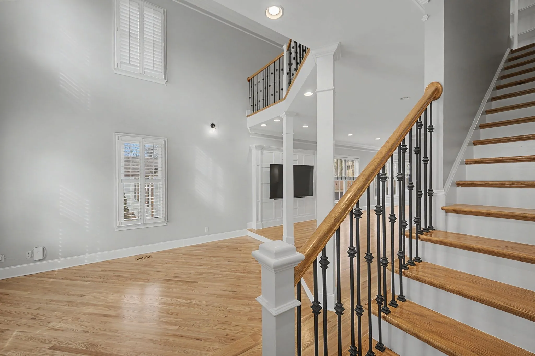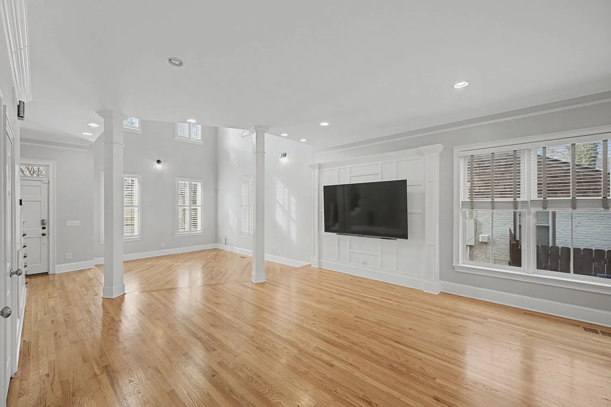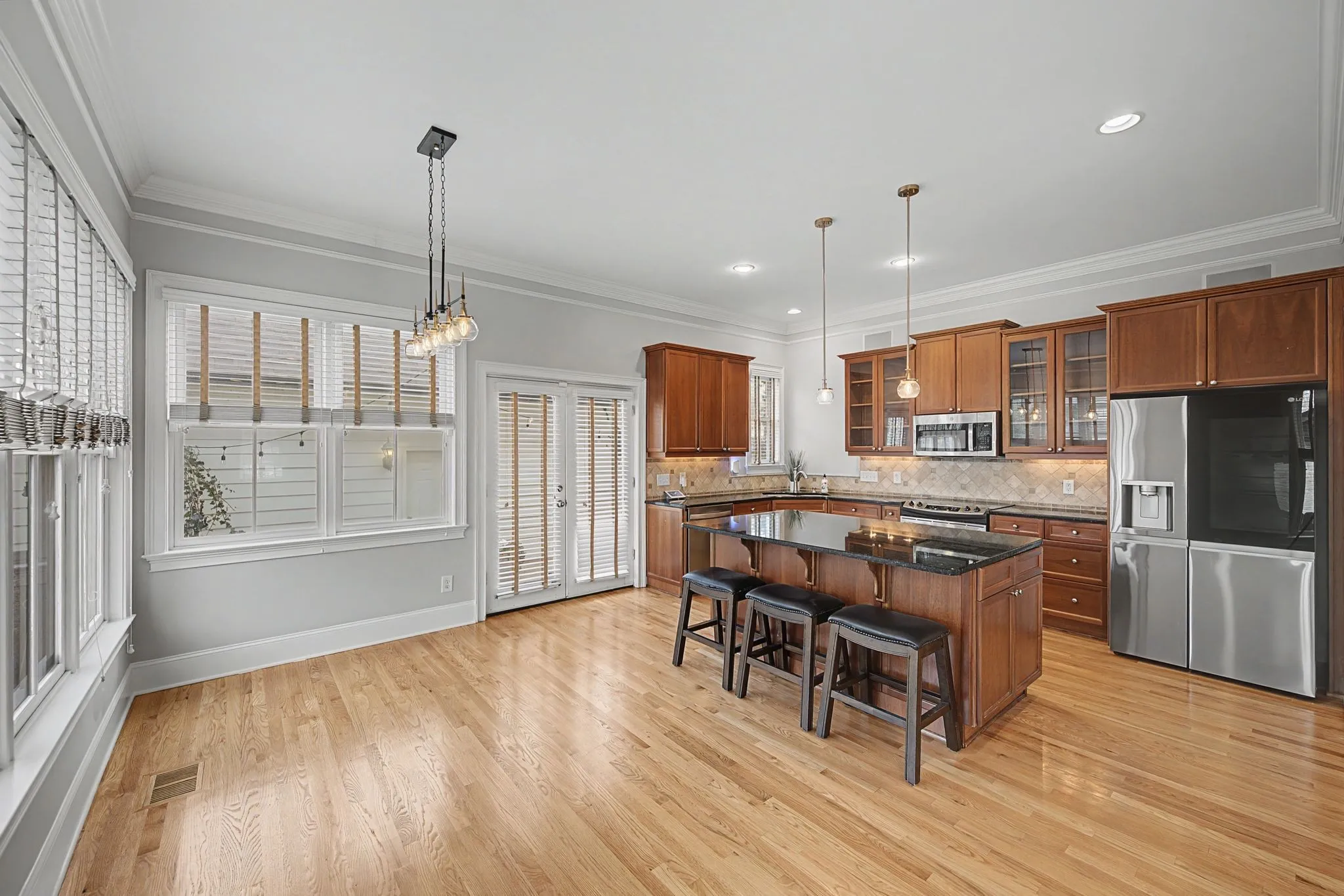 Step inside to an airy, light-filled open concept featuring soaring ceilings and gleaming hardwood floors that flow seamlessly through the main living areas. The chef-ready kitchen is anchored by a generous island and upgraded with premium appliances, including a quiet LG dishwasher and an LG InstaView Refrigerator (2023), combining modern tech with timeless style. The living area is perfectly set up for entertaining, with a Samsung “The Frame” TV that conveys with the home.