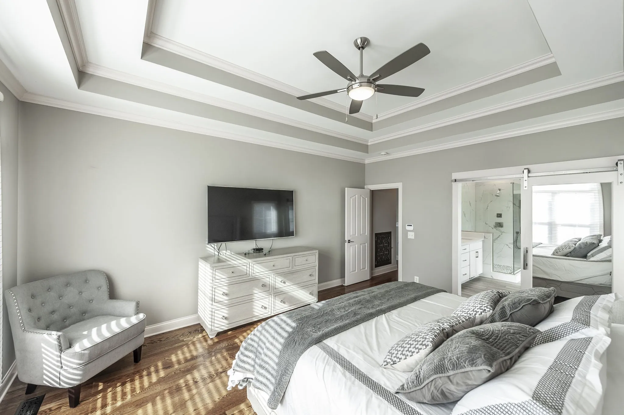 This exquisite 4-bedroom, 4.5-bath home has been thoughtfully opened up and masterfully updated throughout. Highlights include an expanded and beautifully designed master suite with spa-like bath and generous custom closet, a gourmet kitchen featuring premium updates and pantry, a convenient new lower level kitchenette, fresh fixtures and railings, dual reverse osmosis water filters, remote-controlled skylight shades, two laundry areas, and thoughtful extras like a discreet hidden safe room and private gym.\n