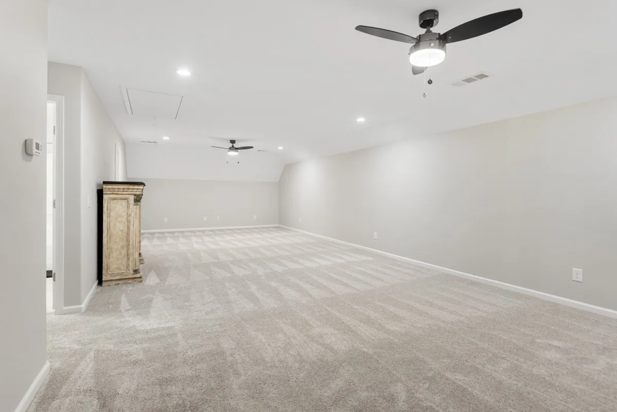 Upstairs, you’ll find a huge bonus room that feels endless — ideal for recreation or entertainment. There’s also a third bedroom with a walk-in closet, a full bath with a shower/tub combo, and an additional flex room that could serve as a hobby, office, craft, or exercise room. The bonus area even includes full-length storage space, perfect for holiday decorations or seasonal items.