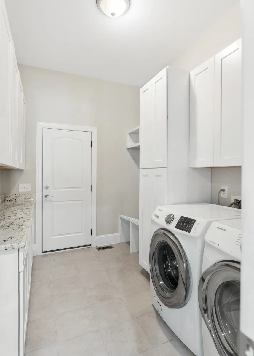 Also on the main level is a second large bedroom with an oversized closet and a full bath nearby. The laundry room includes custom cabinetry and generous counter space and connects to a massive attached garage that offers potential for expansion or conversion into a man cave.