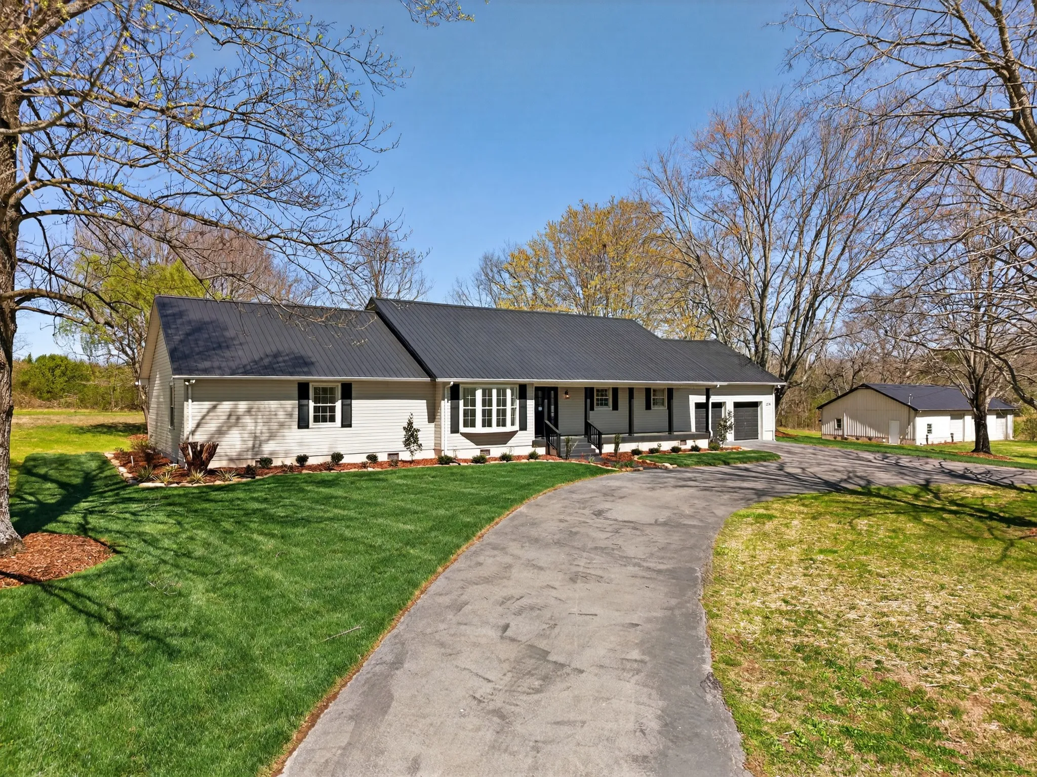 Completely renovated 3 or 4 BR 2.5 BA home on 2.85 acres: 17X23 great room w/Vaulted Ceiling, new kitchen cabinets & fixtures, granite counter tops, new SS appliances, new lighting, floor covering & paint throughout, all new bathroom fixtures: tub & surround, shower, vanities, new water heater, large laundry room w/walk in pantry, recent windows, 20X20 patio, new moisture barrier under home & more. 2 car attached garage, 30X60 Shop with wiring & plumbing, 12X13 detached utility building. Circular black top driveway, all new landscaping, 6200 Sq ft fescue sod and the entire yard has been aerated and seeded. Schedule your showing today!