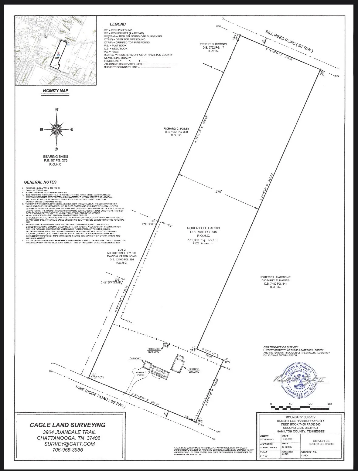 CALLING ALL INVESTORS, BUILDERS, and HOMEBUYERS!! Auction to be held on Saturday, February 21st at 10 AM EST. This property offers a prime development and investment opportunity on 7.62 acres in the highly desirable and rapidly growing area of Ooltewah. Conveniently located just 15 minutes from Chattanooga, 5 minutes from Collegedale, and right down the road from downtown Ooltewah, this property is close to shopping, dining, schools, and interstates. The land features a fresh survey and new general intensity soil work, with results showing strong potential for future use. Per Hamilton County, there is the potential to access sewer in the future on the backside of the property. (Please contact Hamilton County with any questions regarding sewer projects in the area.) The parcel includes 369 feet of road frontage on Pine Ridge Rd and an additional 270 feet of road frontage on Bill Reed Rd, offering excellent access and flexibility for development. Improvements on the tract include a well maintained 3-bedroom, 1-bathroom home with original hardwood floors, a metal roof, and a newer water heater. This property also includes a 48×25 two-bay shop, ideal for storage, business use, or personal projects. This is a rare opportunity to purchase property in a prime location with strong development potential.