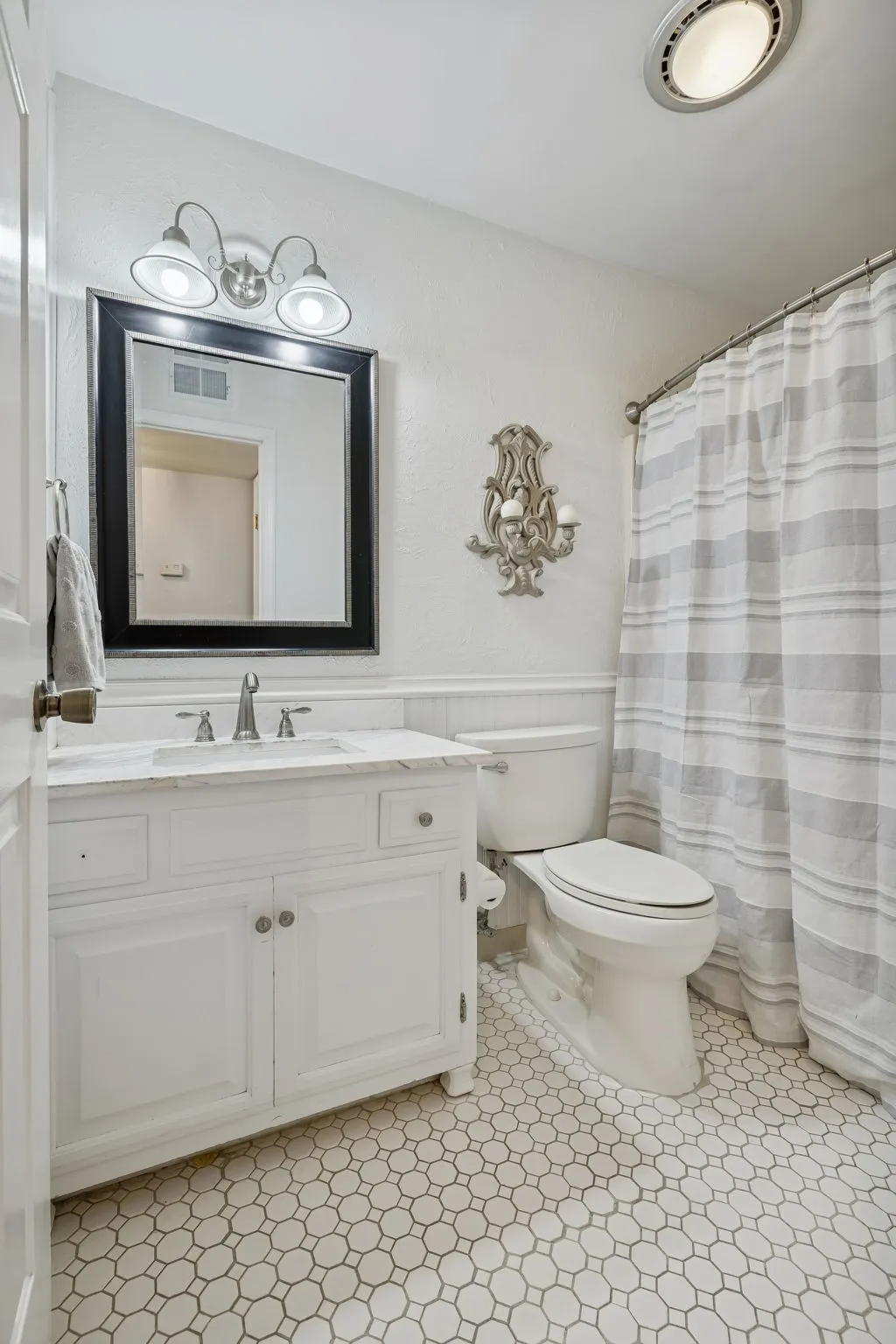 Upstairs, the spacious primary suite features ample closet space and an en suite bath with double vanities. Additional bedroom is generously sized and offers flexibility for guests, home office, or bonus space. Neutral finishes and updated lighting throughout create a true move-in-ready feel.