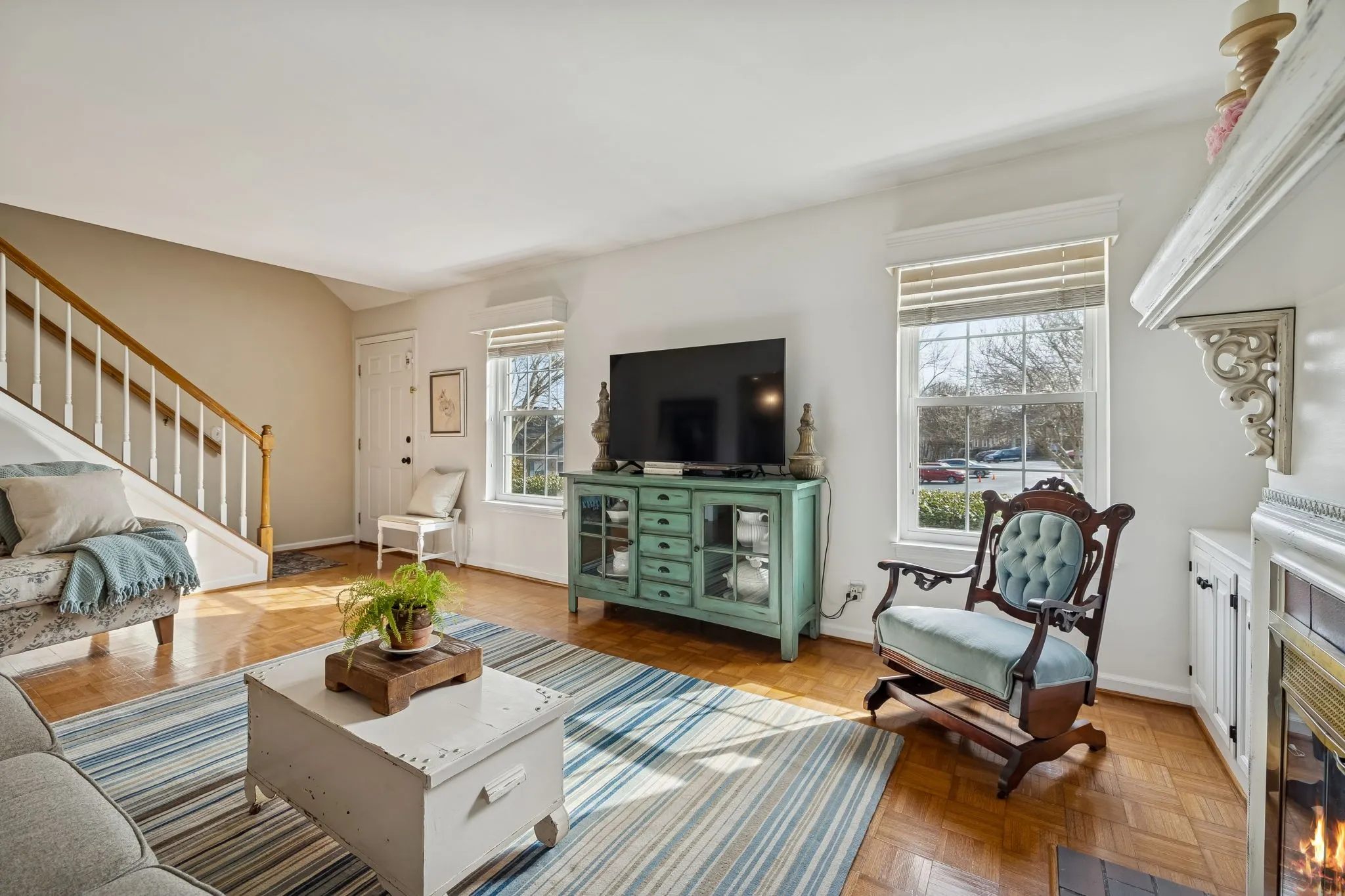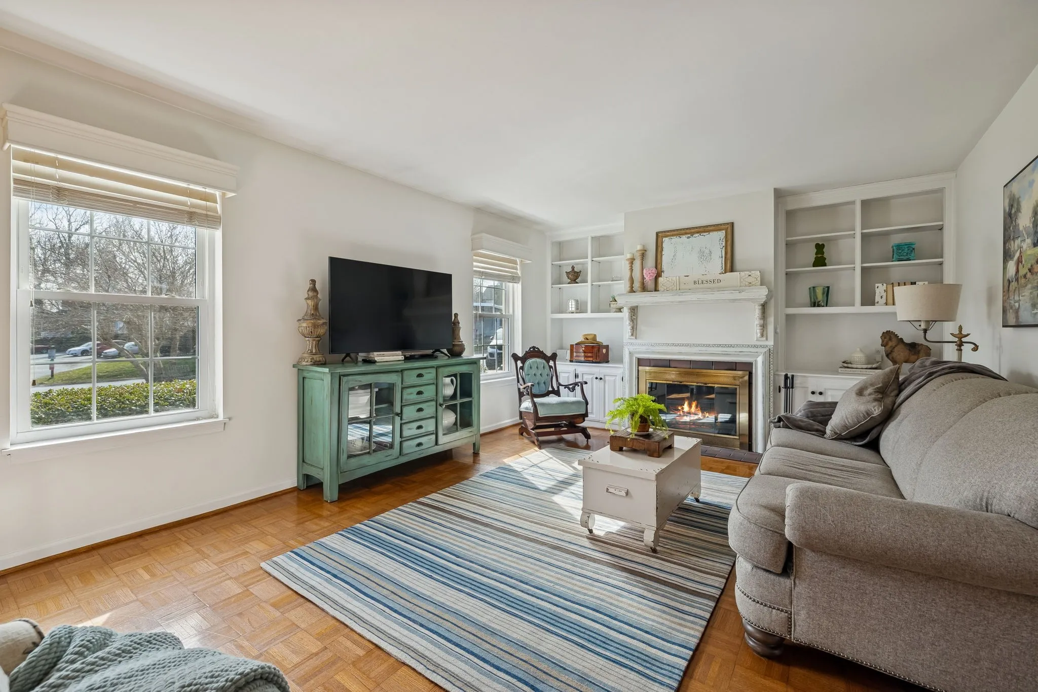 Beautifully maintained townhome in a prime Donelson location with direct access to the Stones River and the Stones River Greenway! This inviting home features a light-filled living room with built-in shelving, a cozy fireplace, and classic parquet hardwood flooring that adds warmth and charm. The updated kitchen offers crisp white cabinetry, quartz countertops, subway tile backsplash, and stainless steel appliances, opening seamlessly to the dining area.