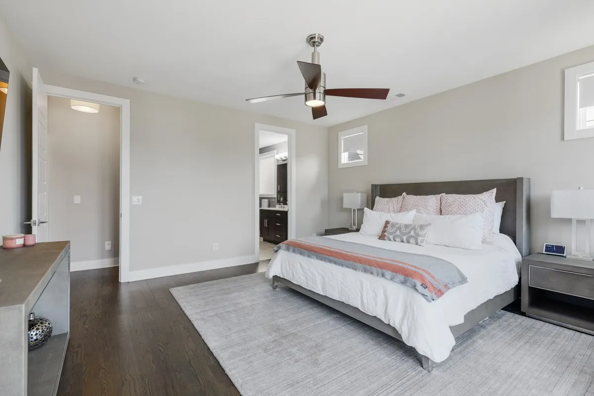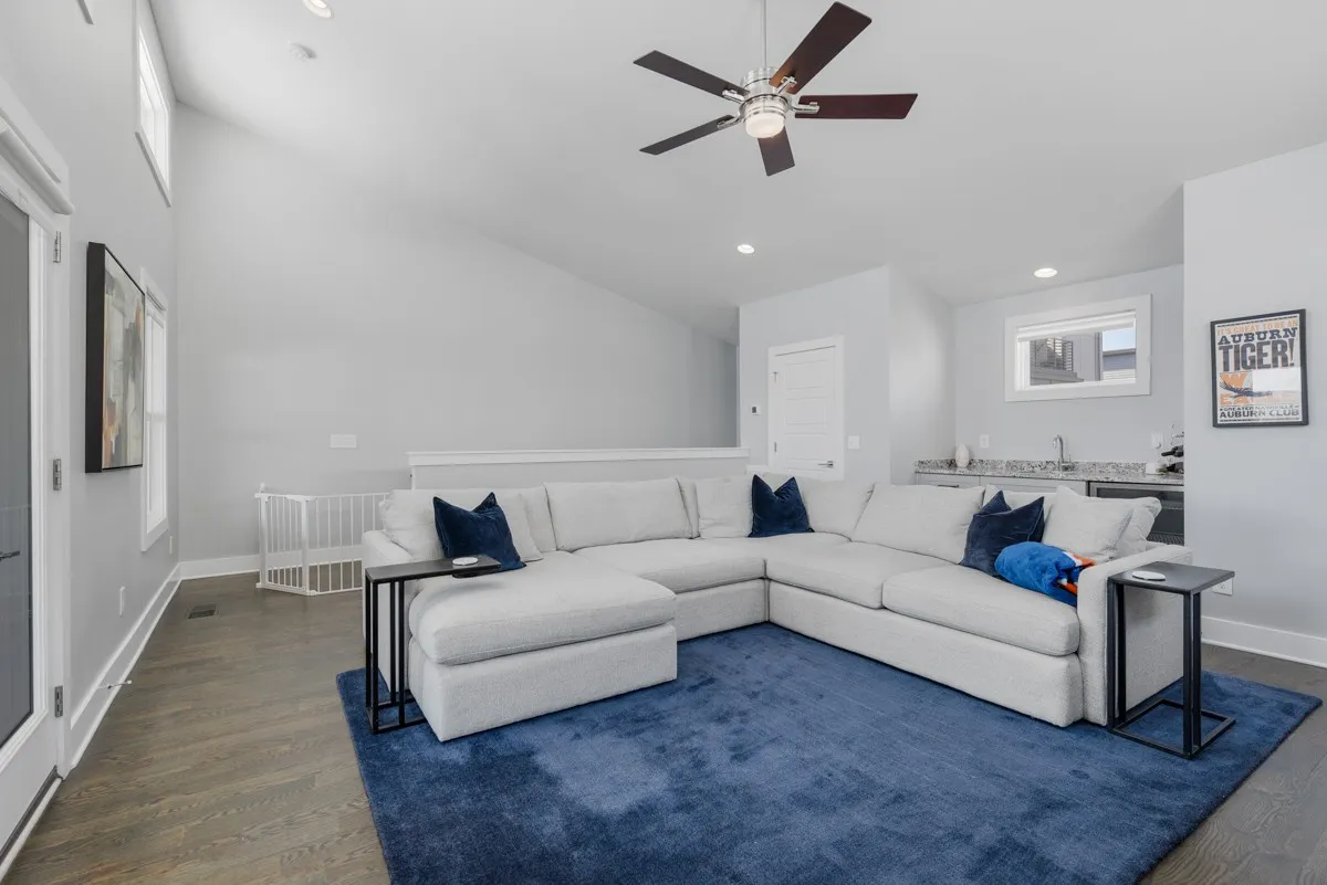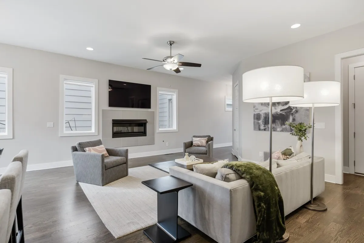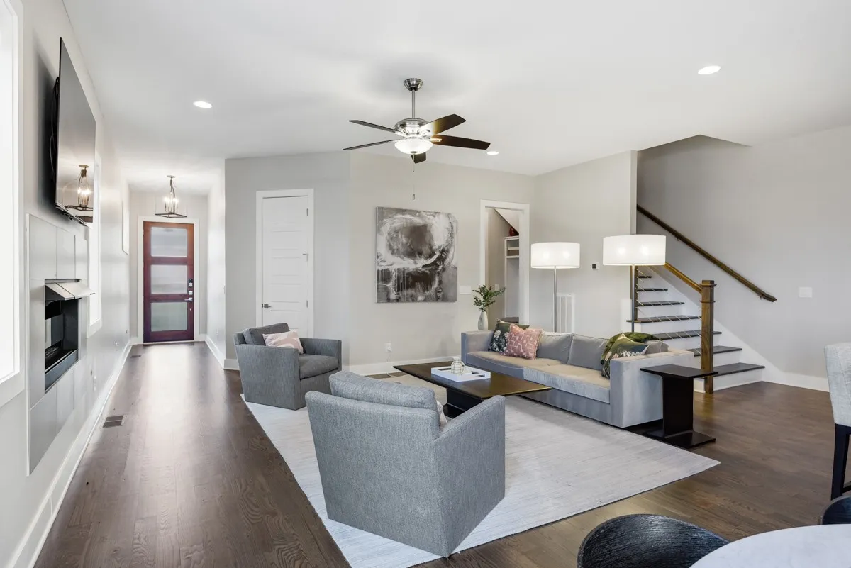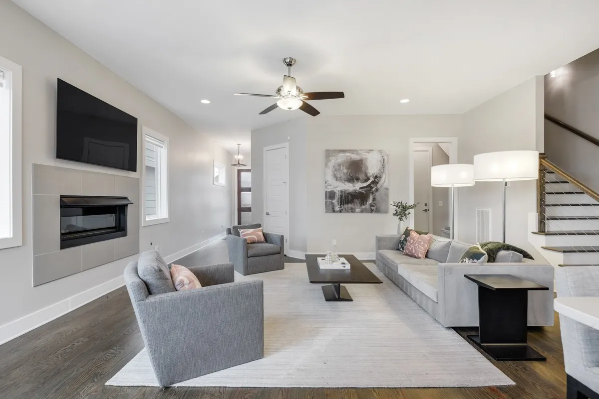 One of the best floorplans in this Gulch View neighborhood with views of downtown Nashville and walkability to both the Gulch and downtown. Inside, the first floor features an open-concept living/dining area with gleaming hardwood floors, a cozy fireplace, and an abundance of natural light. Rare backyard space that is perfect for those needing a fenced in area. The home features modern finishes throughout with a luxury kitchen, quartz countertops, designer lighting, stainless appliances, sand + finish hardwoods throughout, and detailed tile work. You’ll love the double closet space in the primary bedroom and the private balcony. Additionally, imagine all the relaxing evenings you can spend in the upstairs bonus room that opens out to an expansive covered deck that is perfect for entertaining or just enjoying the view. Highlights that you won’t see in most properties are the wide hallways, tall doors, and tall ceilings throughout.