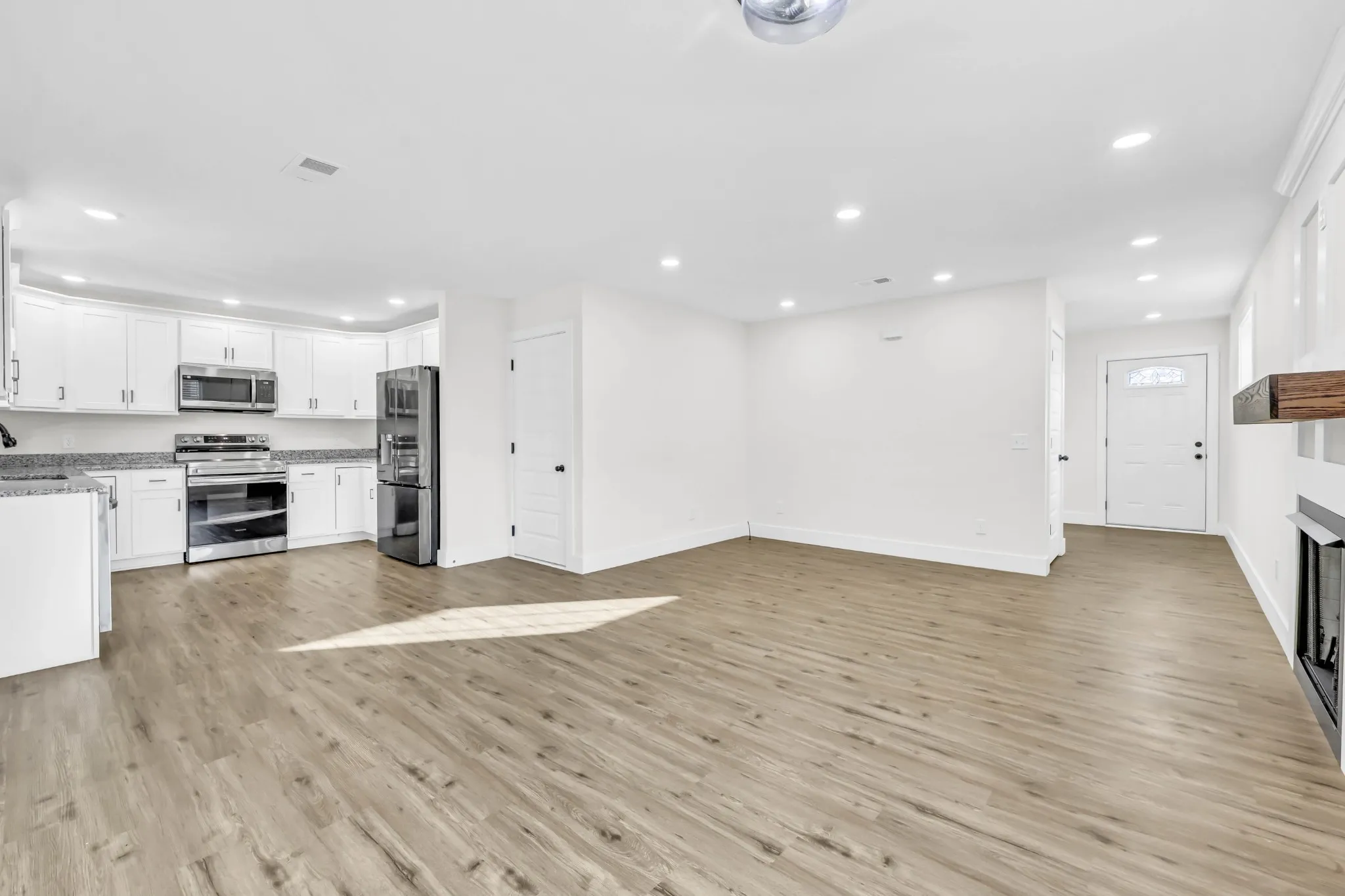 Inside, you’ll find 3 bedrooms and 2.5 baths with a nearly new feel throughout. The home features granite countertops, soft-close cabinetry, modern lighting and fixtures, and a cozy fireplace that anchors the main living area with warmth and style. Thoughtful design and contemporary finishes make daily living both comfortable and efficient.
