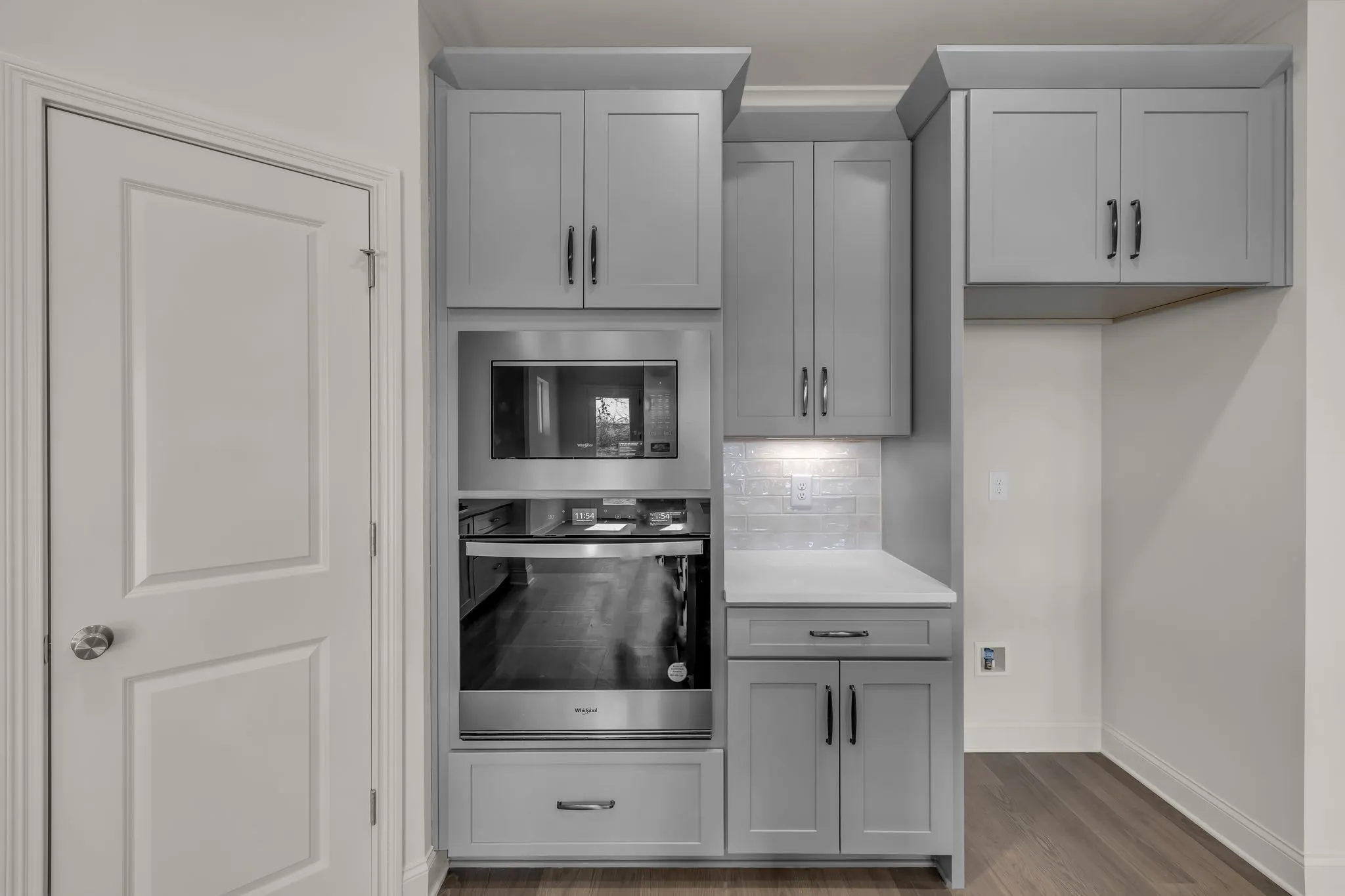 Enjoy peaceful outdoor living on the covered rear porch overlooking a tree-lined backdrop. A spacious three-car carriage-style garage completes this exceptional home.